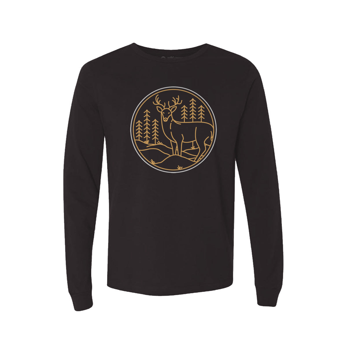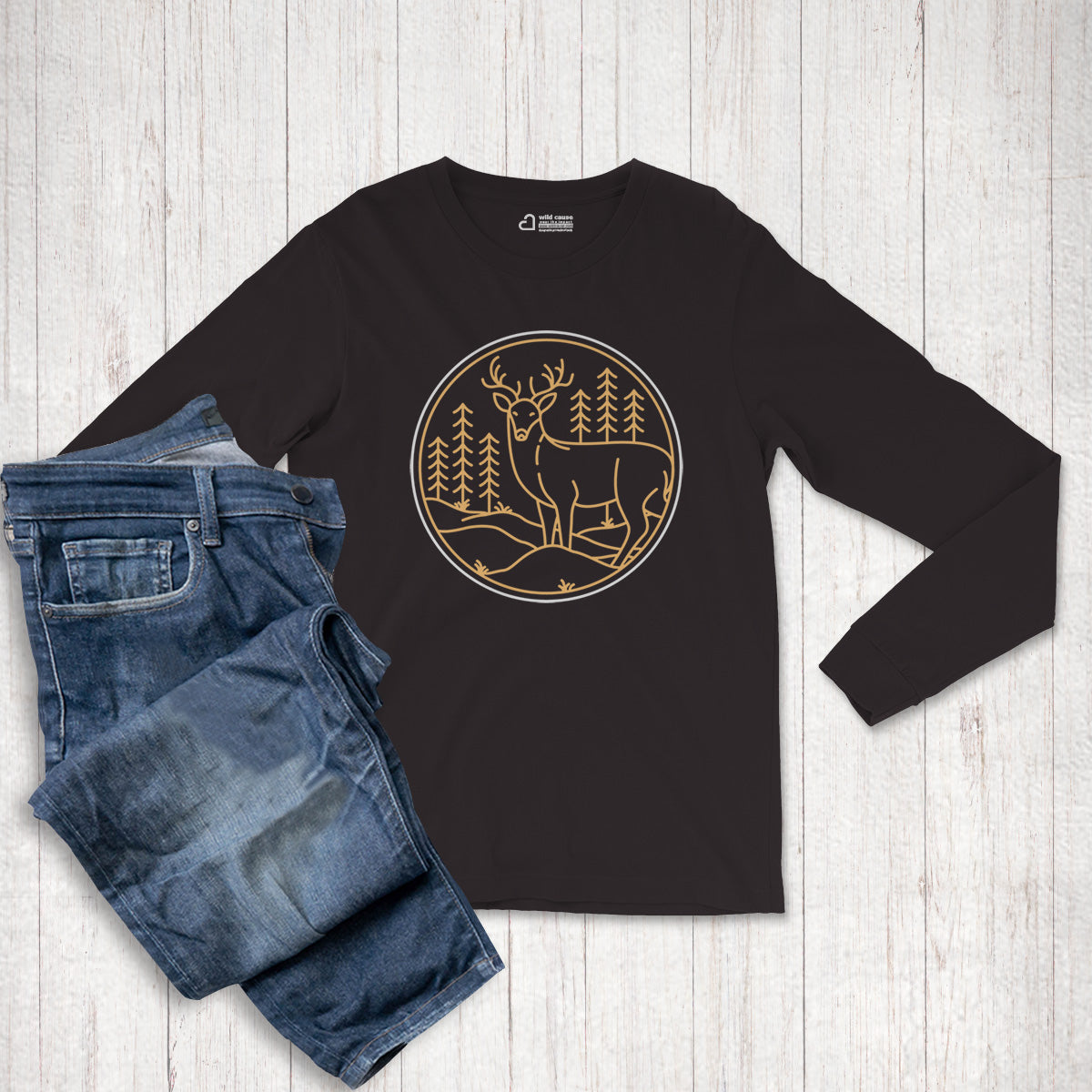 Serene Wild Deer Forest Wilderness Trek Adult Long Sleeve Tee T-Shirt