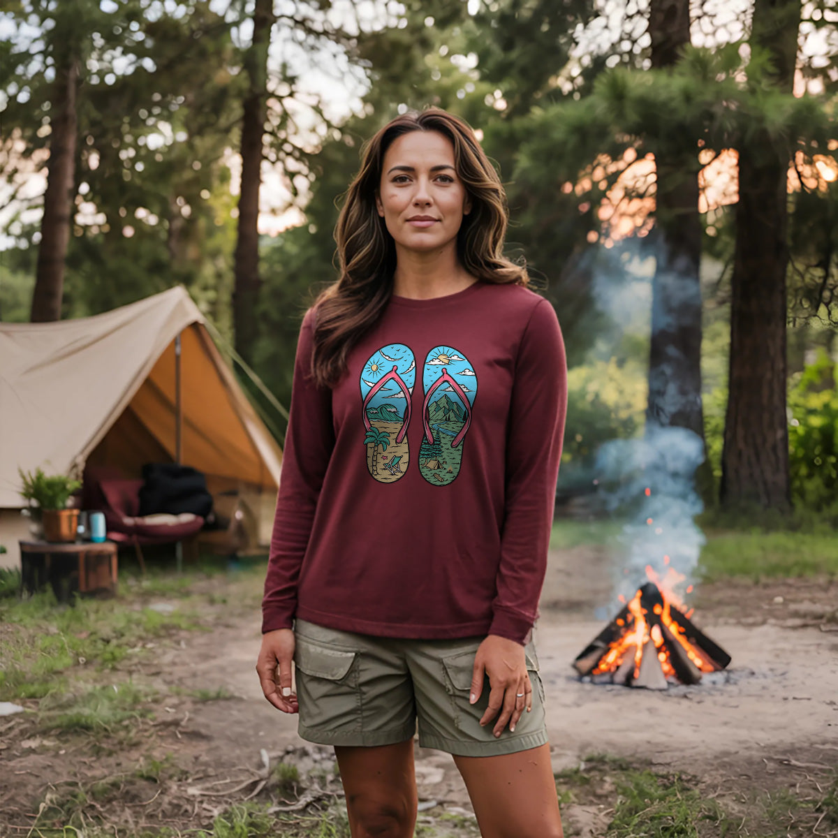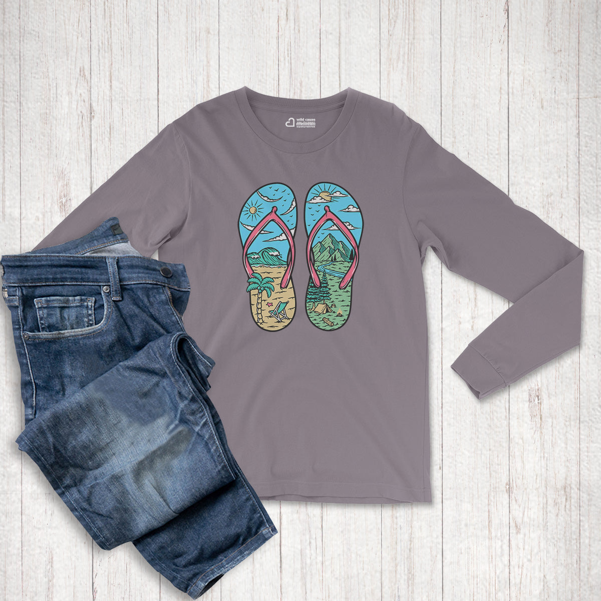 Snow-Sand Mountain Beach Hiking Sun Shirts Adult Long Sleeve Tee T-Shirt