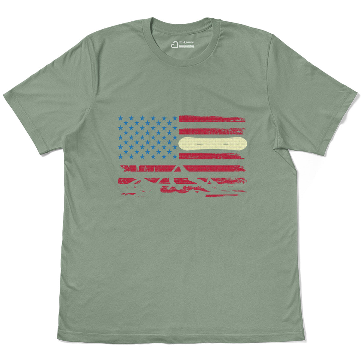 Snowboarding Patriotism American Flag Pride Adult Cotton Tee T-Shirt
