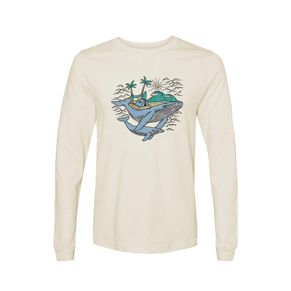 Whale meets waves in beach adventure Adult Long Sleeve Tee T-Shirt is perfect for beach whale spotting day. Enjoy a sunny beach whale time with this tee featuring whales love the beach. Get yours today!