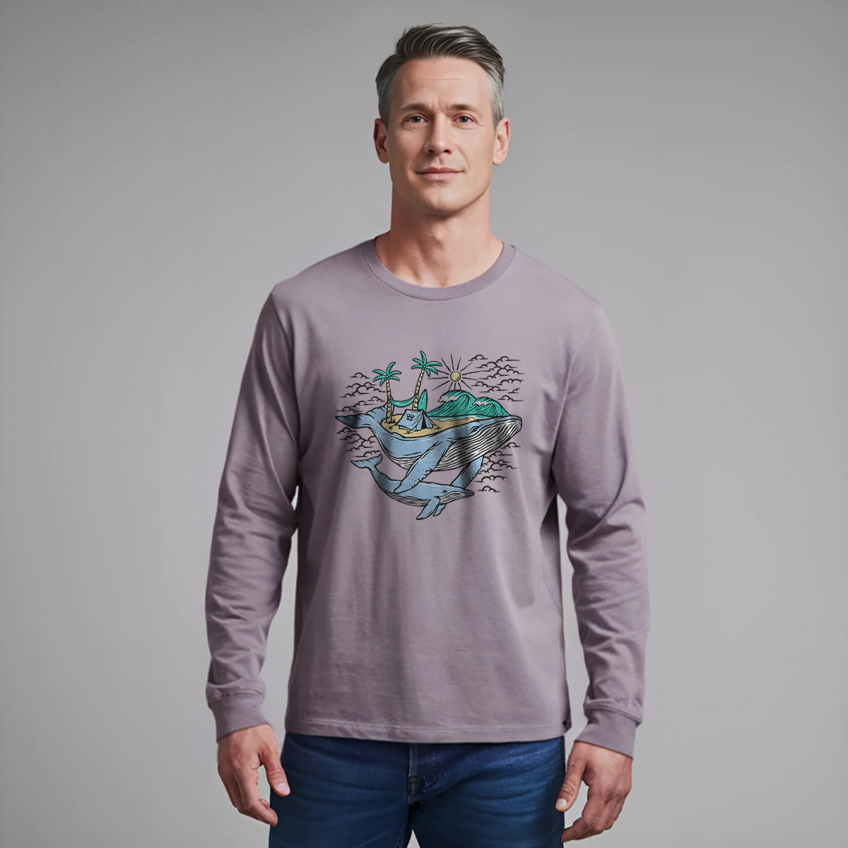 Sparkling Sunny Beach Whale Watching Vibes Adult Long Sleeve Tee T-Shirt