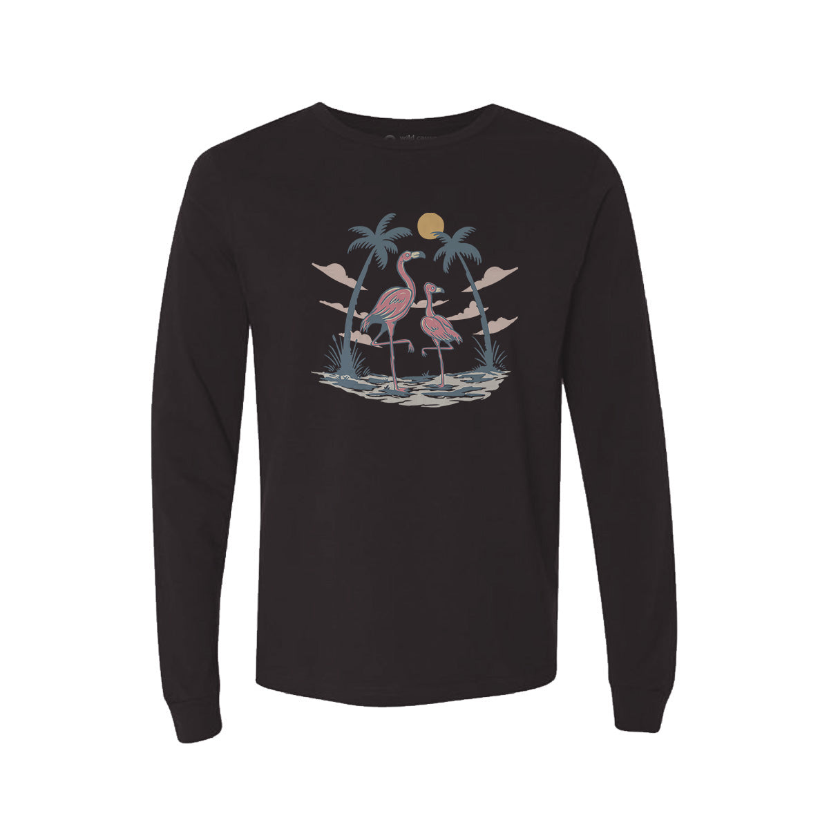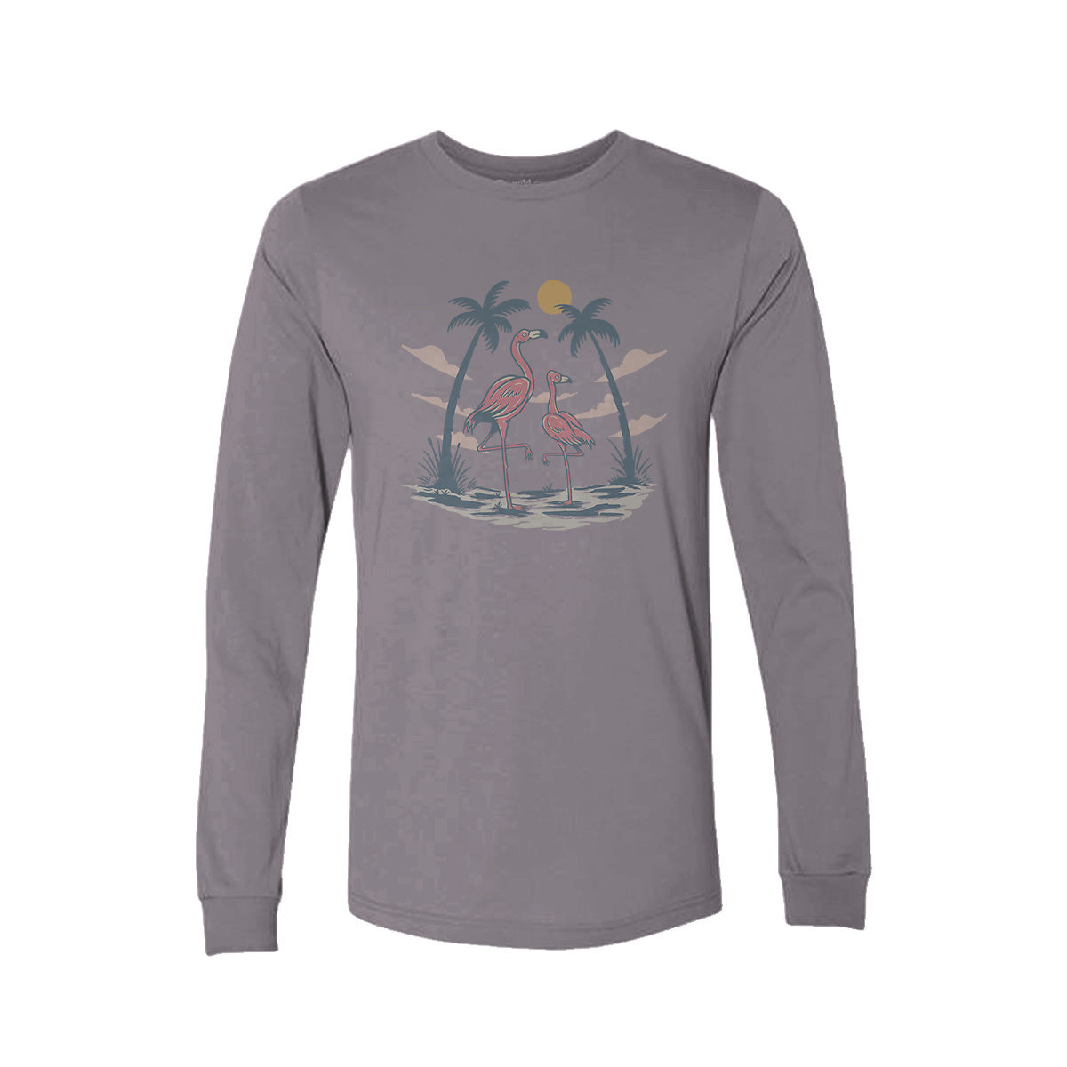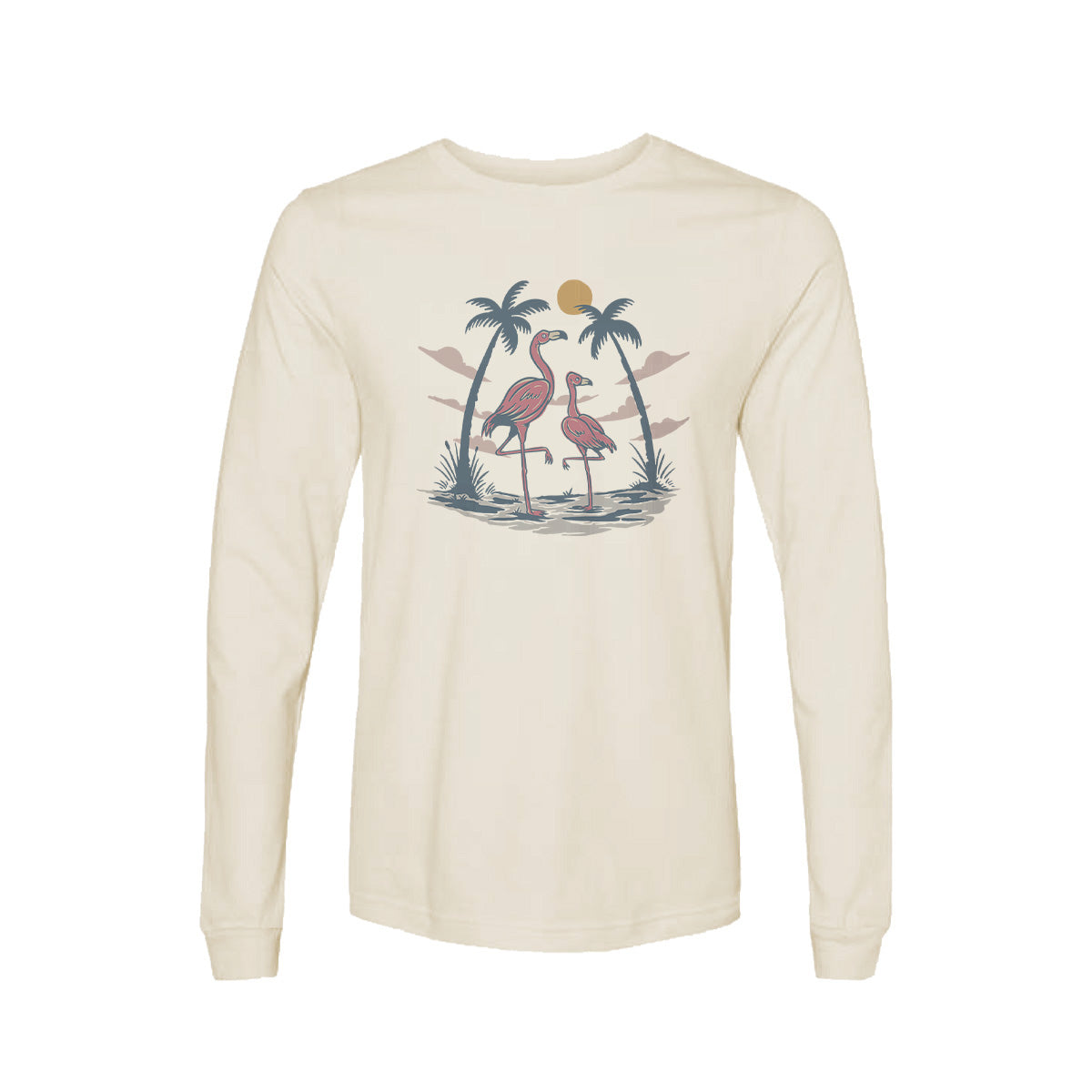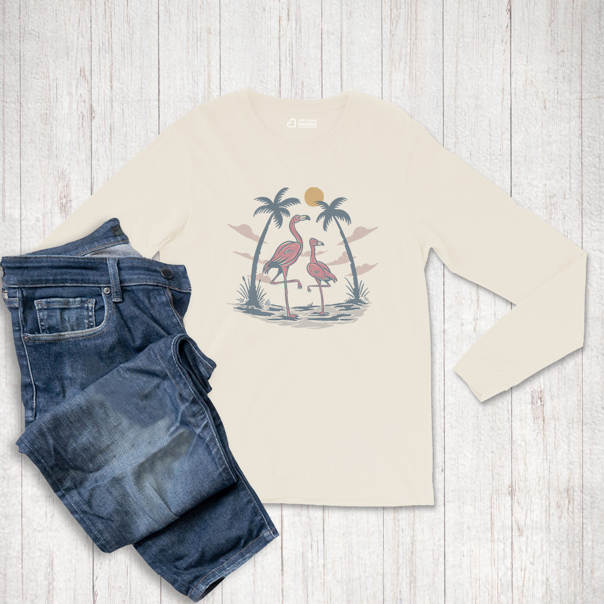 Standing Flamingo Beach Sunset Vibes Adult Long Sleeve Tee T-Shirt