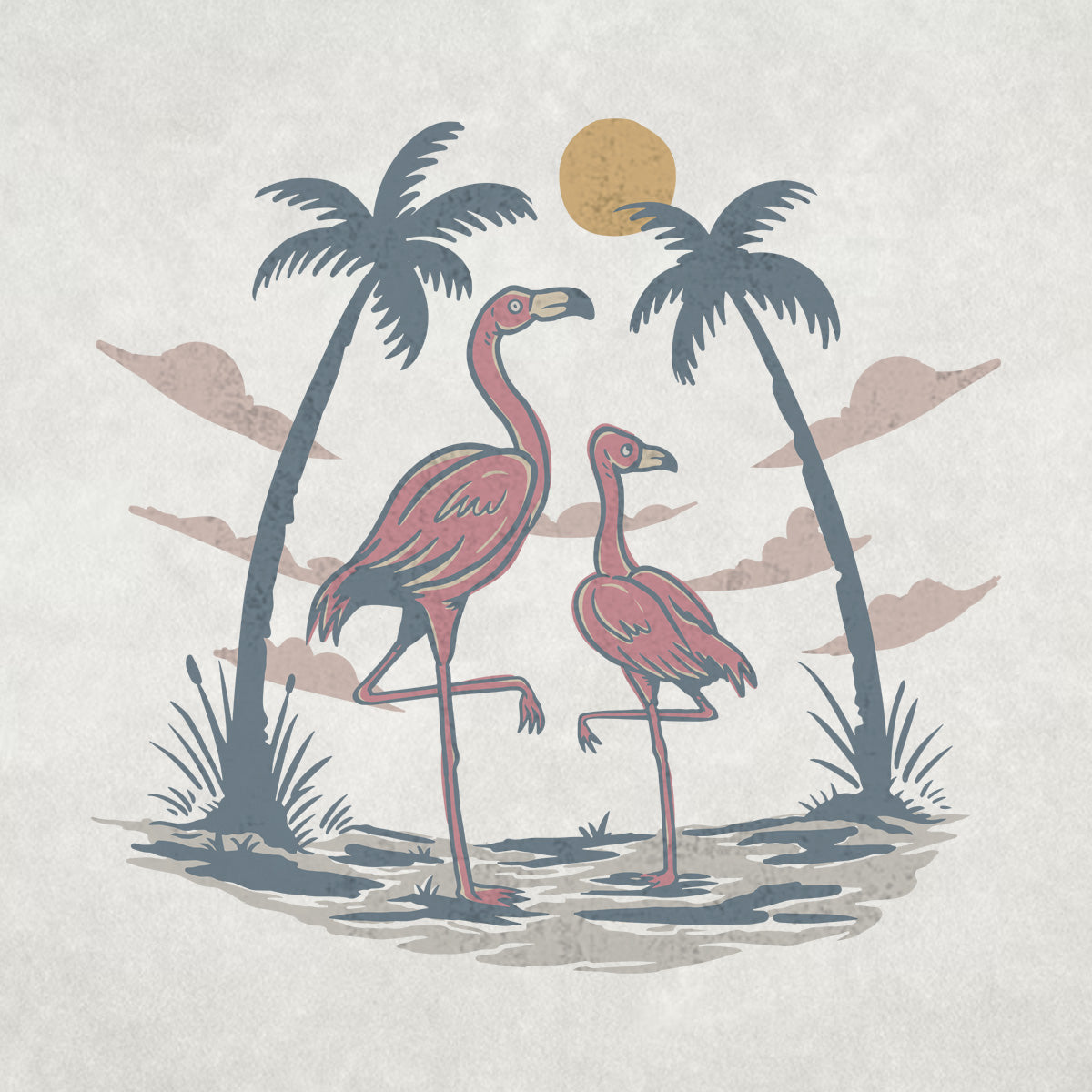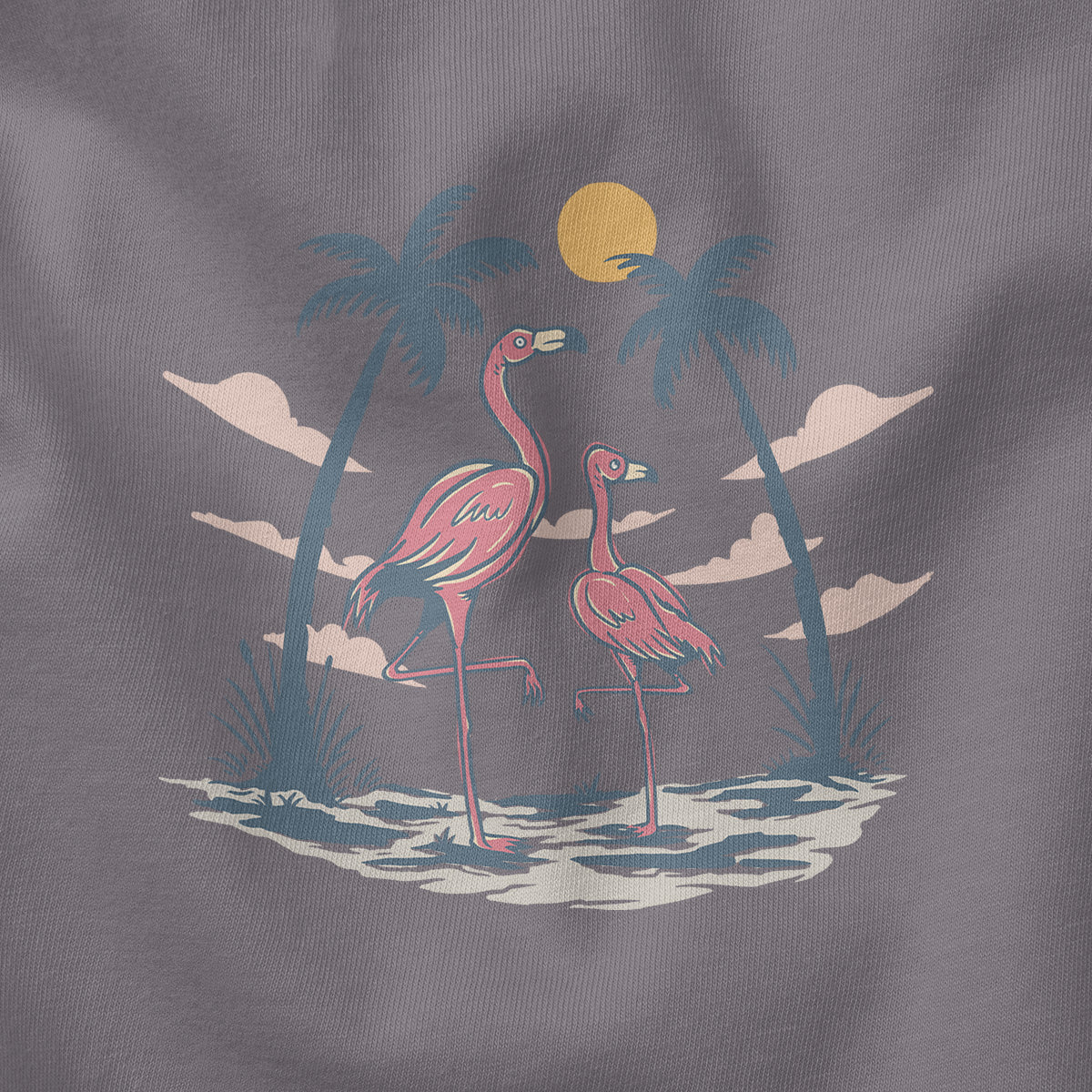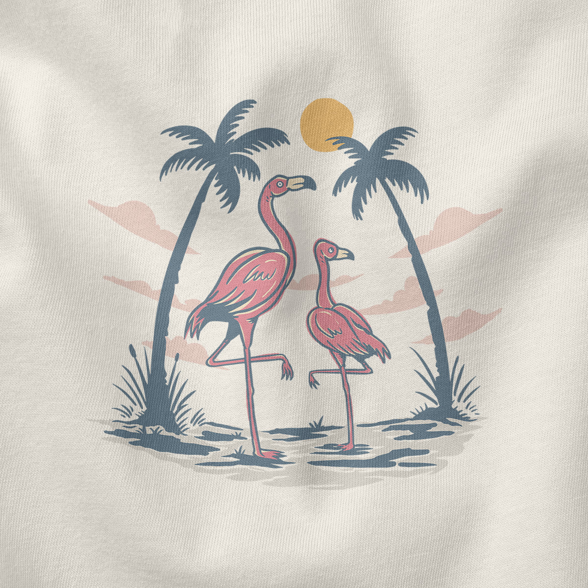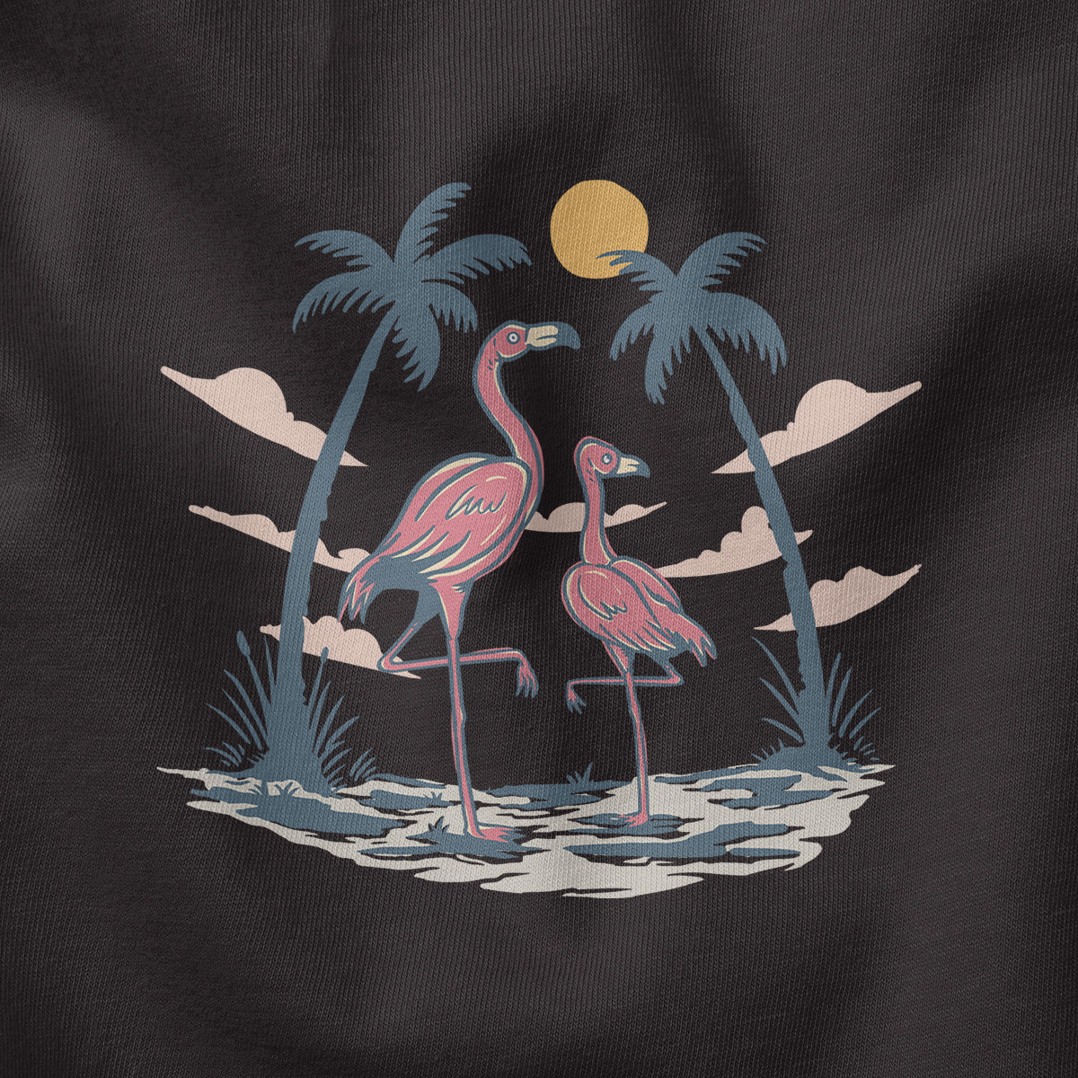 Standing Flamingo Beach Sunset Vibes Adult Long Sleeve Tee T-Shirt