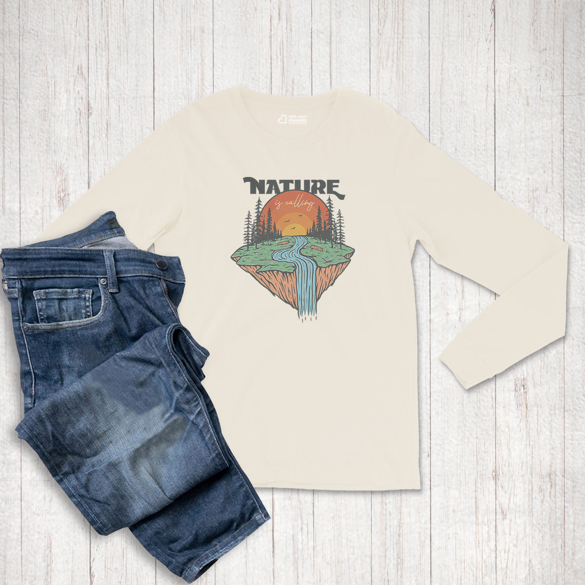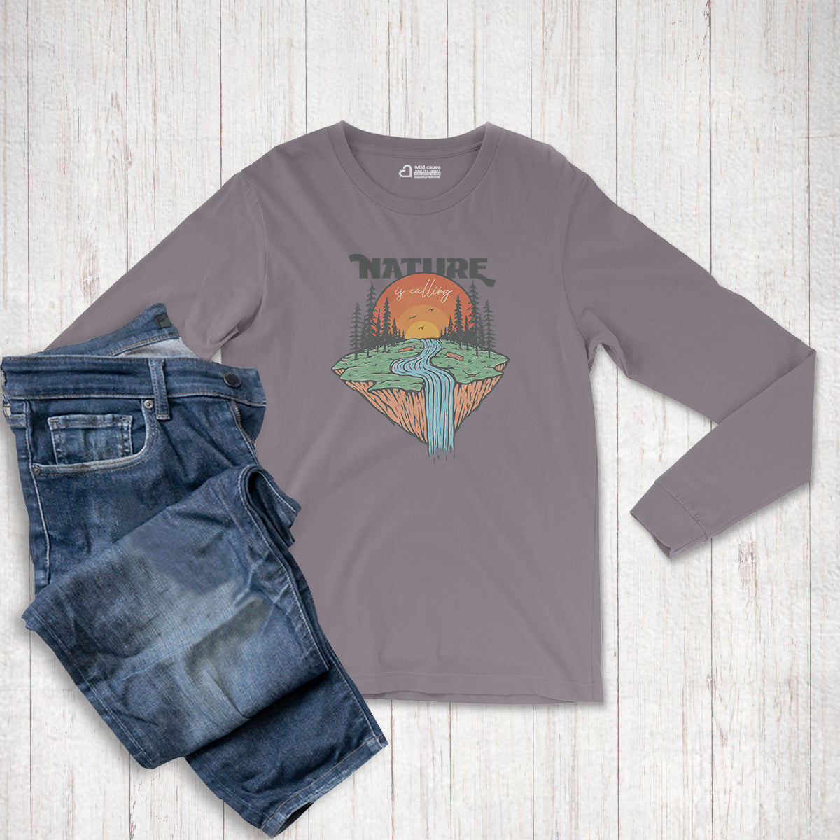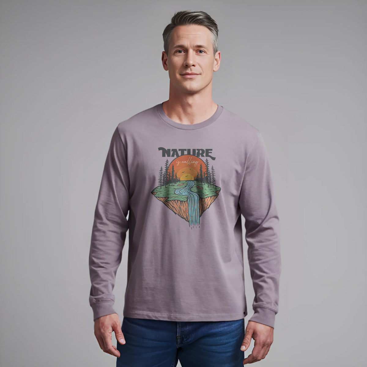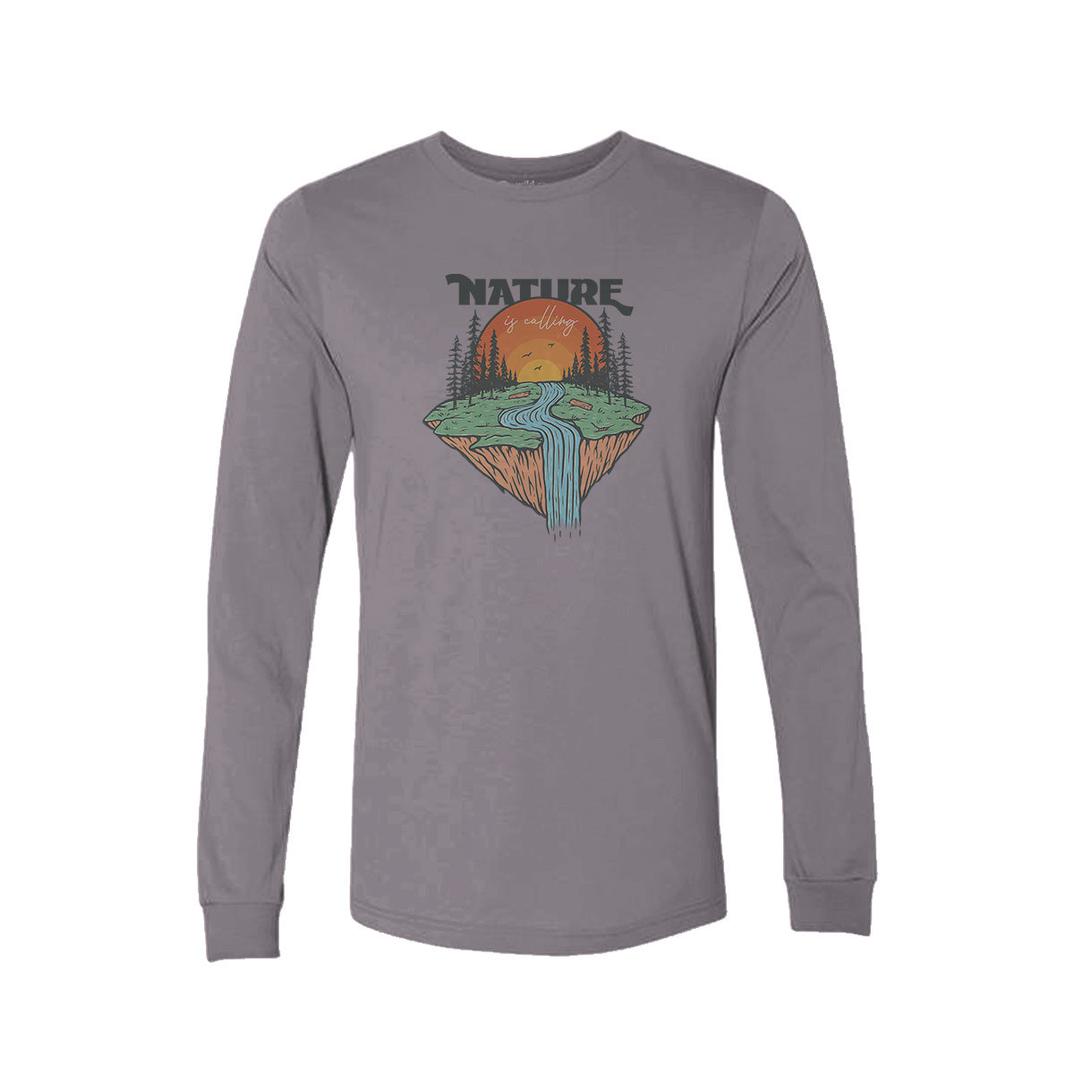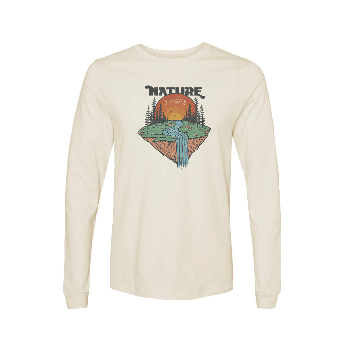 Sunset Nature Is Calling Wilderness Adventure Awaits Adult Long Sleeve Tee T-Shirt $39.99