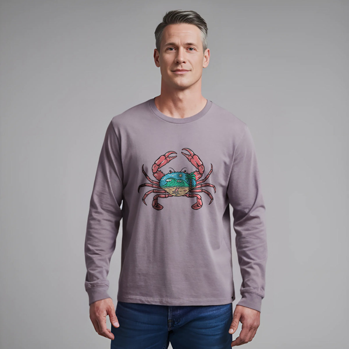 Sunset Seacoast Beach Coral Reef Crab Life Adult Long Sleeve Tee T-Shirt