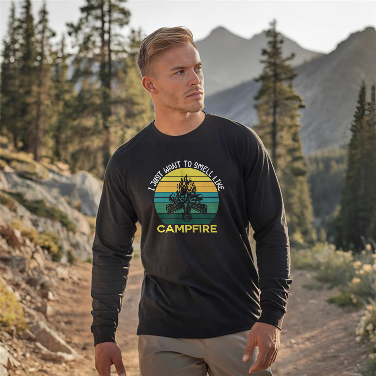 Embrace the campfire vibes and outdoor campfire fragrance with the Smell campfire, enjoy camping fun Adult Long Sleeve Tee T-Shirt. The sweet smell of camping memories that last, captured in this unique design.
