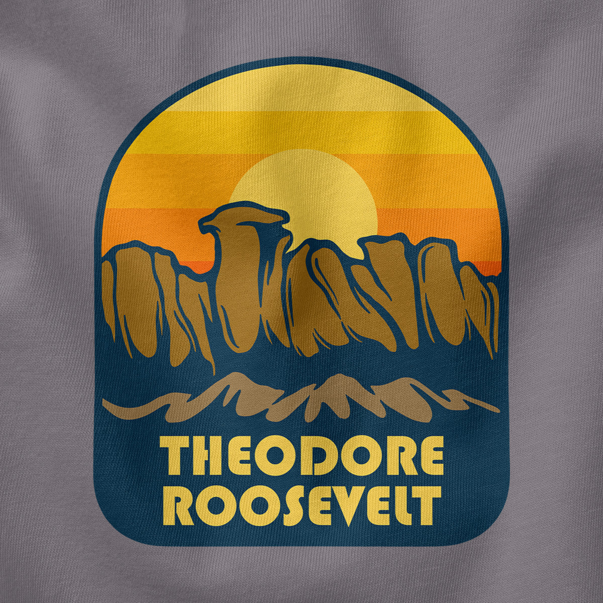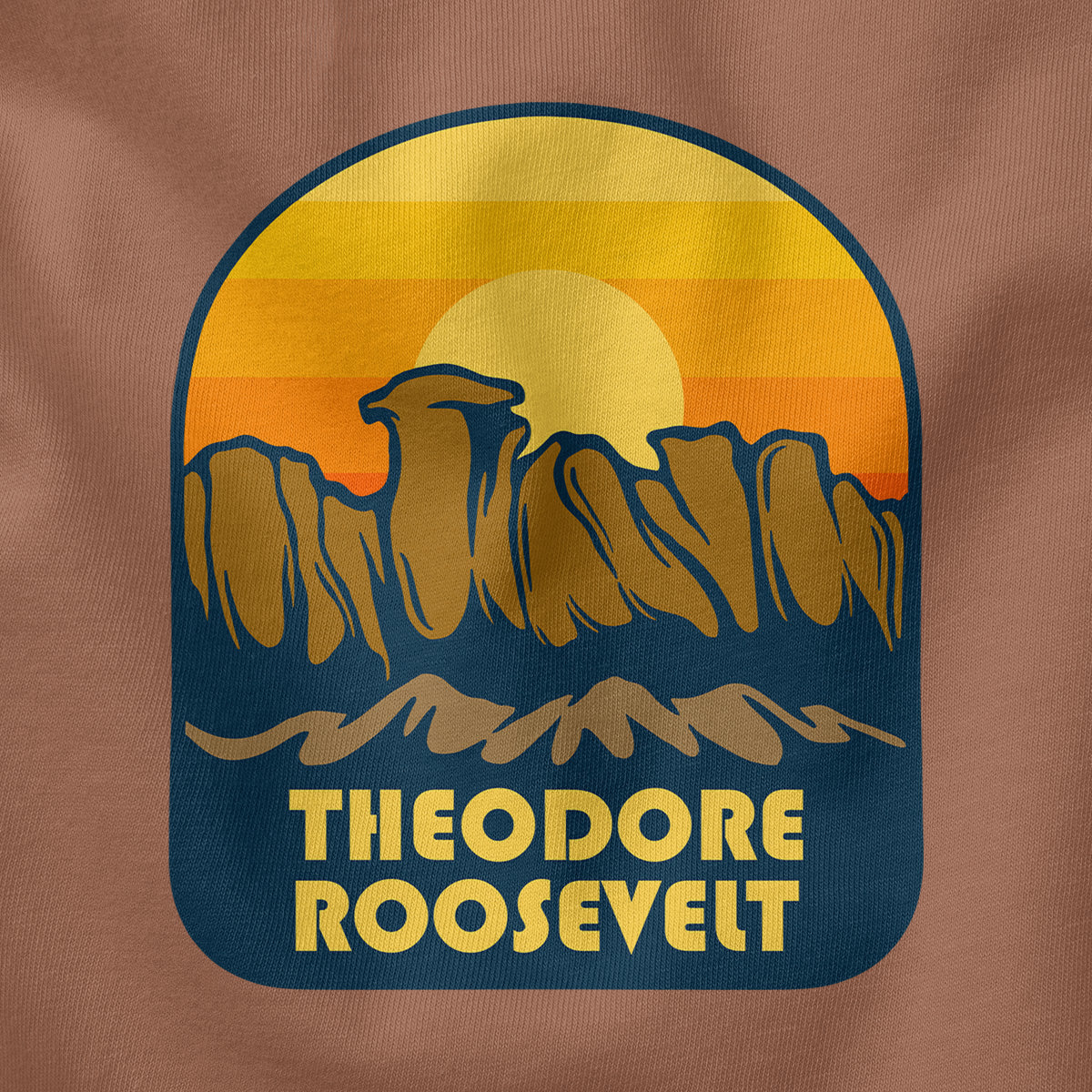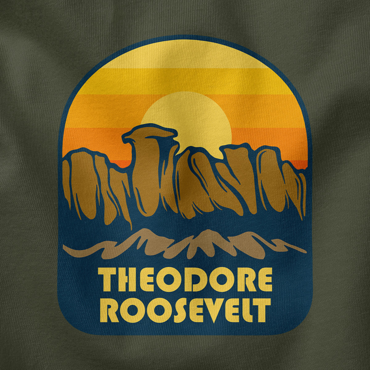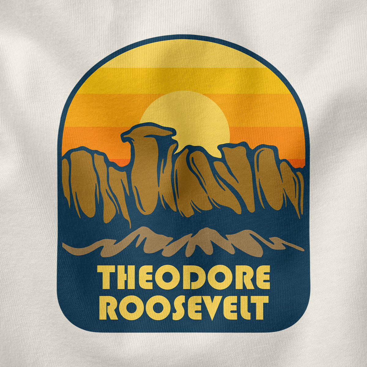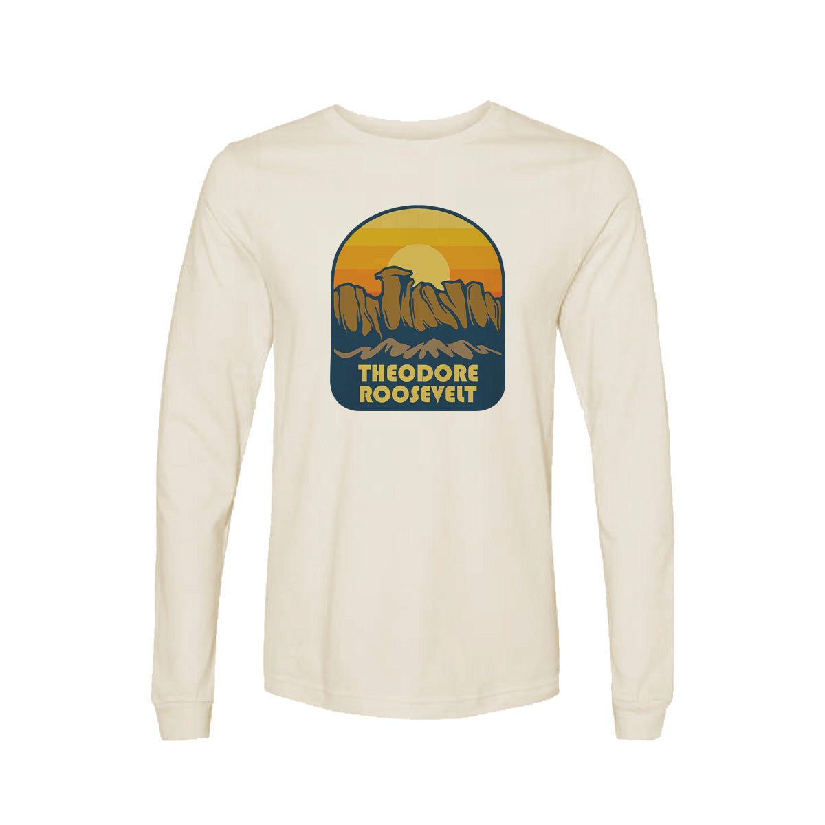 The Theodore Roosevelt Park Adventure Adult Long Sleeve Tee T-Shirt is ideal for outdoor trek in Roosevelt Park. Explore Roosevelt’s wilderness with this wild frontier adventure tee. Featuring Roosevelt National Park and frontier trails design.