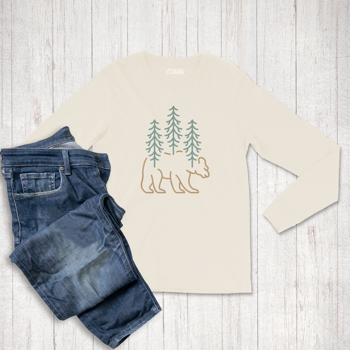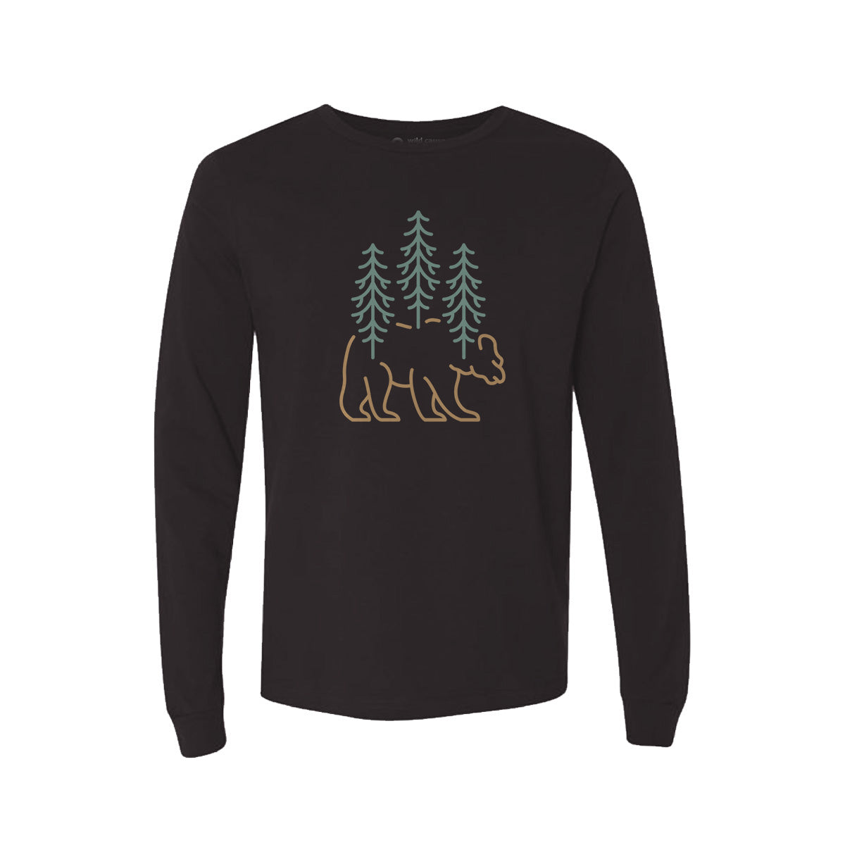 Trekking Through Wild Bears In Forest Adult Long Sleeve Tee T-Shirt