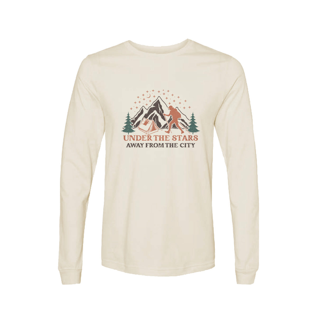 Under Stars Away From City Mountain Camping Vibes Adult Long Sleeve Tee T-Shirt