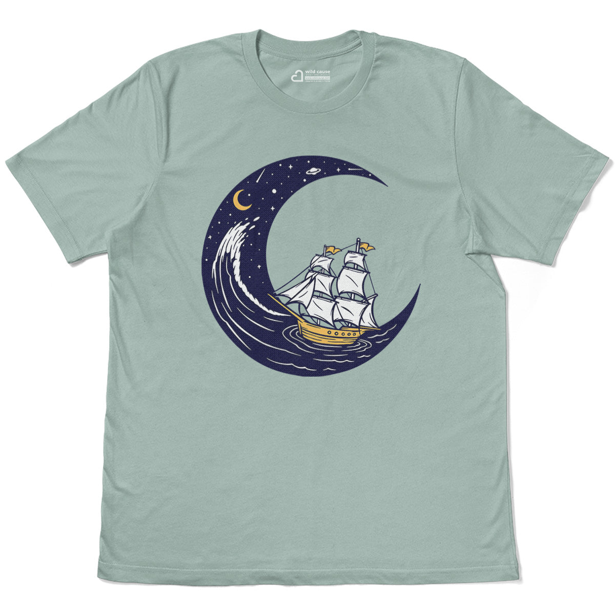 Unknown Sailing Moon Boat Adventure Adult Cotton Tee T-Shirt