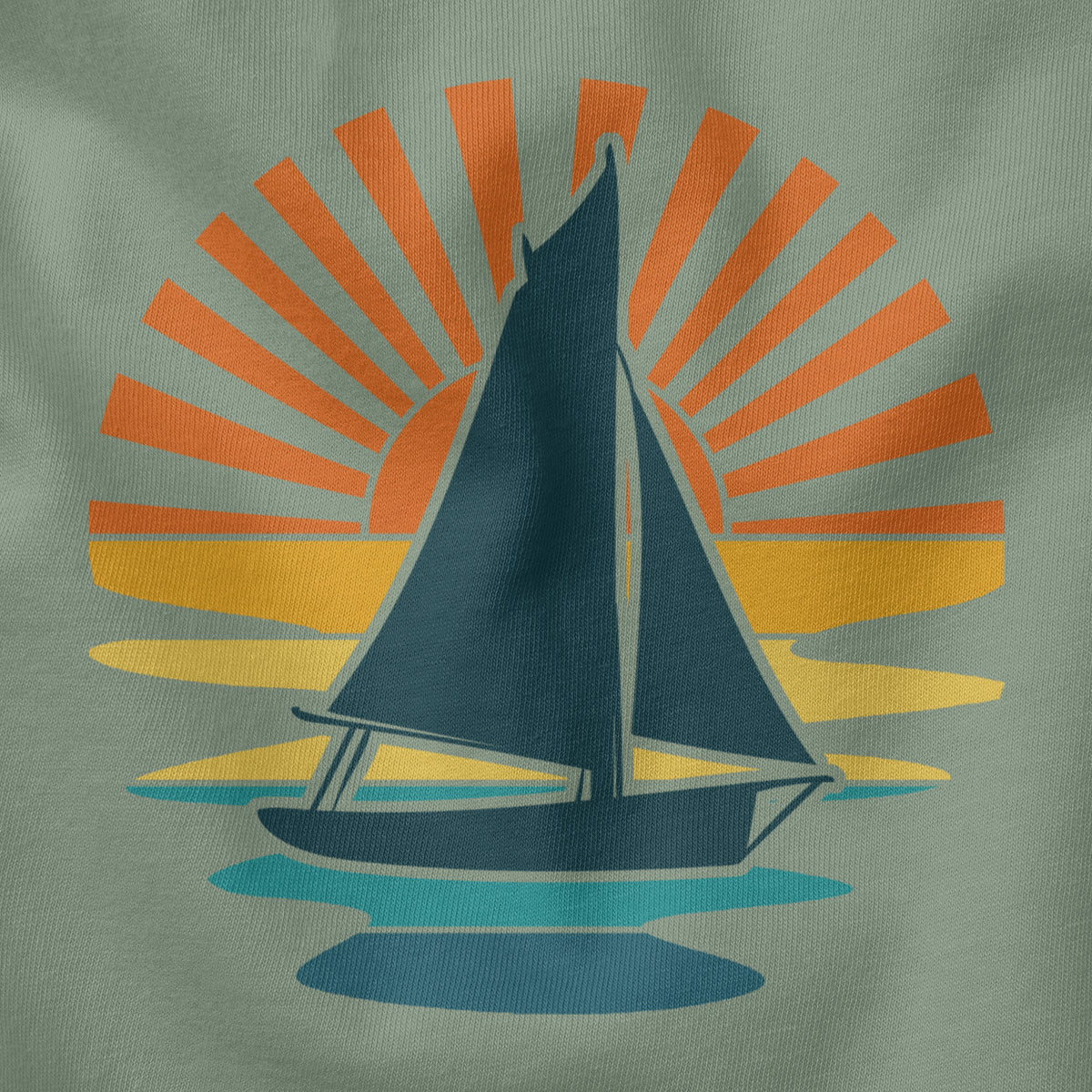 Vintage Sailboat Sunset And Beach Adventure Adult Cotton Tee T-Shirt