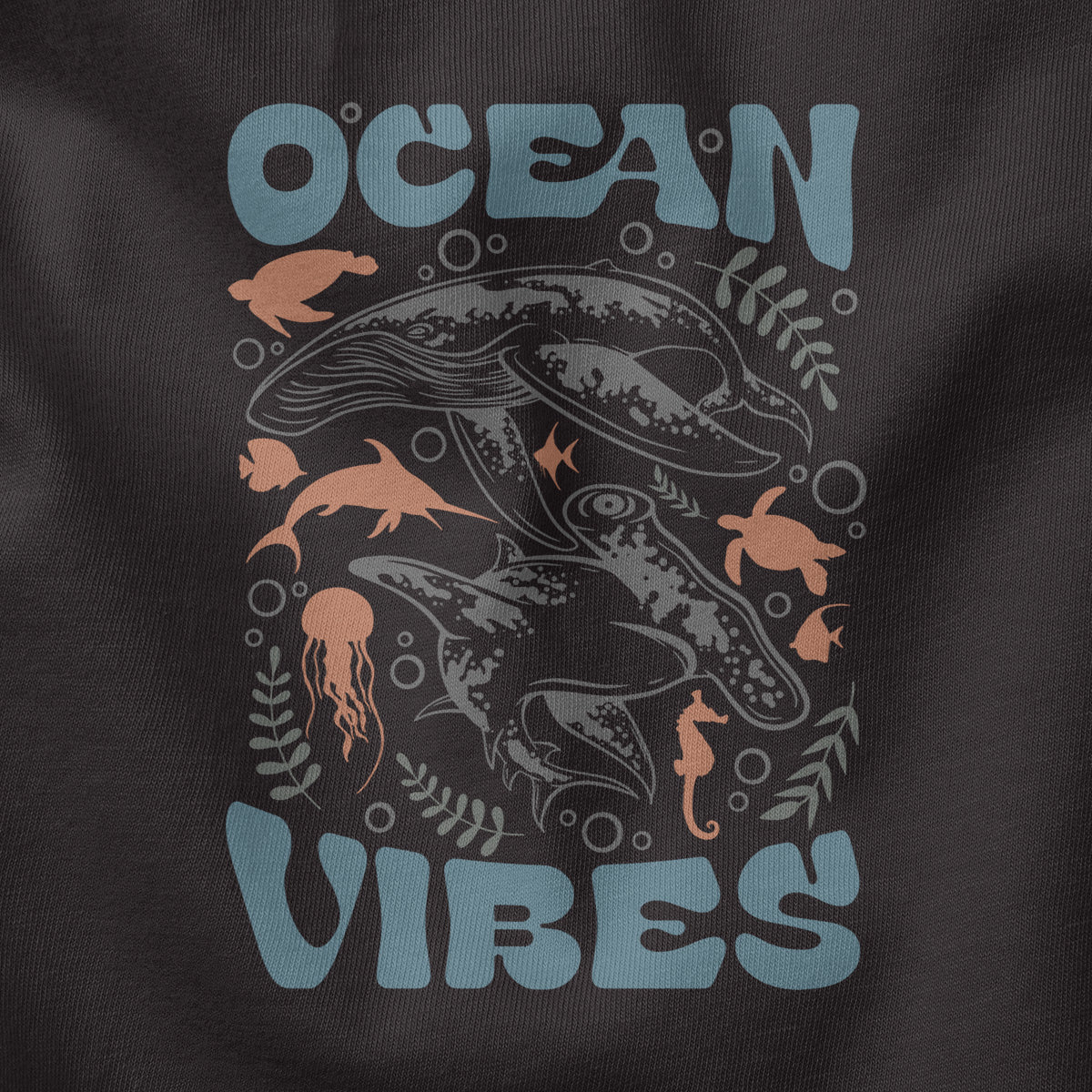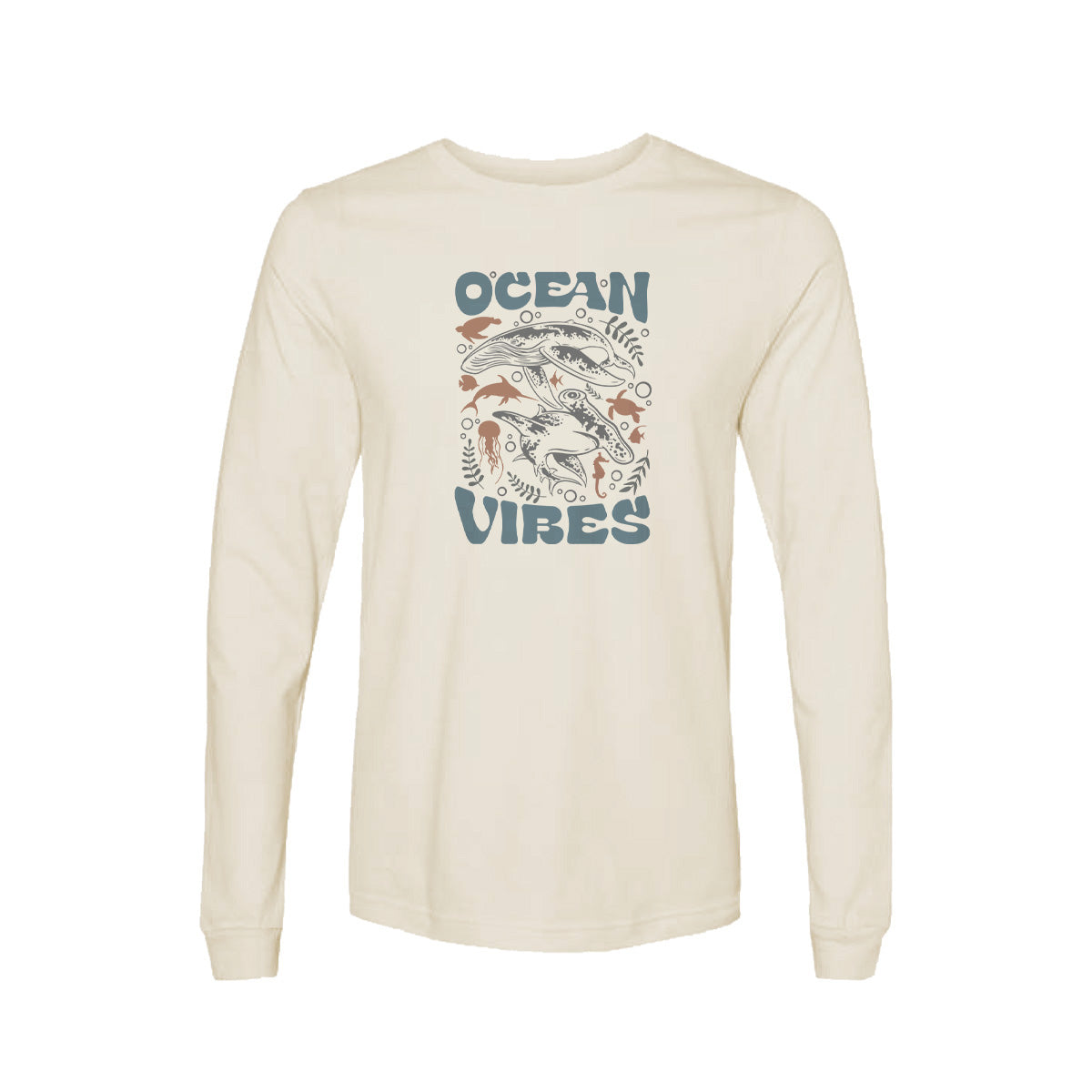 Whales Swimming Ocean Vibes Adult Long Sleeve Tee T-Shirt