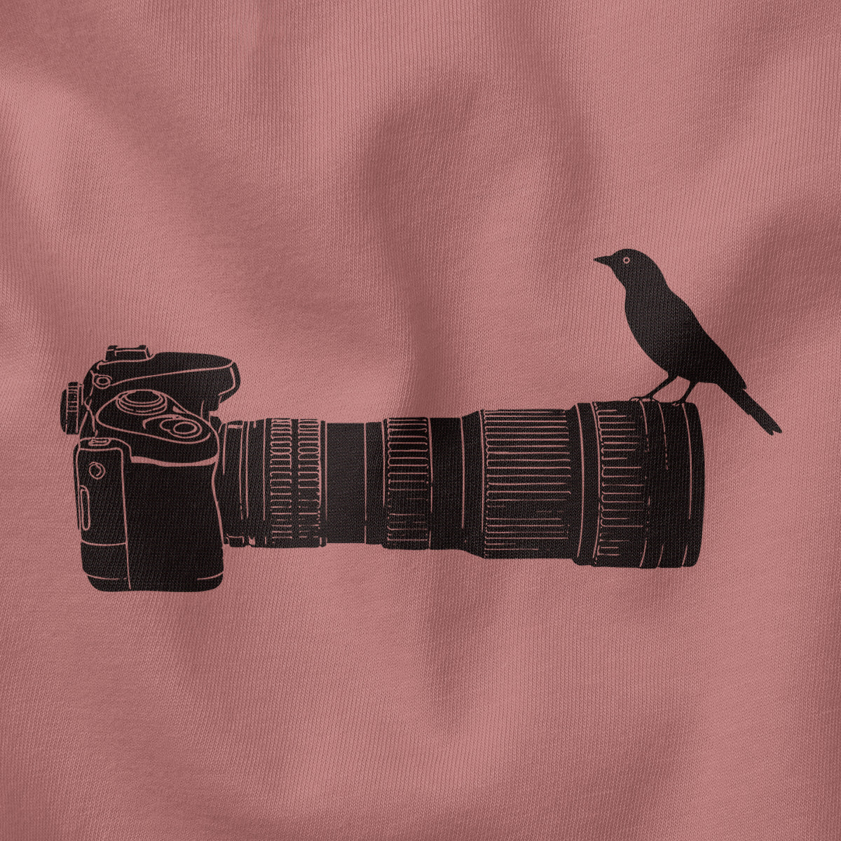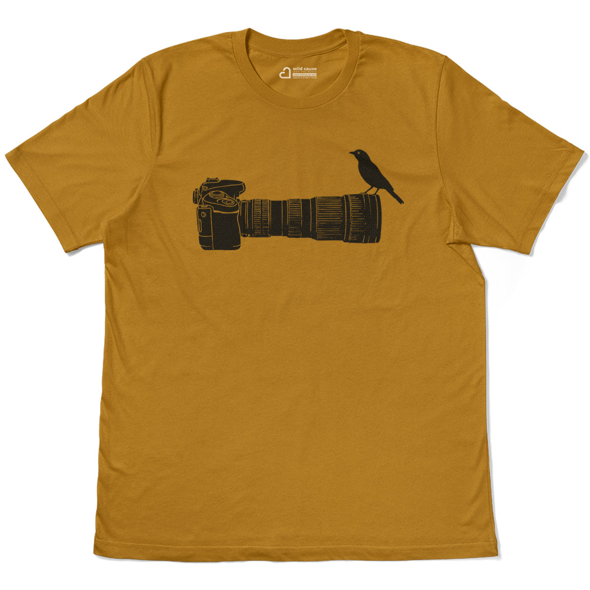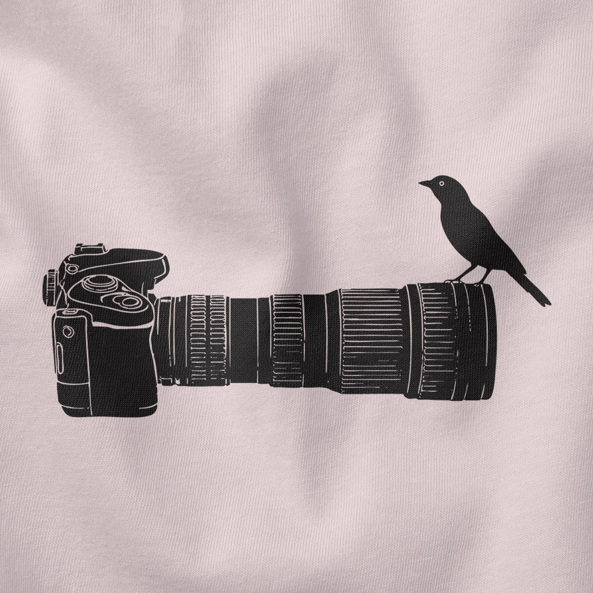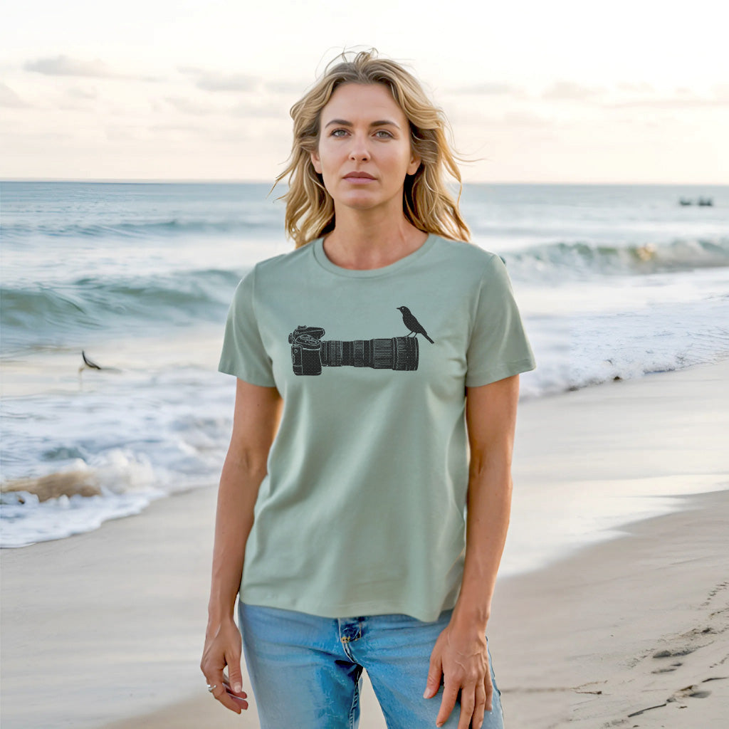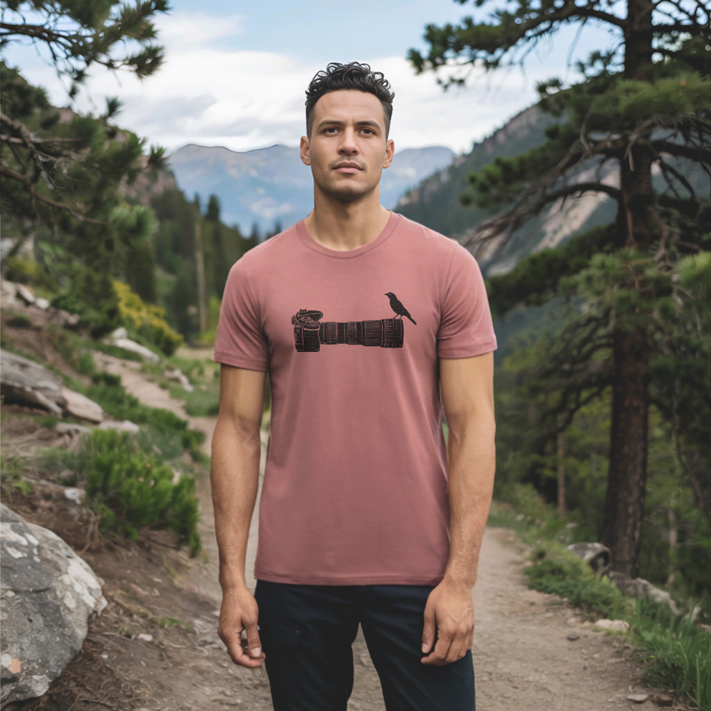 Wildlife Bird Perched On Camera Lens Adult Cotton Tee T-Shirt