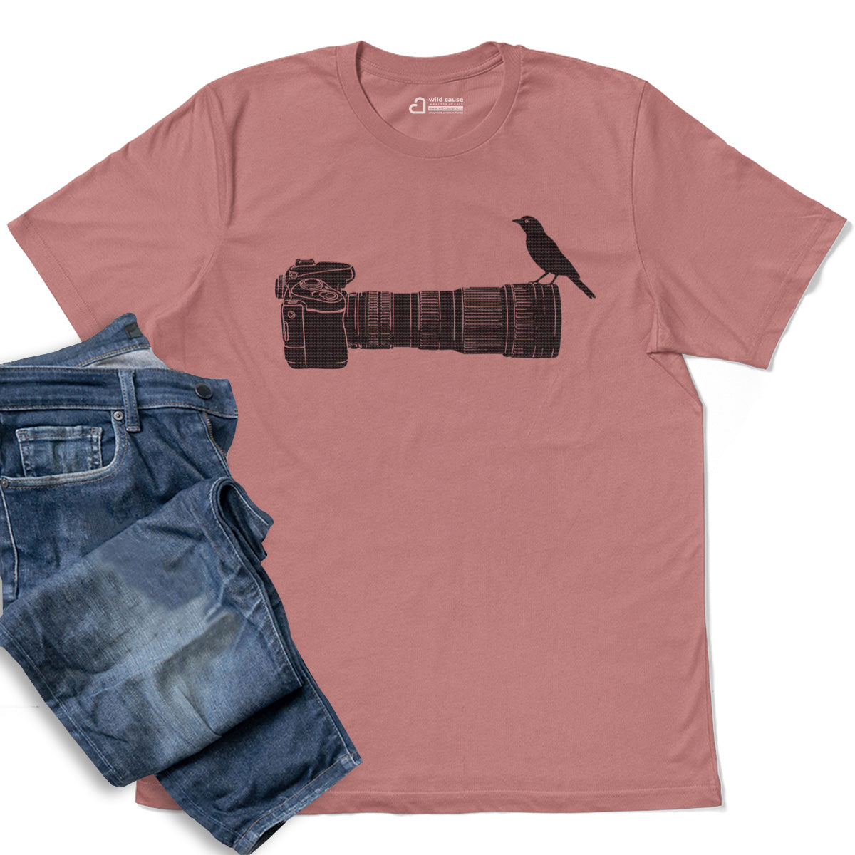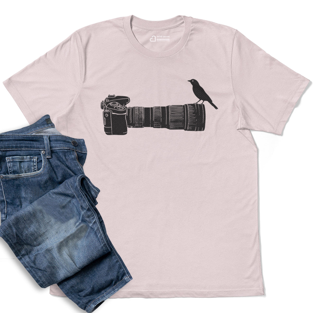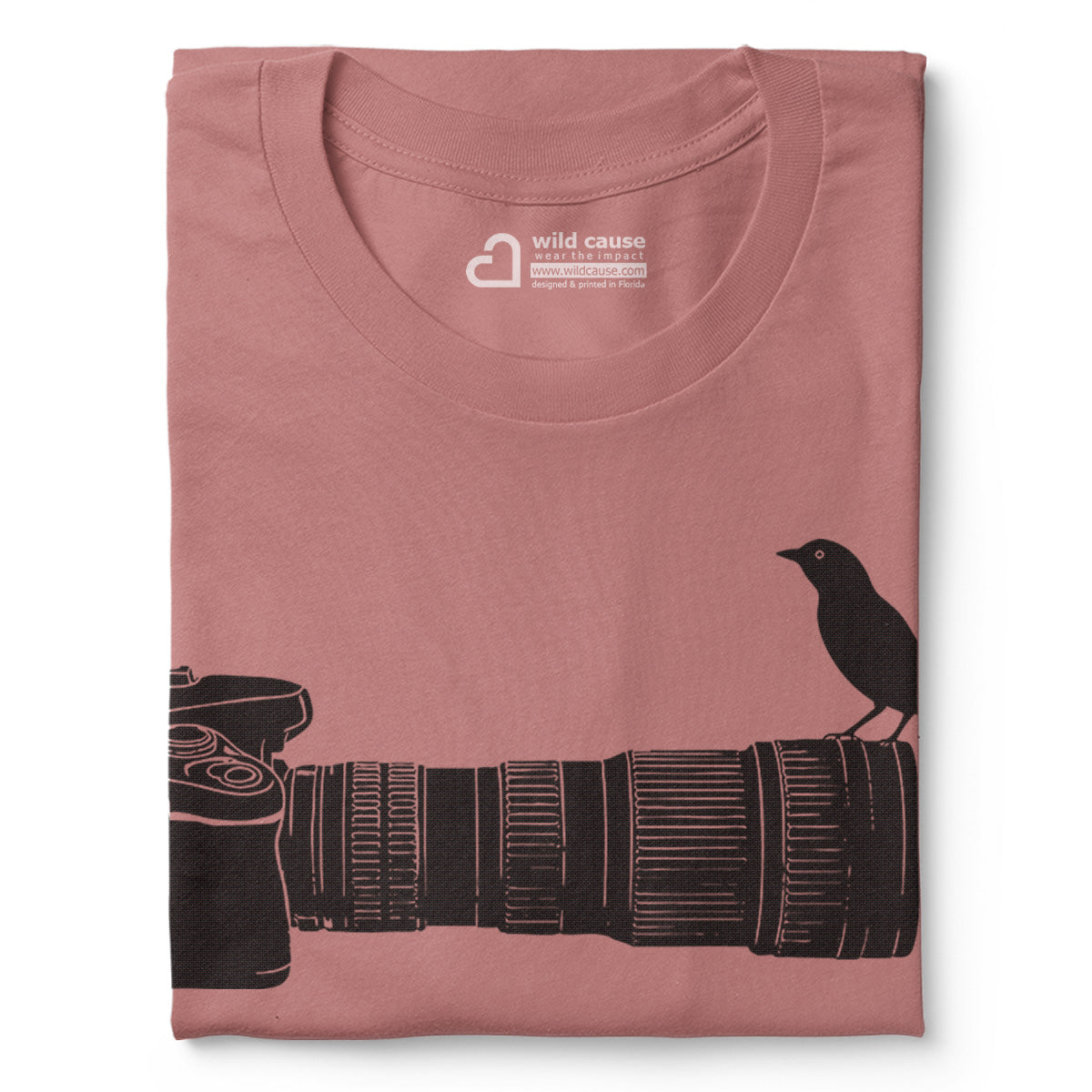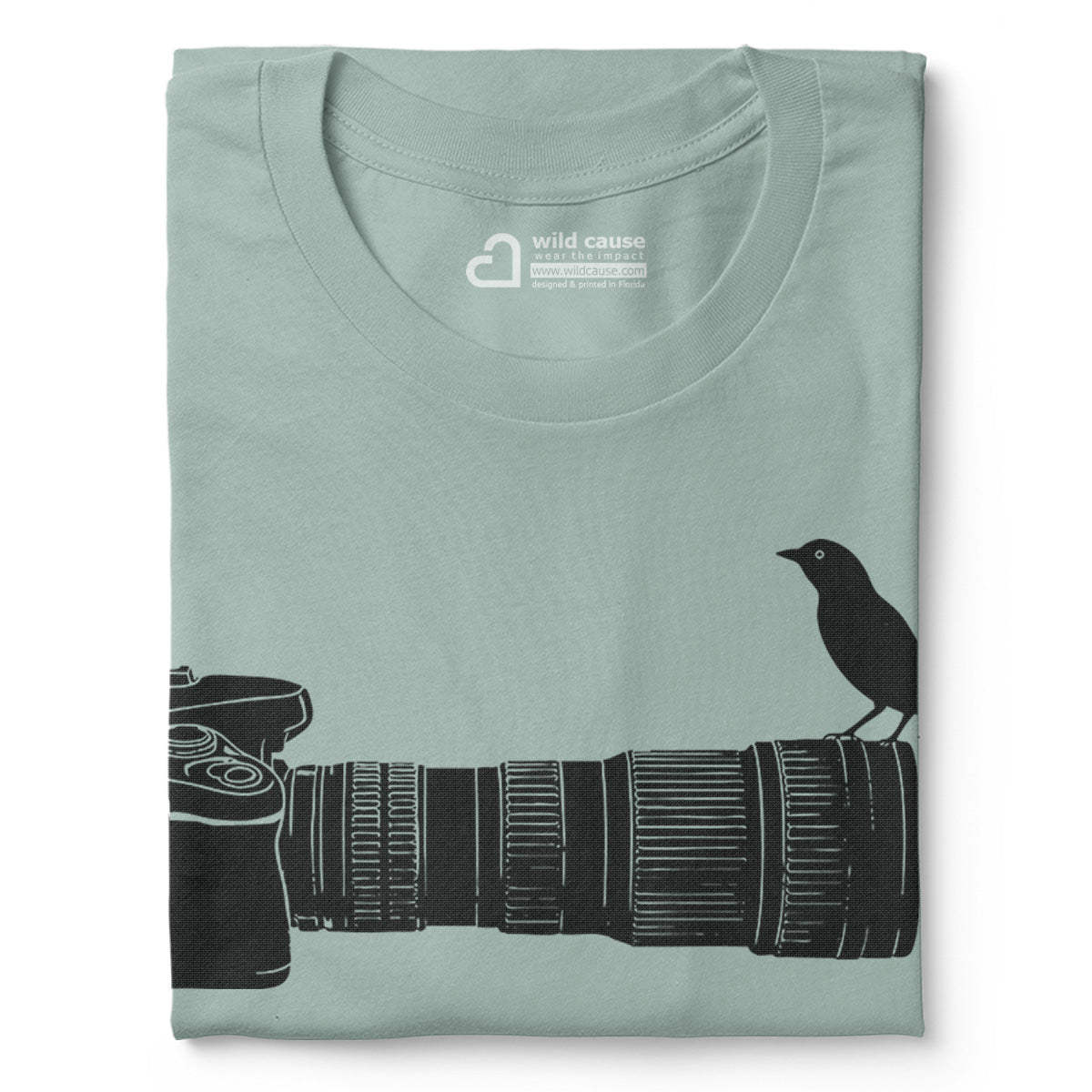 Wildlife Bird Perched On Camera Lens Adult Cotton Tee T-Shirt