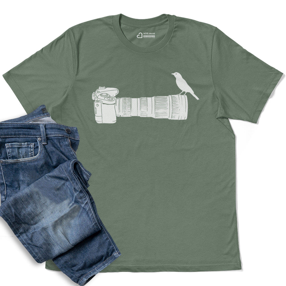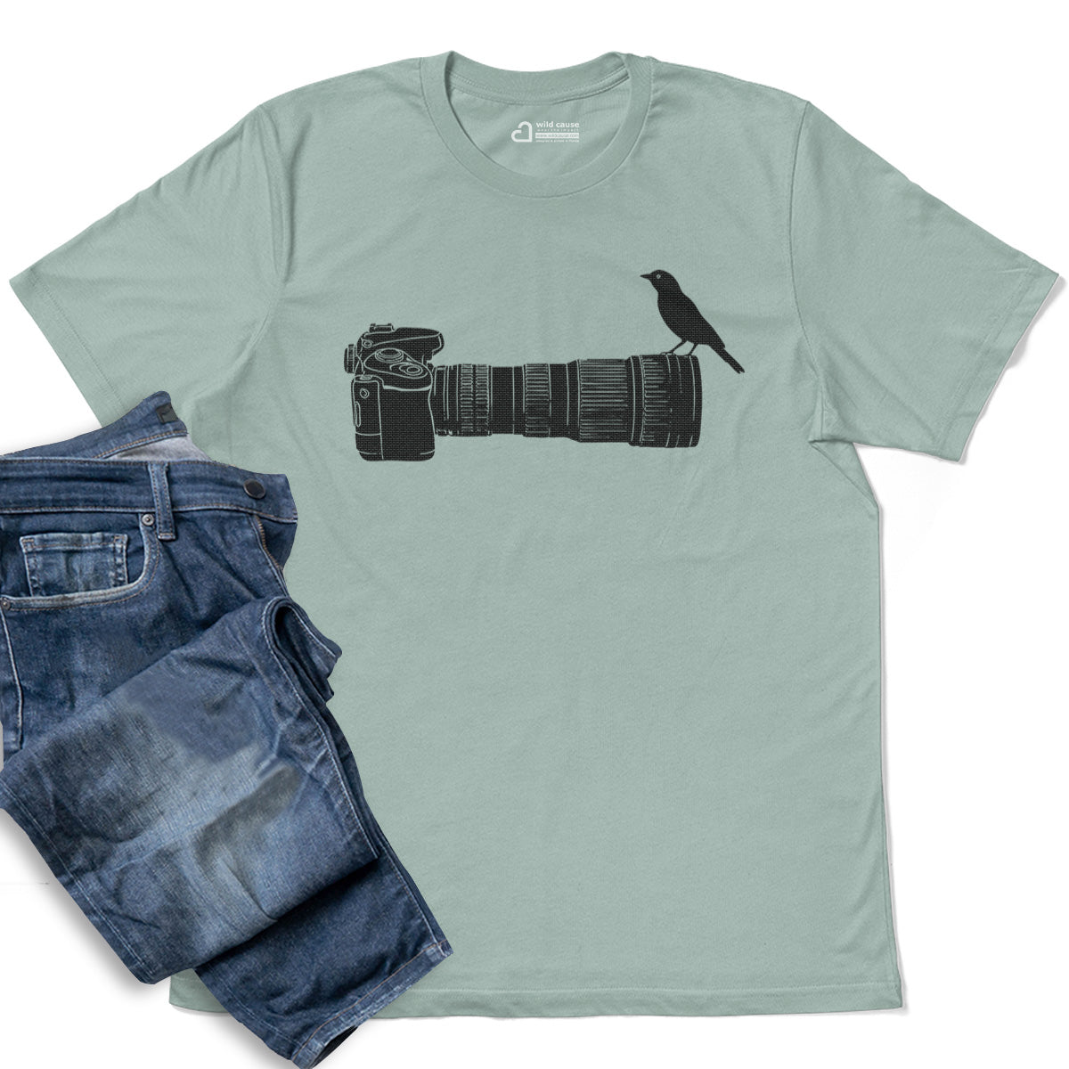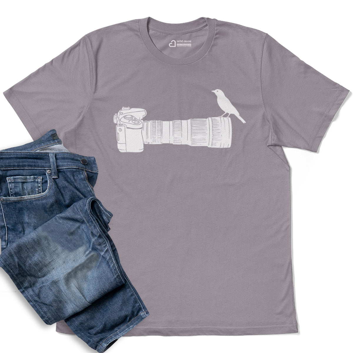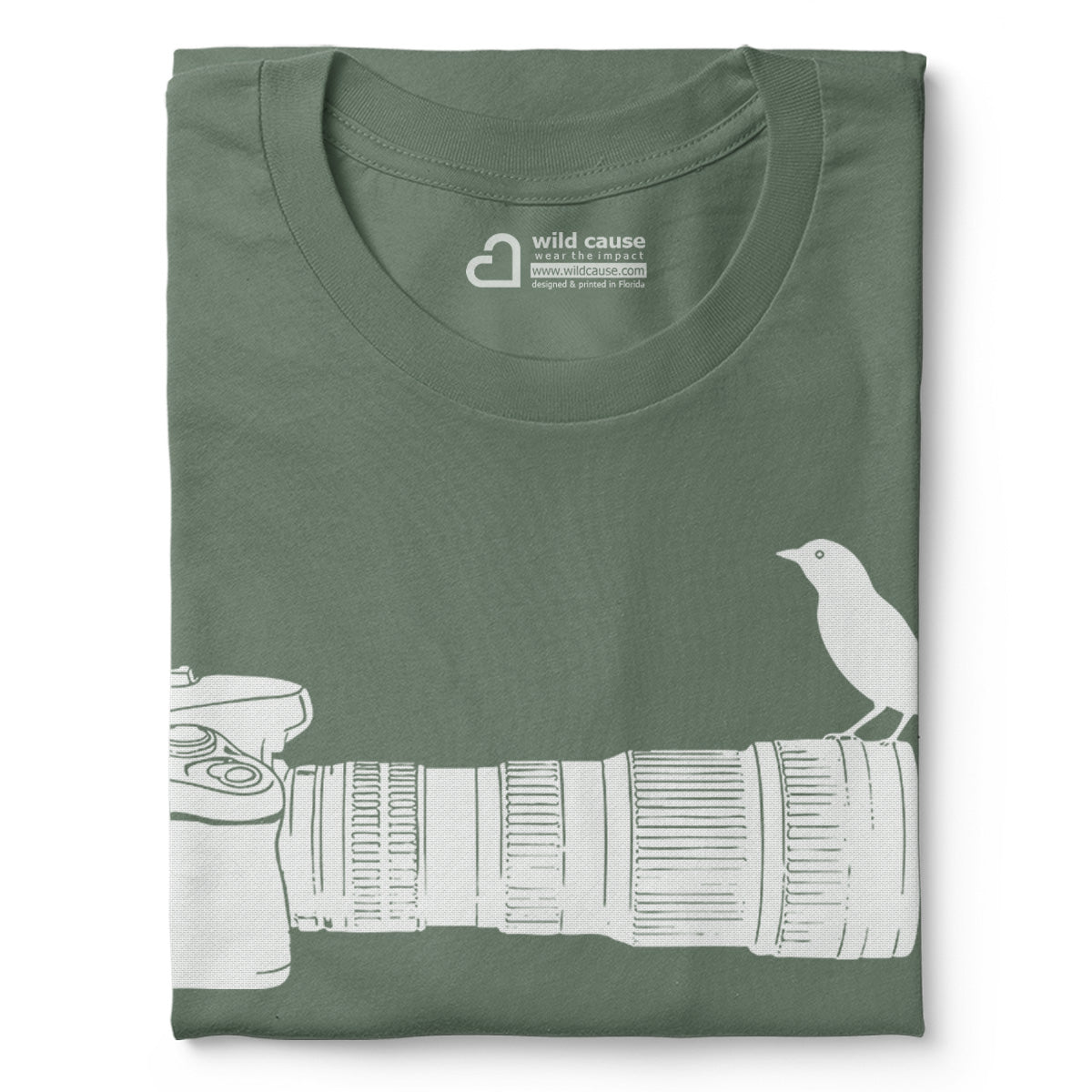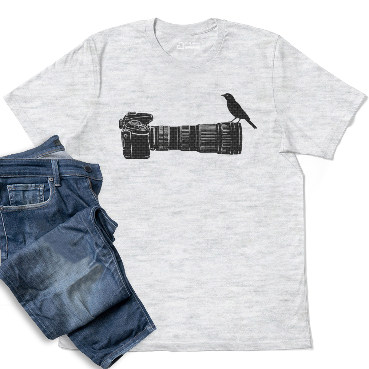 Wildlife Bird Perched On Camera Lens Adult Cotton Tee T-Shirt