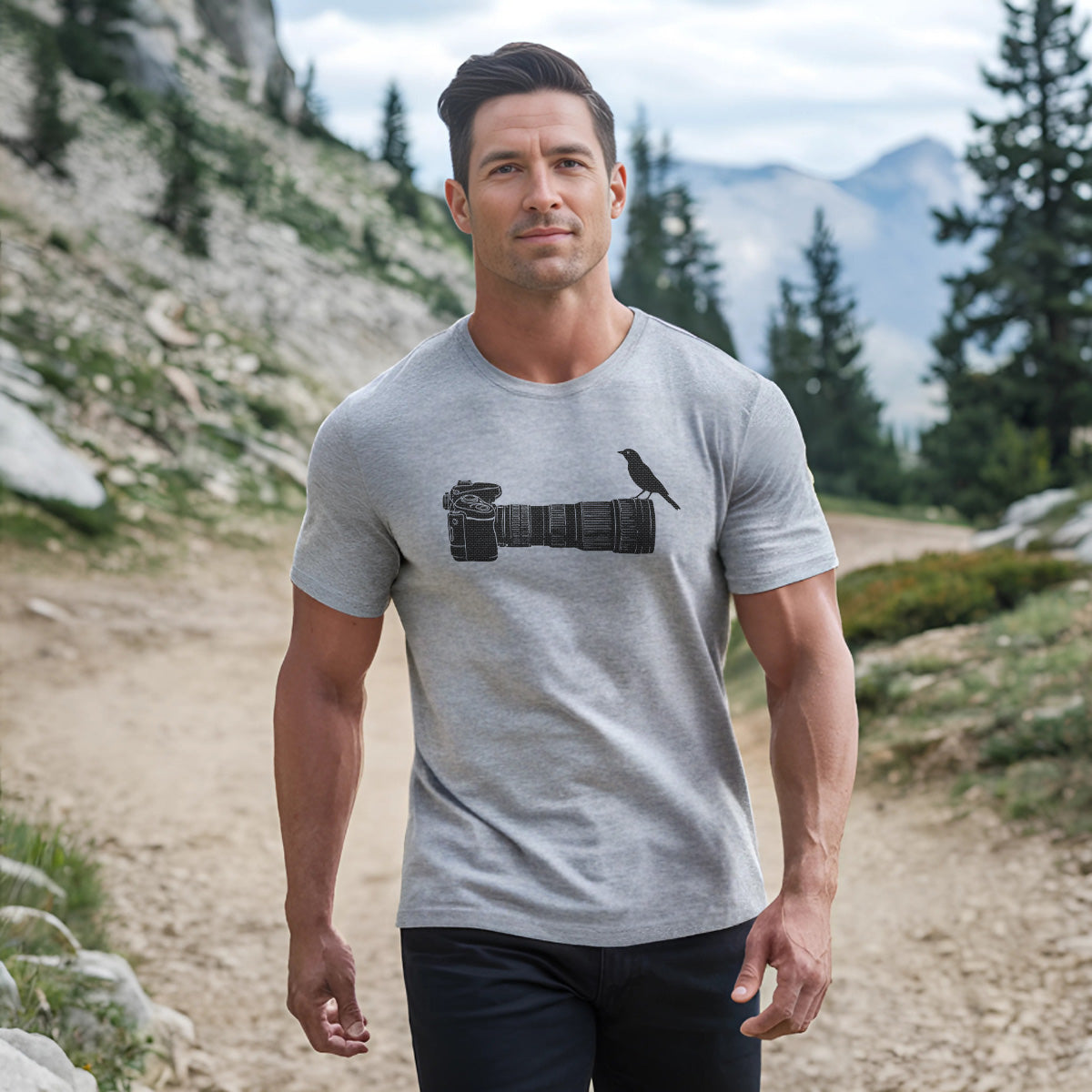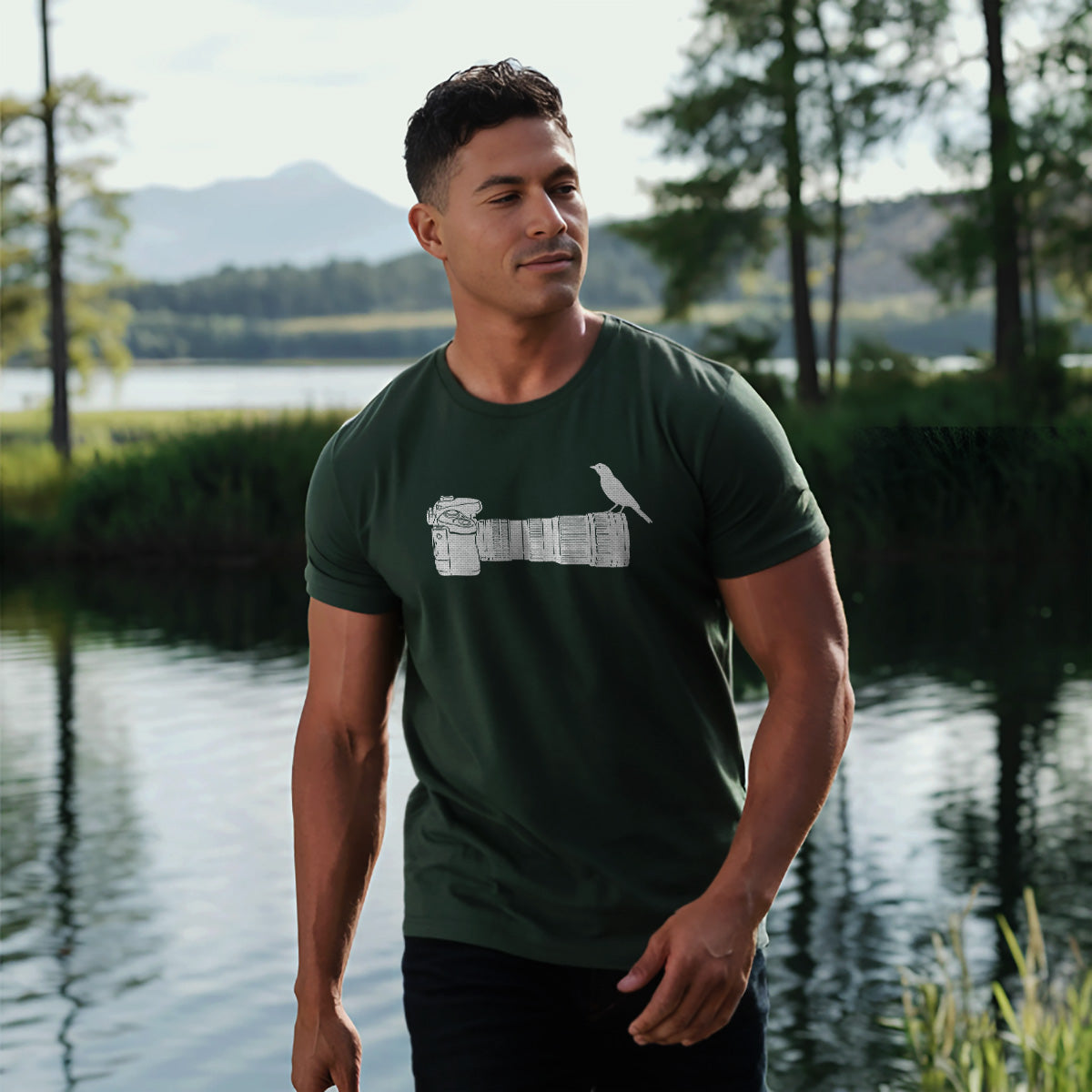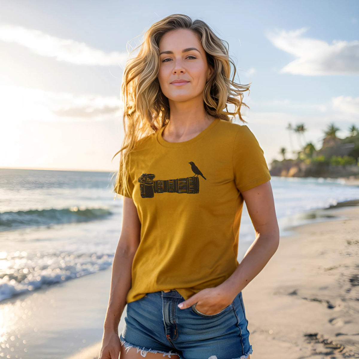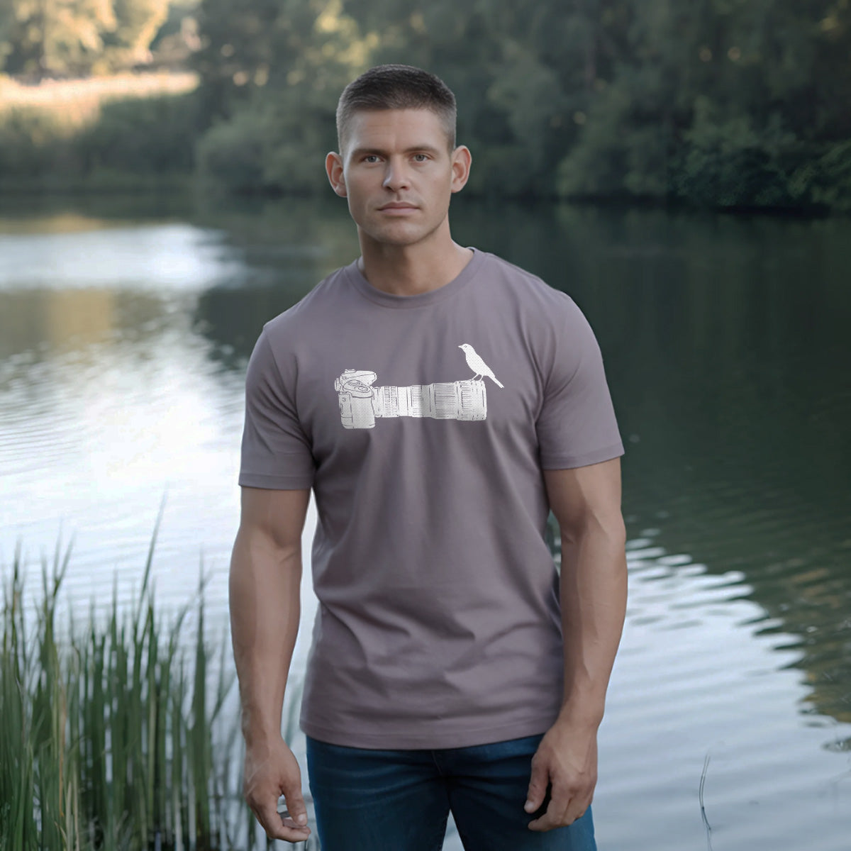 Wildlife Bird Perched On Camera Lens Adult Cotton Tee T-Shirt