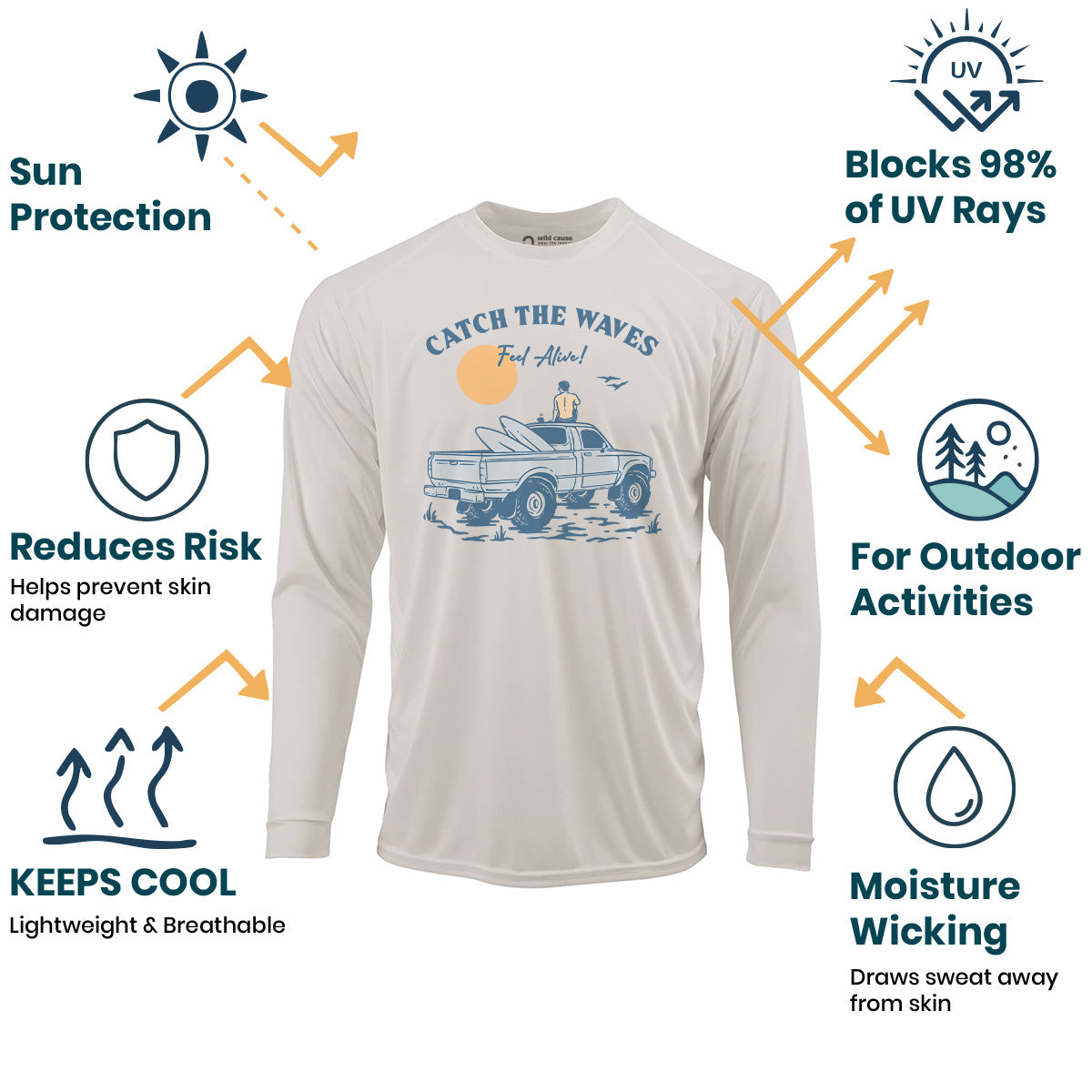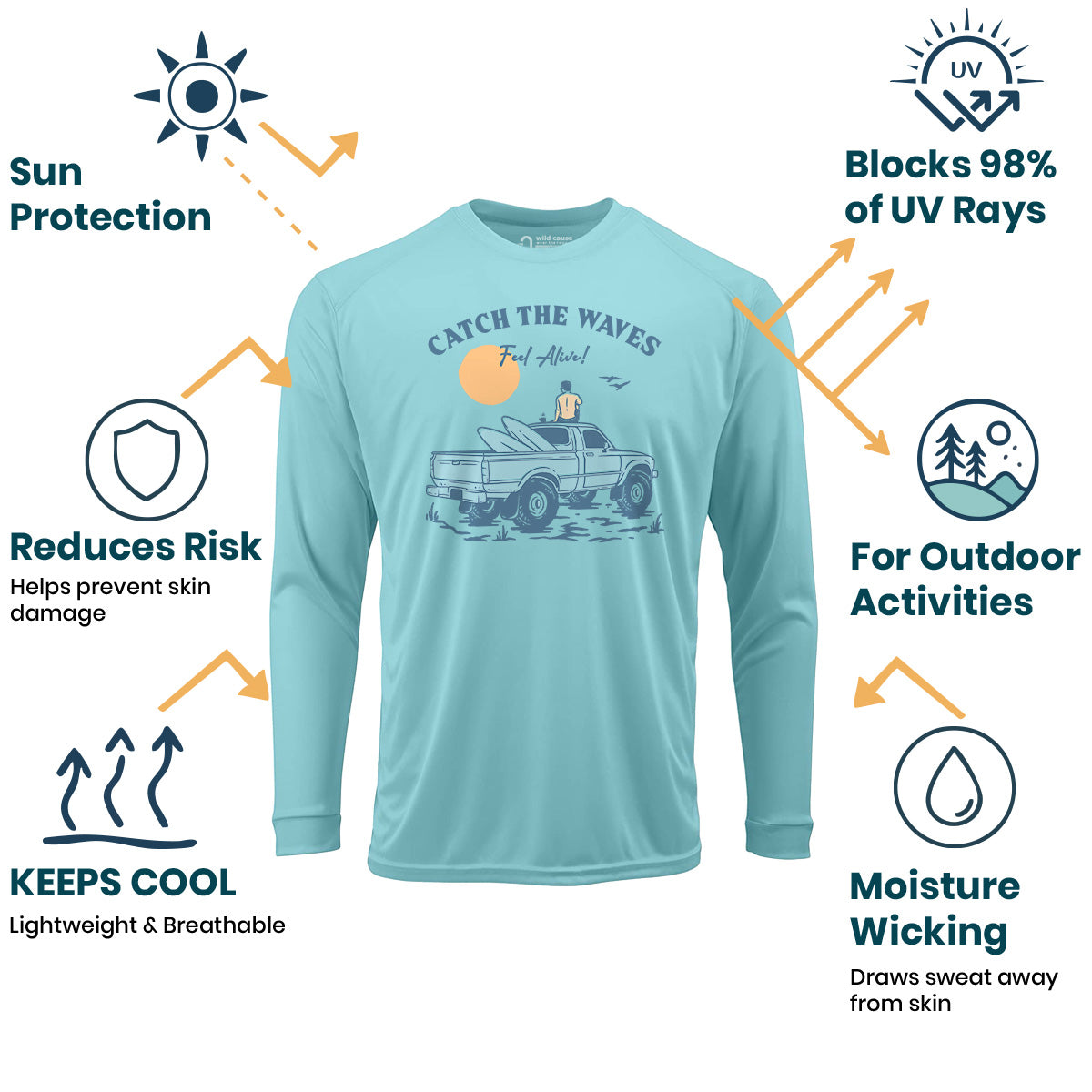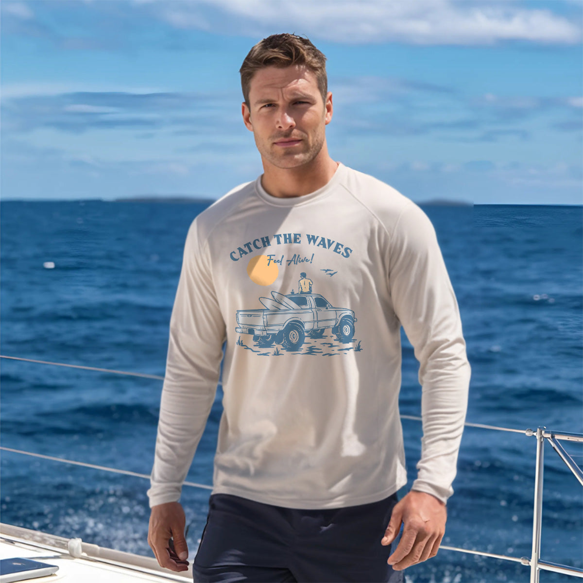 Catch the waves, feel alive and free in our Sun Protection UV Performance Shirt UPF 50+. Surfing the ocean waves has never been better with this Catch the Waves Ride shirt. Best days for surfing await with these Catch the Waves Vibes. The waves are calling me to wear this!