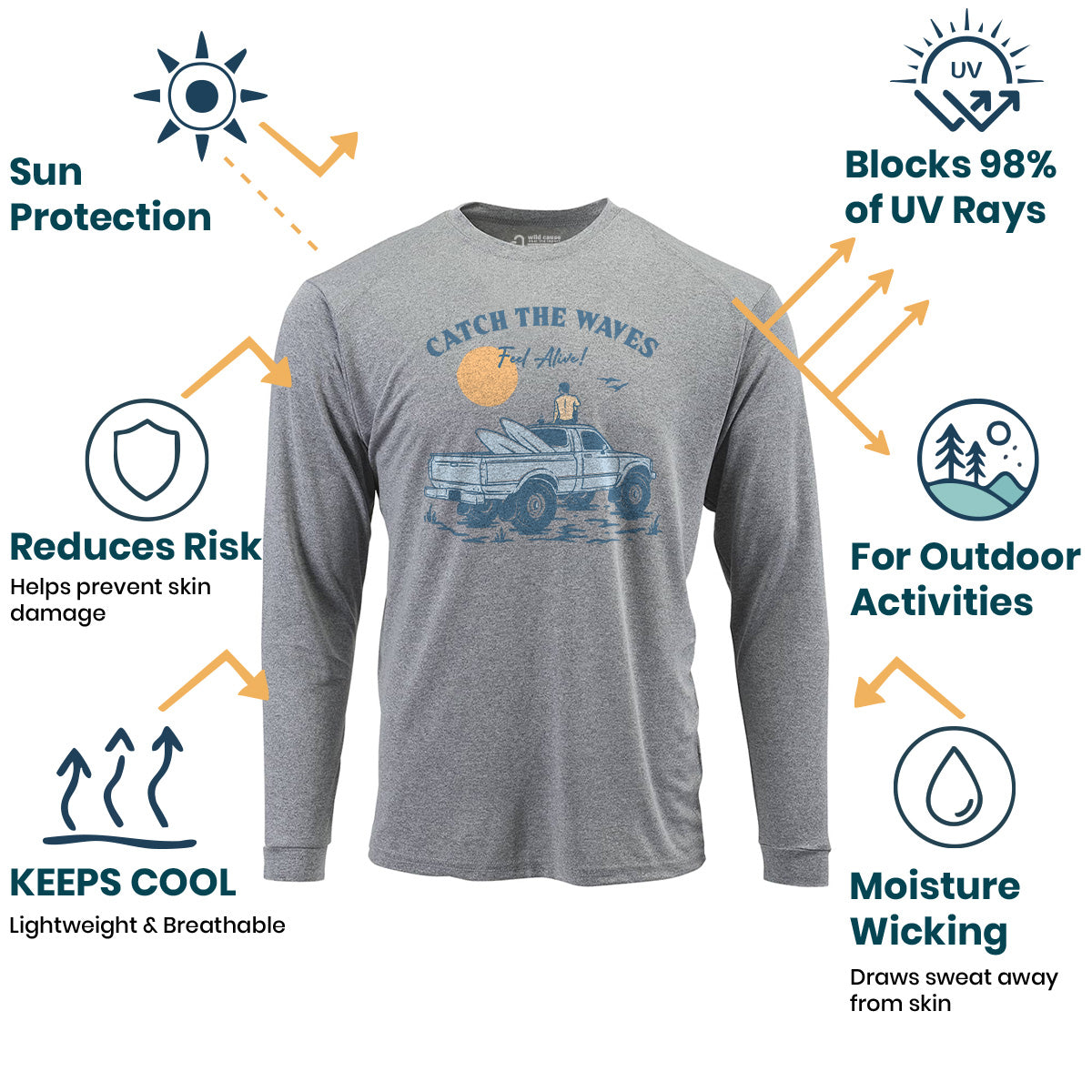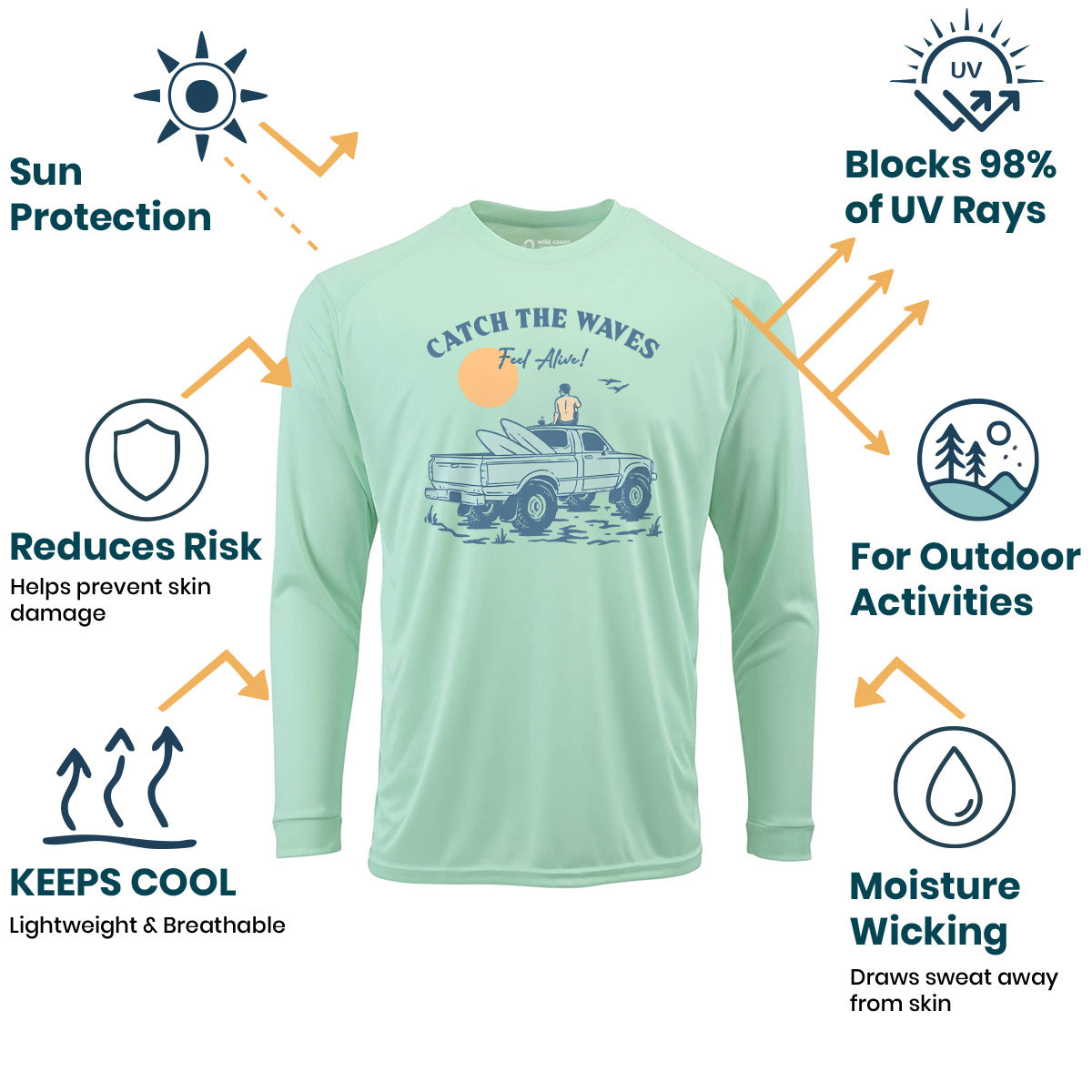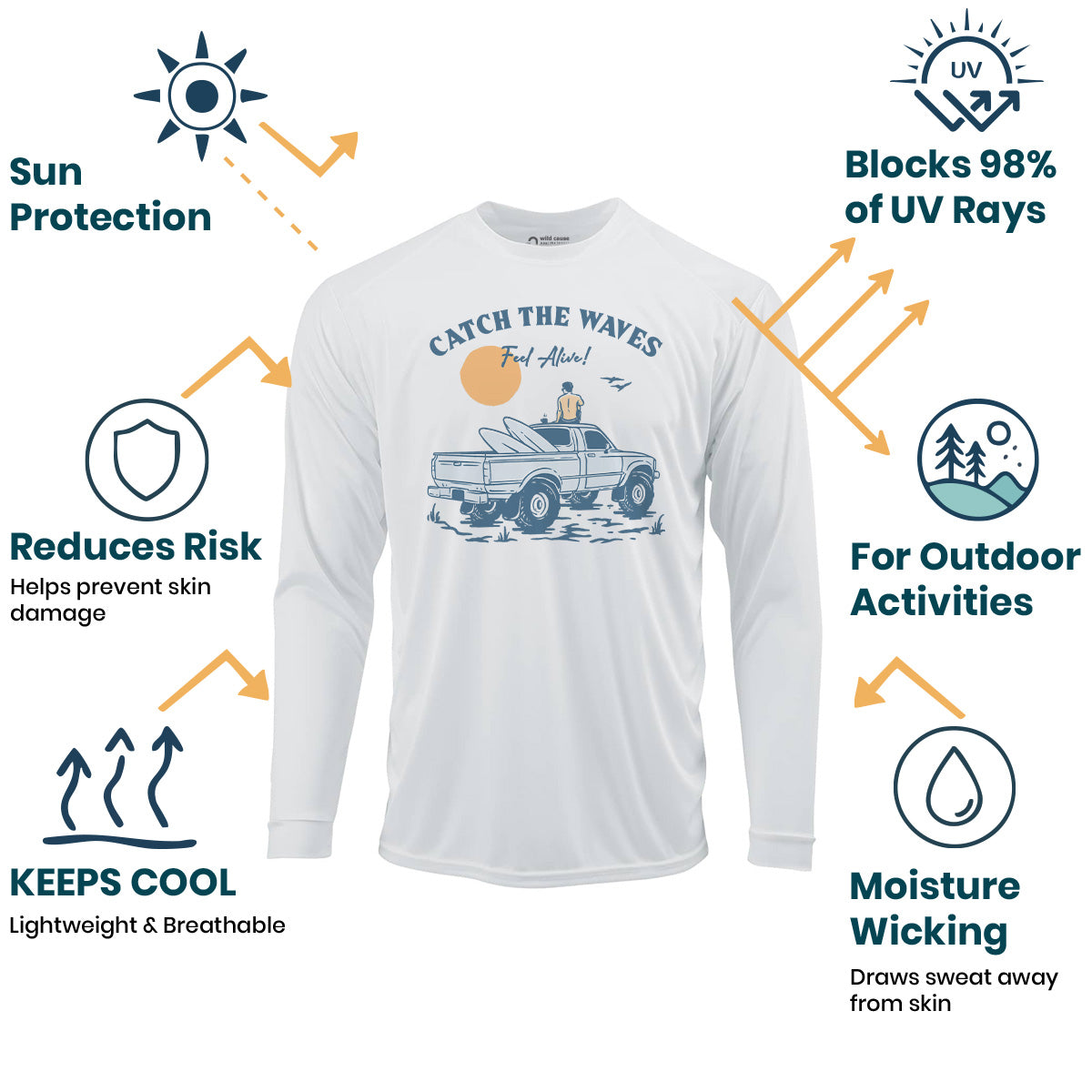 Catch the waves, feel alive and free in our Sun Protection UV Performance Shirt UPF 50+. Surfing the ocean waves has never been better with this Catch the Waves Ride shirt. Best days for surfing await with these Catch the Waves Vibes. The waves are calling me to wear this!