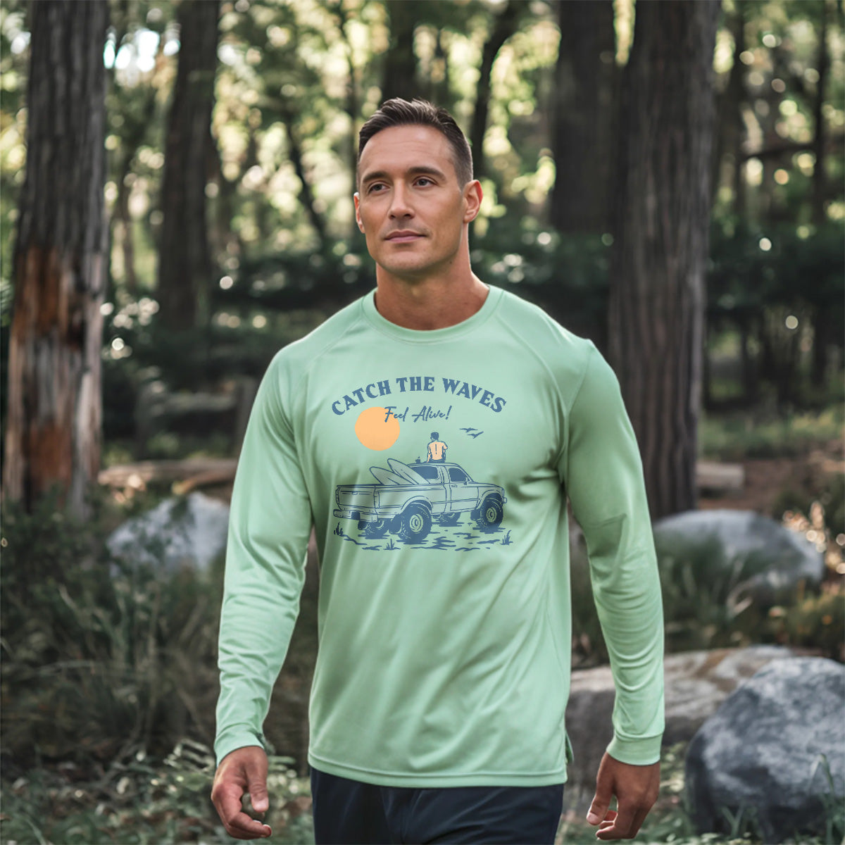Catch The Waves To Feel Alive In Water Sun Protection UV Performance Shirt UPF 50+