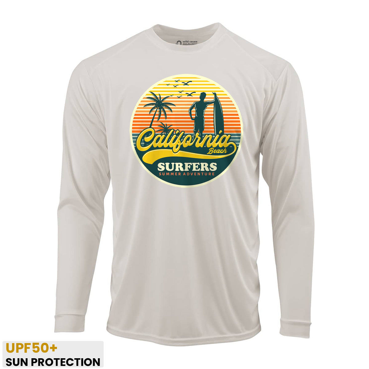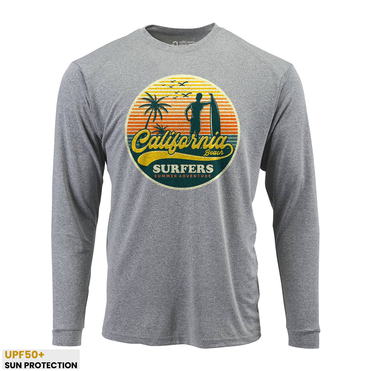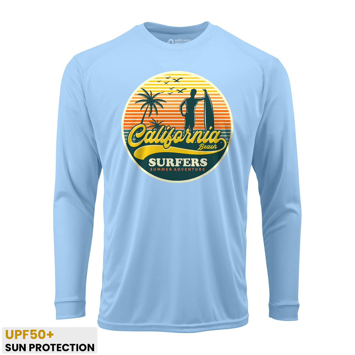 California surfers enjoying summer fun Sun Protection UV Performance Shirt UPF 50+ embodies the essence of summer surf adventure. This shirt offers California surfer vibes with its high UPF rating, perfect for surf season in California. Catch waves with style in this must-have shirt.