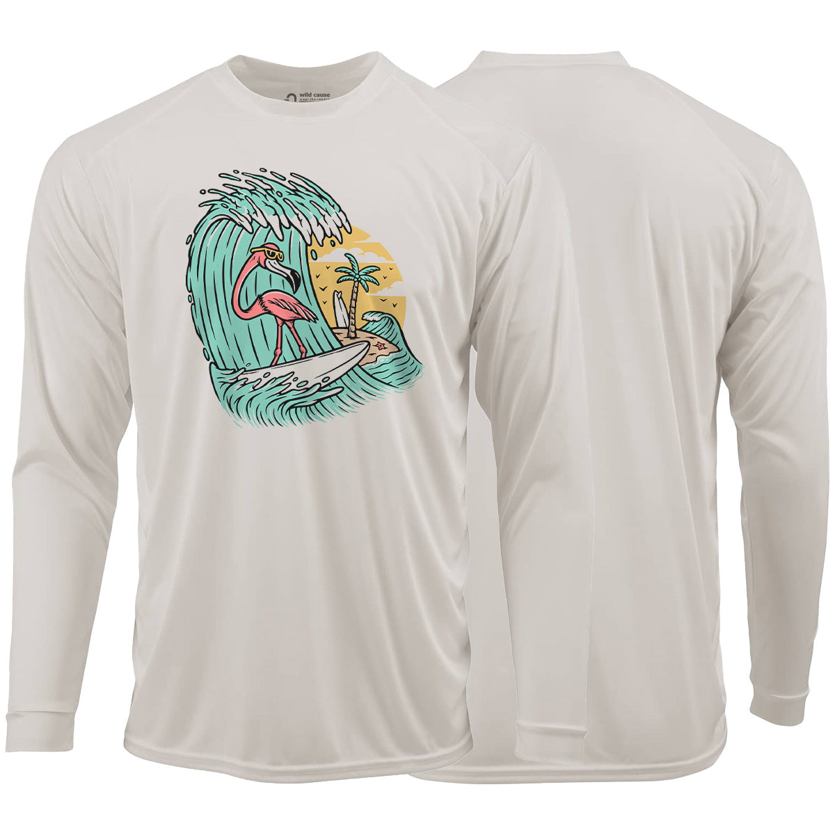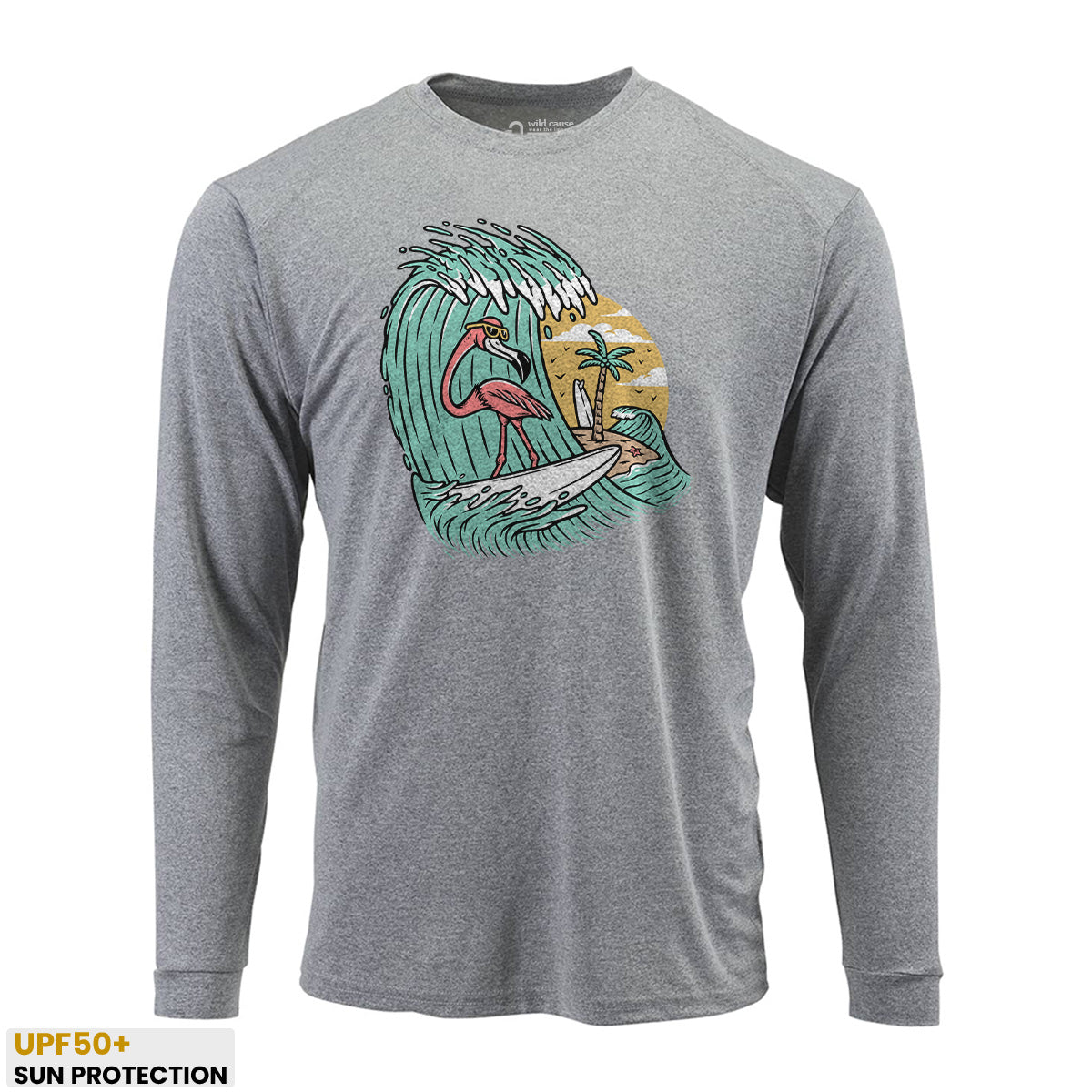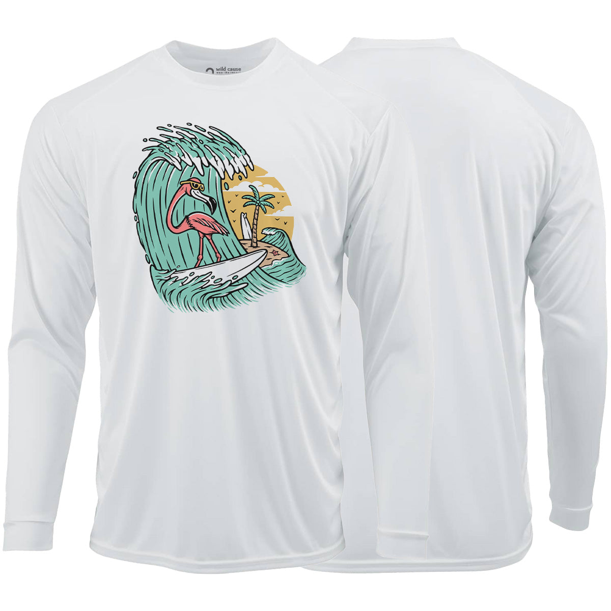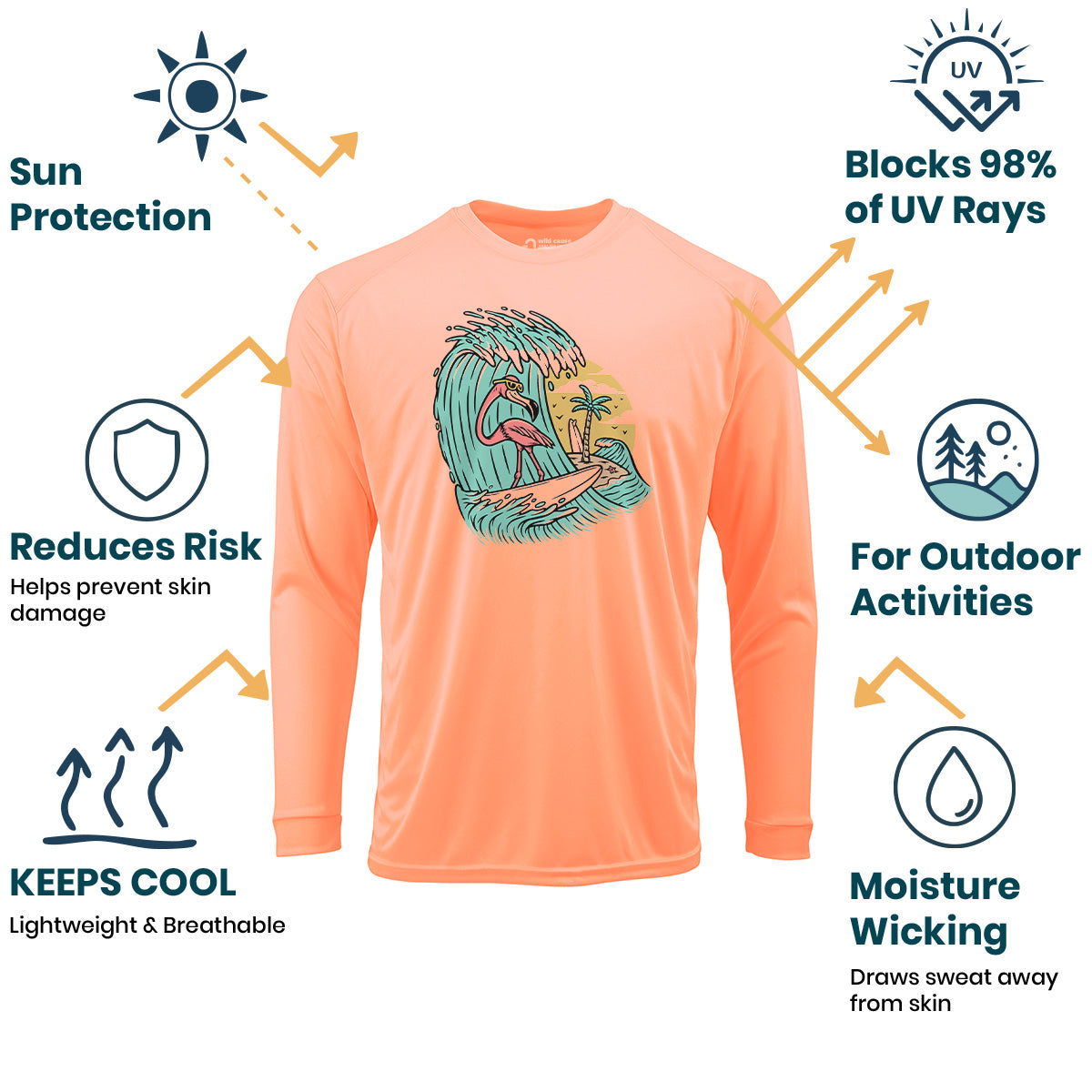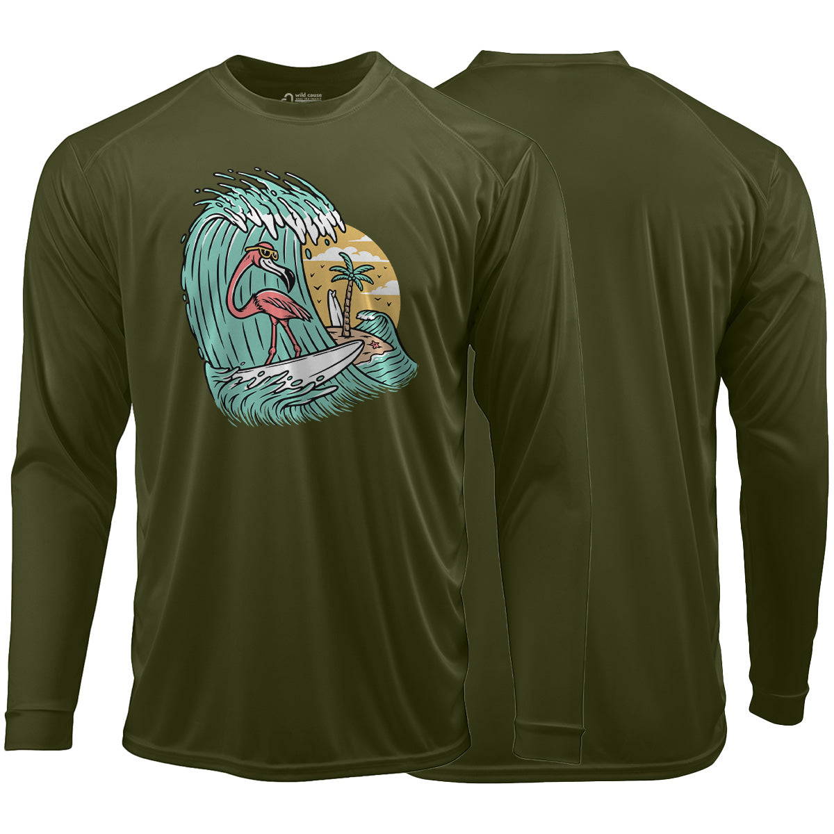 The Cute flamingo surfing the sea waves. Sun Protection UV Performance Shirt UPF 50+ exudes Flamingo Riding Ocean Waves vibes. Stay stylish and protected on warm surf days in paradise with this fun design. Flamingo knows how to surf!