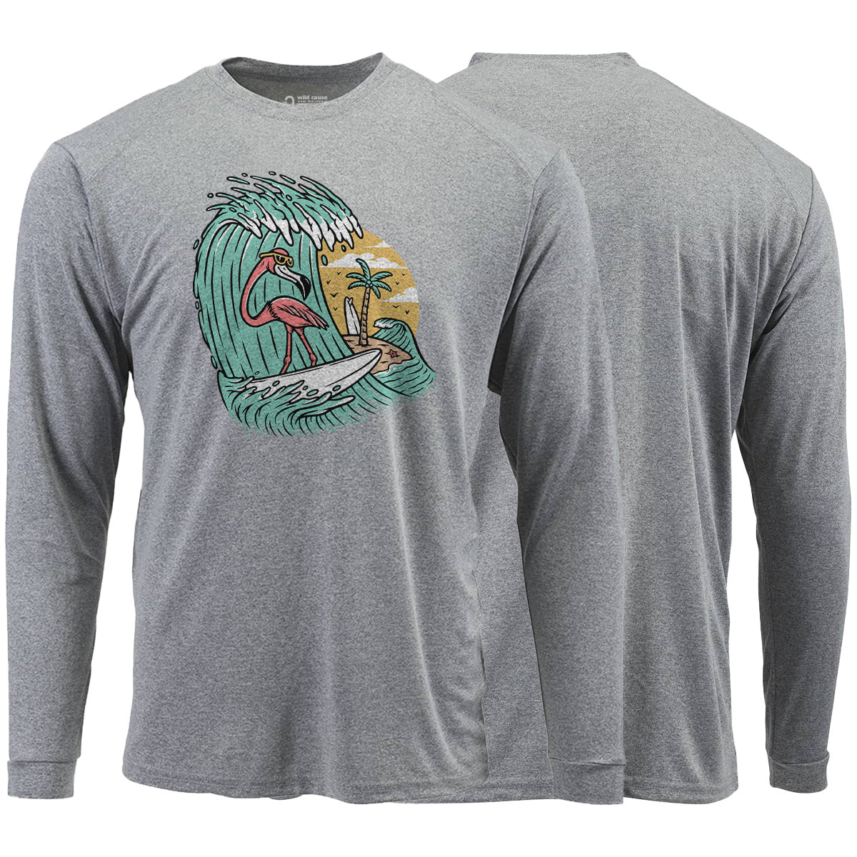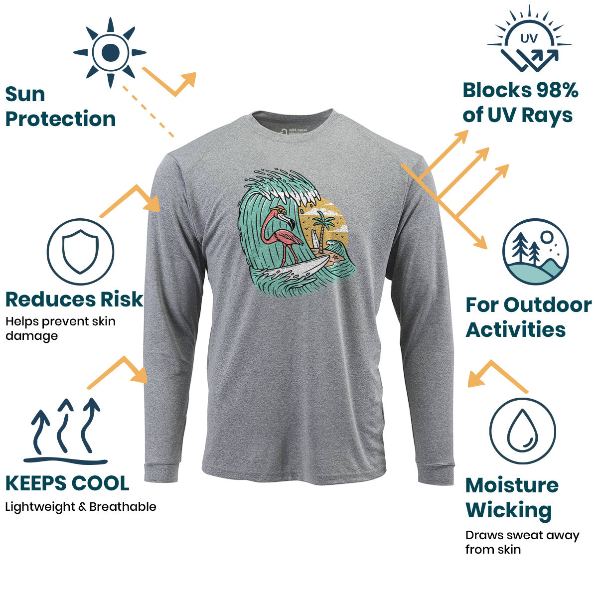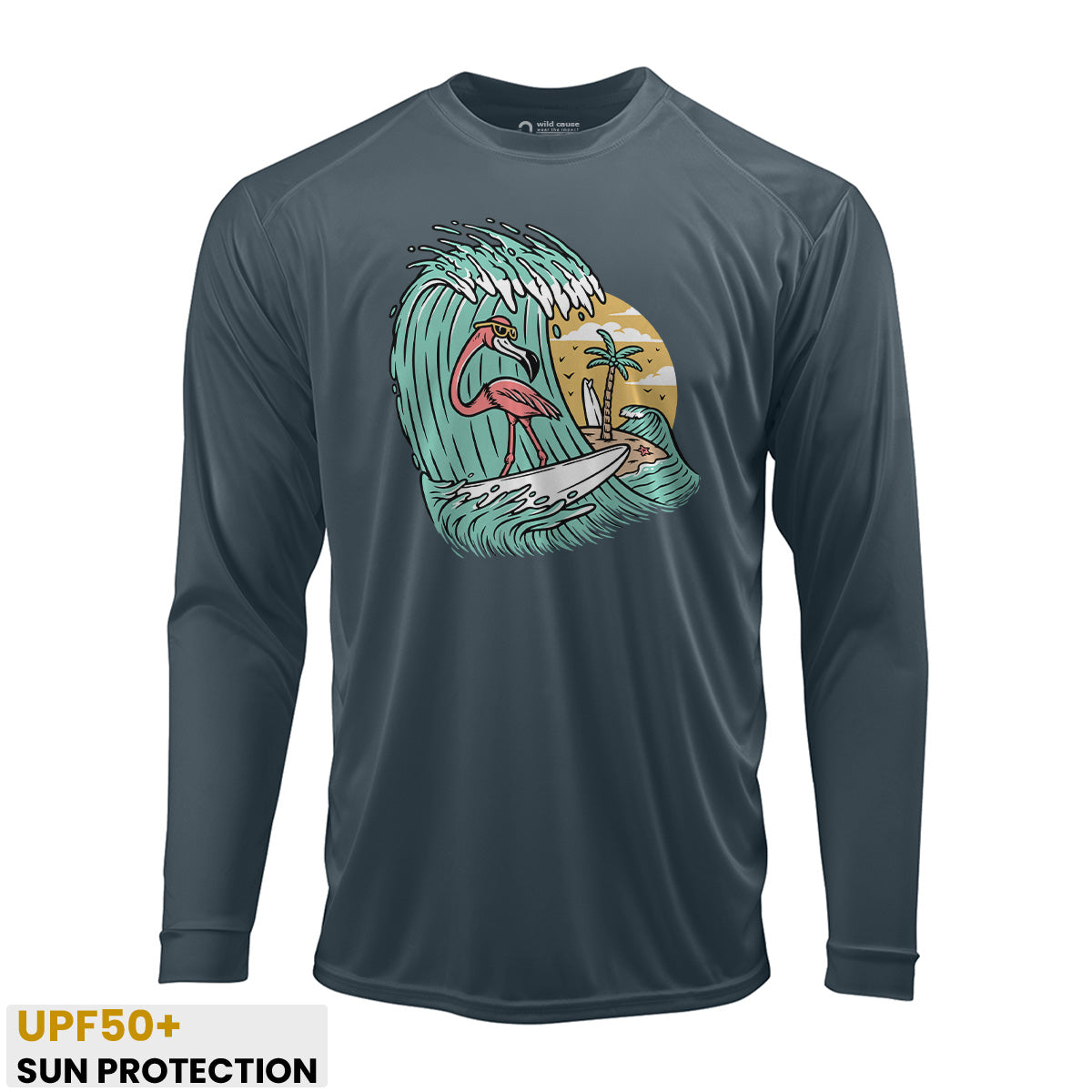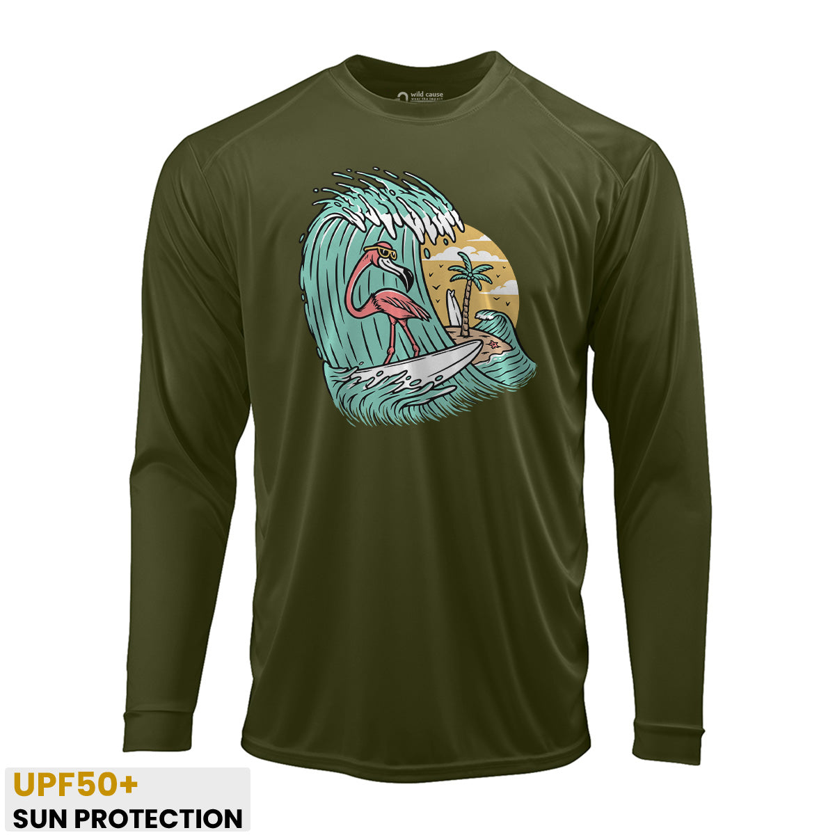 The Cute flamingo surfing the sea waves. Sun Protection UV Performance Shirt UPF 50+ exudes Flamingo Riding Ocean Waves vibes. Stay stylish and protected on warm surf days in paradise with this fun design. Flamingo knows how to surf!