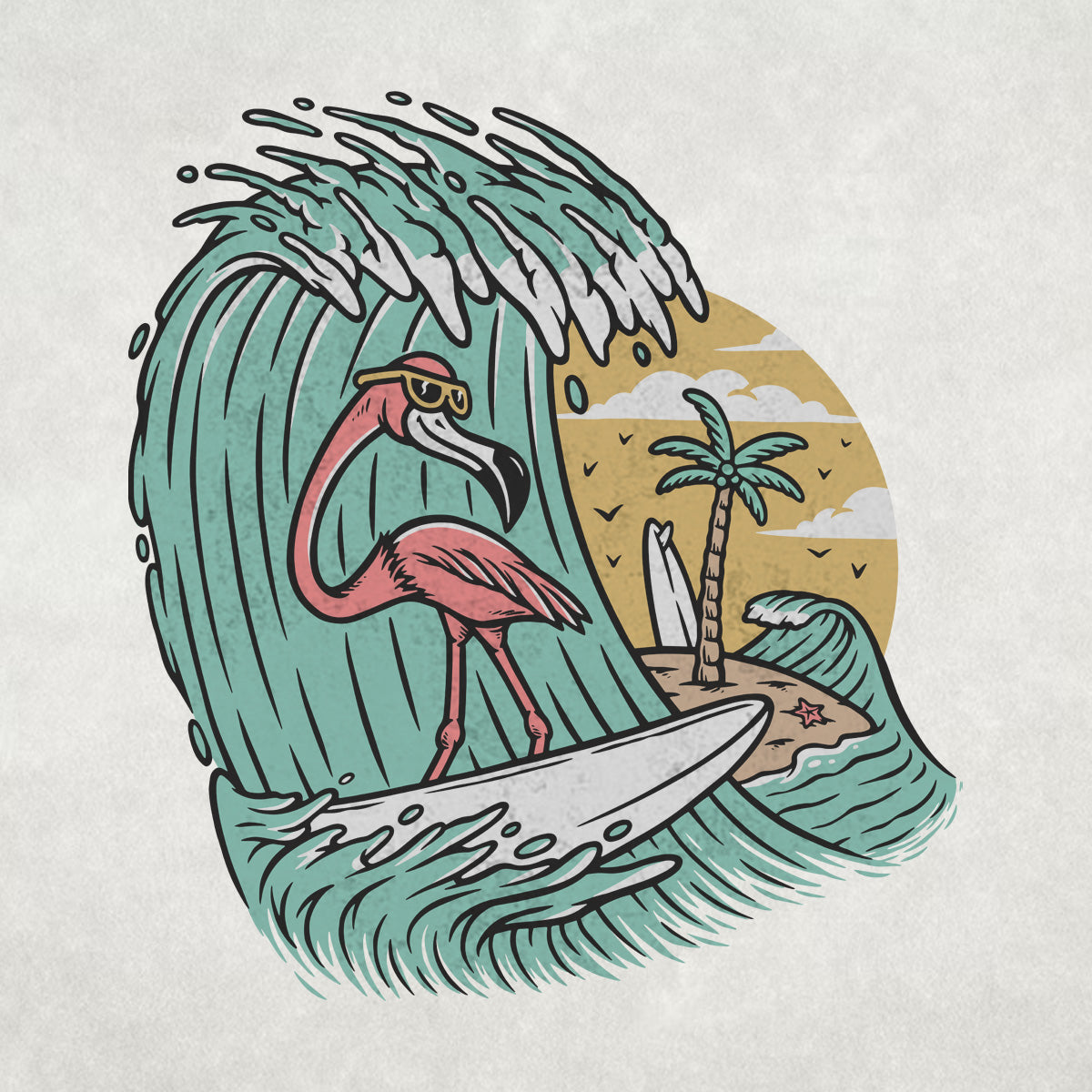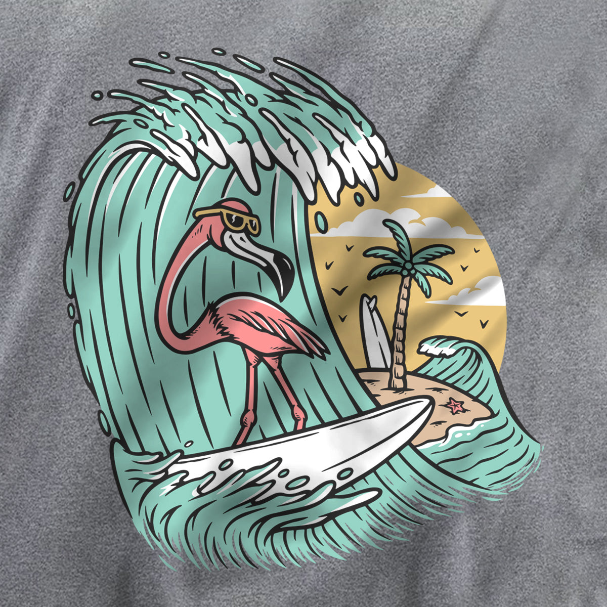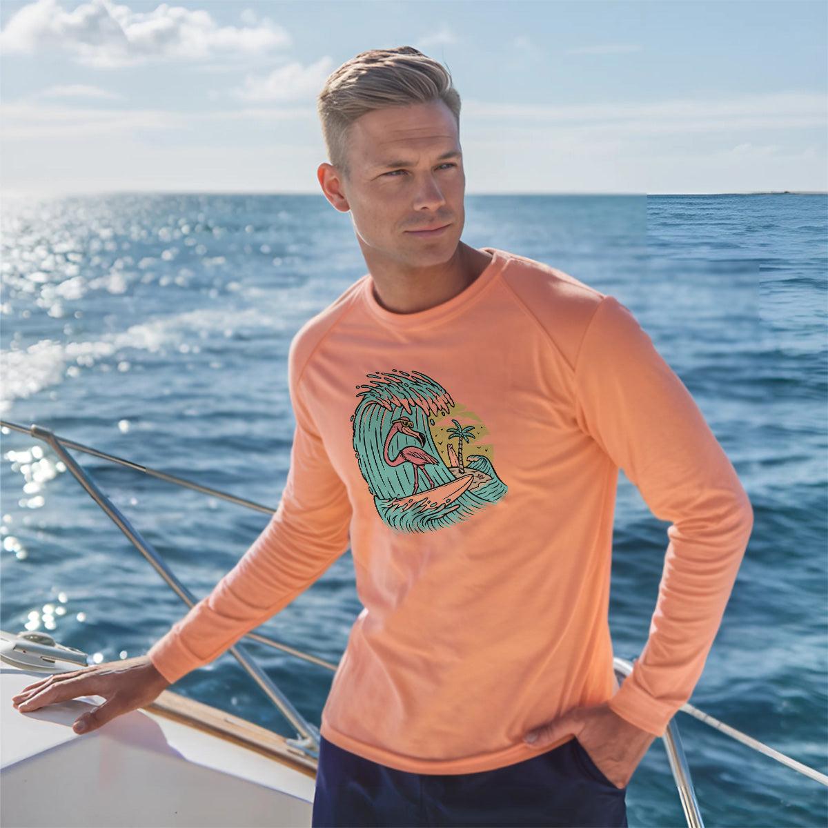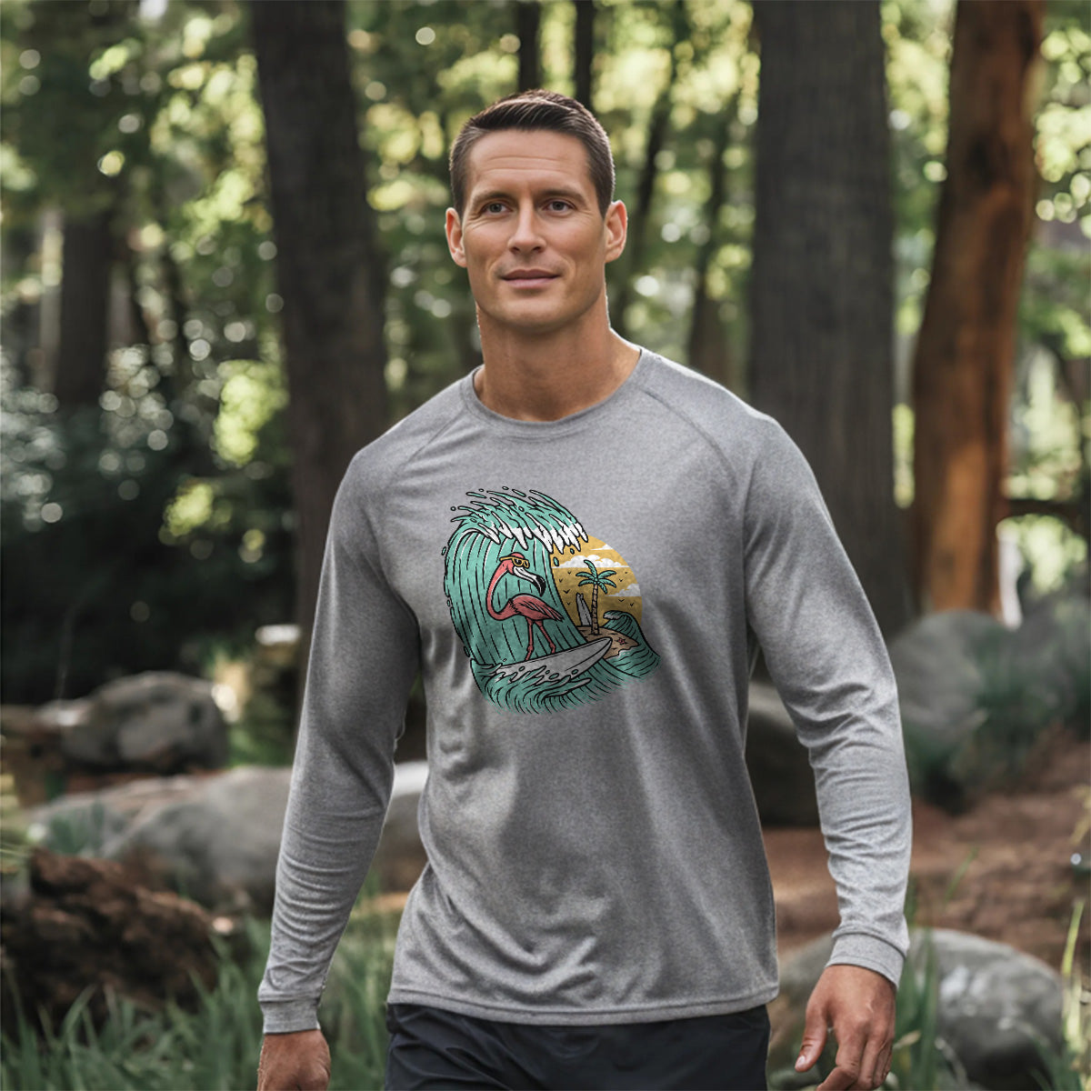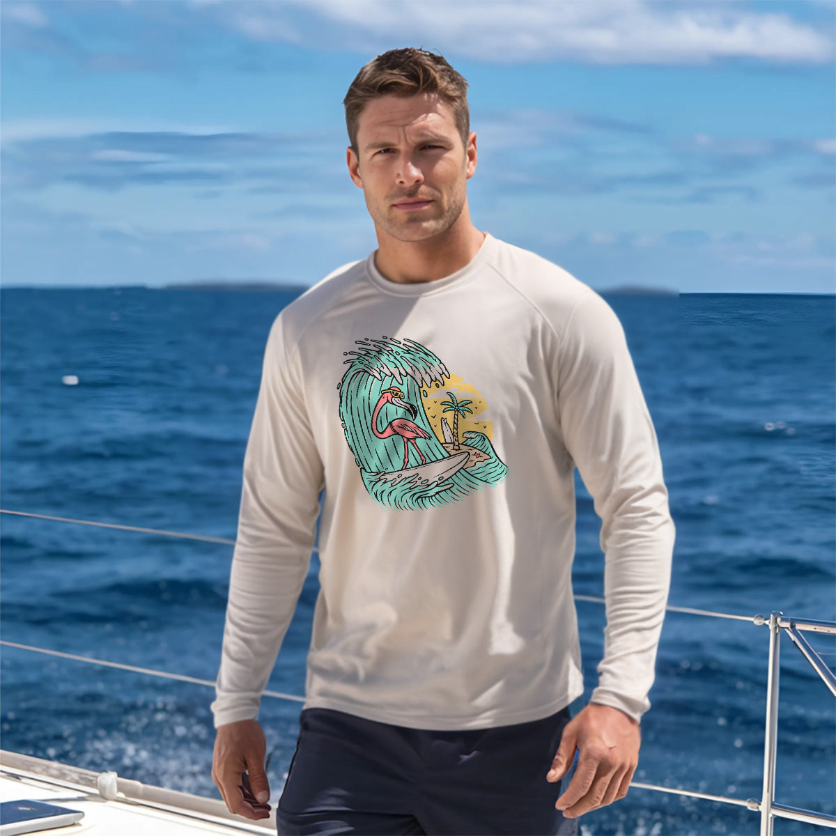 The Cute flamingo surfing the sea waves. Sun Protection UV Performance Shirt UPF 50+ exudes Flamingo Riding Ocean Waves vibes. Stay stylish and protected on warm surf days in paradise with this fun design. Flamingo knows how to surf!