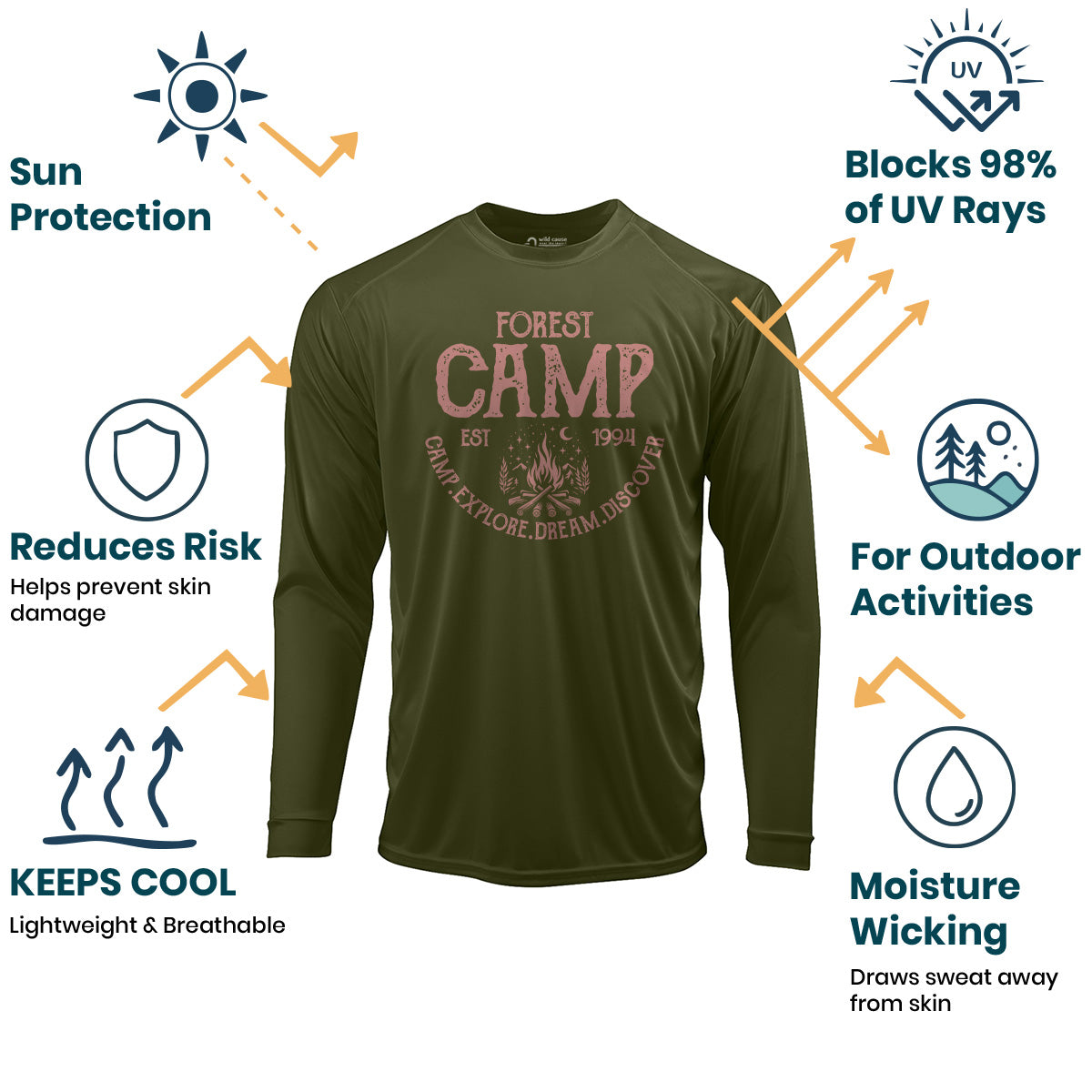 Explore Forest Camp Outdoor Adventure Sun Protection UV Performance Shirt UPF 50+