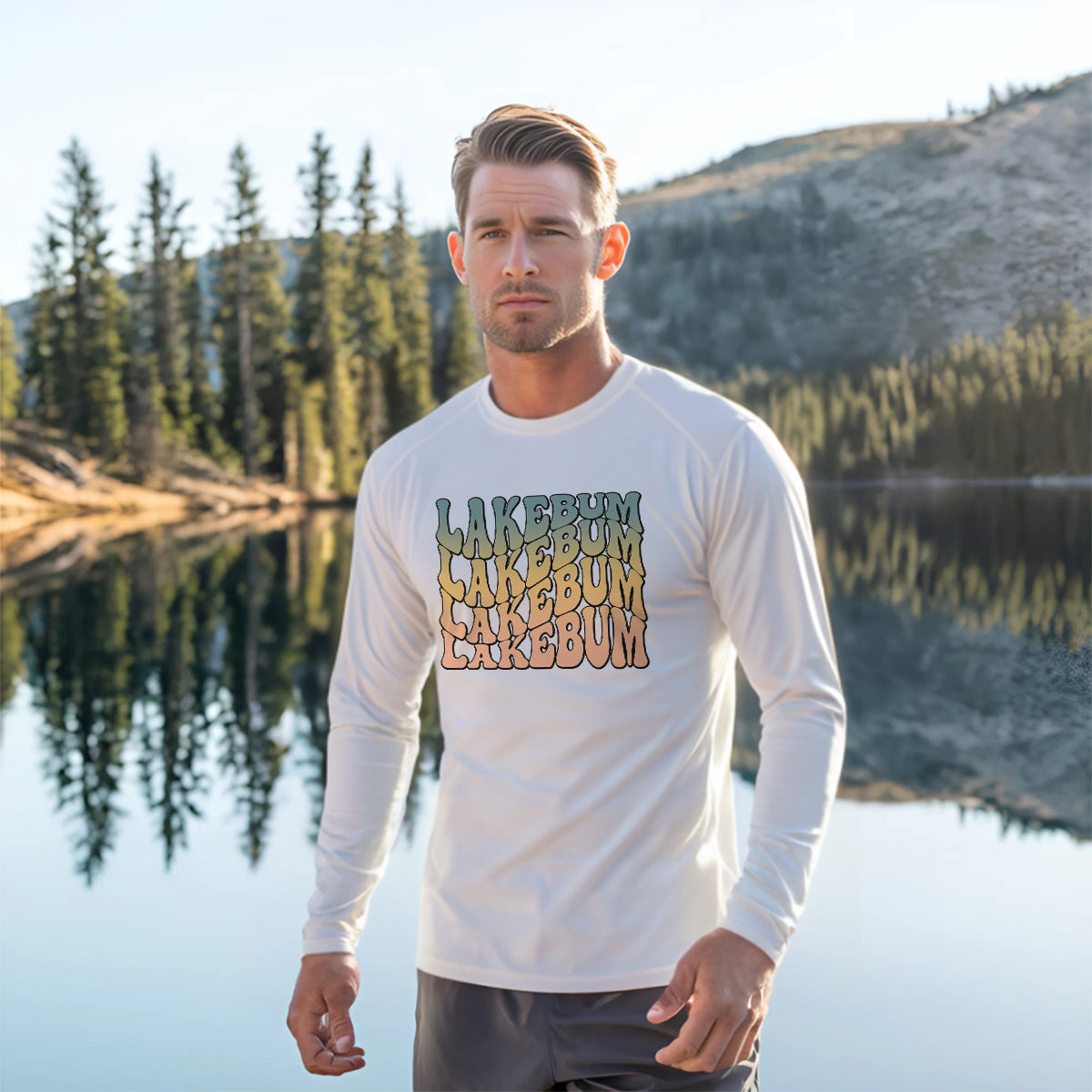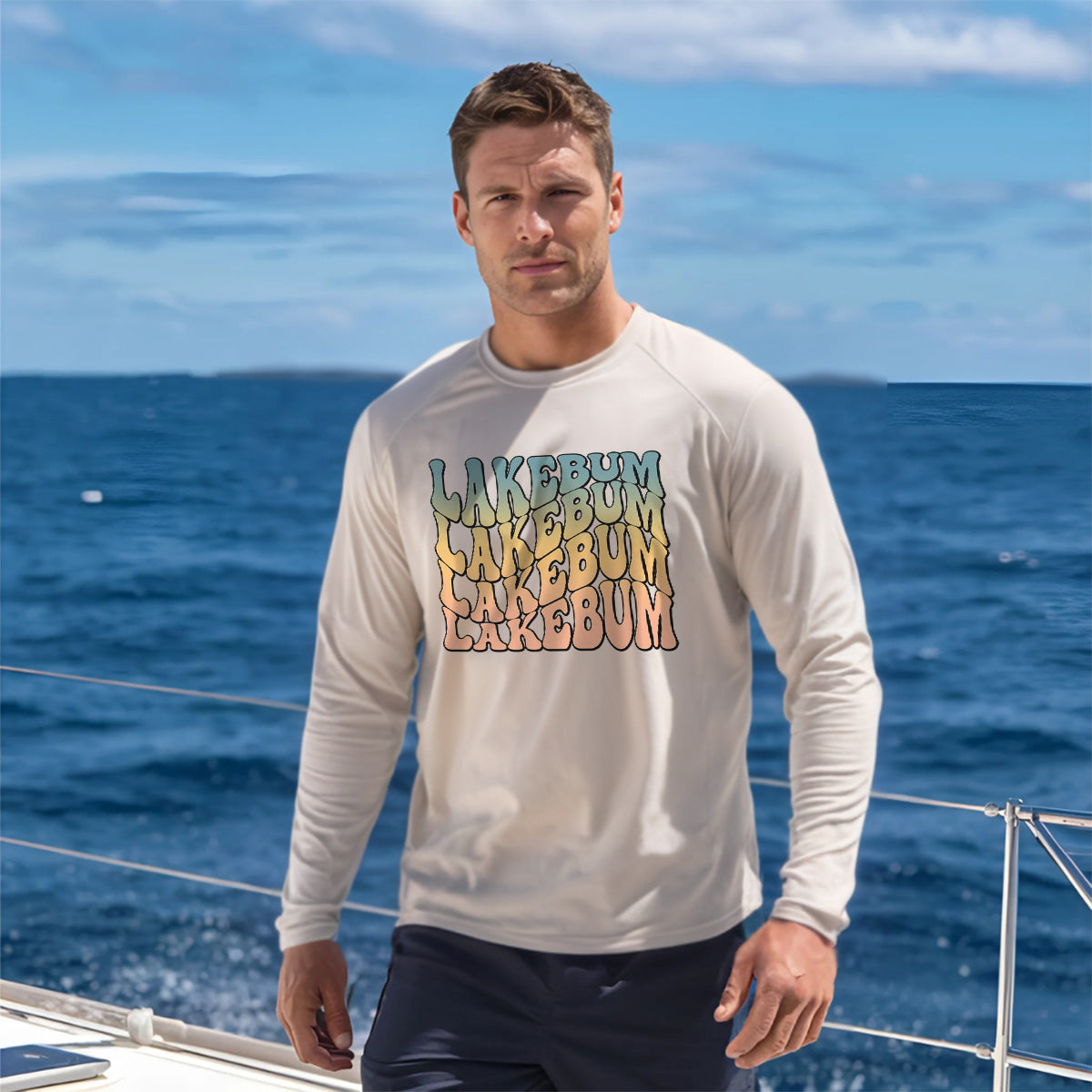 The Lakebum enjoying summer outdoor adventure Sun Protection UV Performance Shirt UPF 50+ exudes retro lake vibes and vintage lake bum fun. Stay stylish and protected with this shirt, perfect for lake bum lifestyle enthusiasts. Get your hands on this piece of retro vibes for lake lovers and vintage lake bum vibes today!