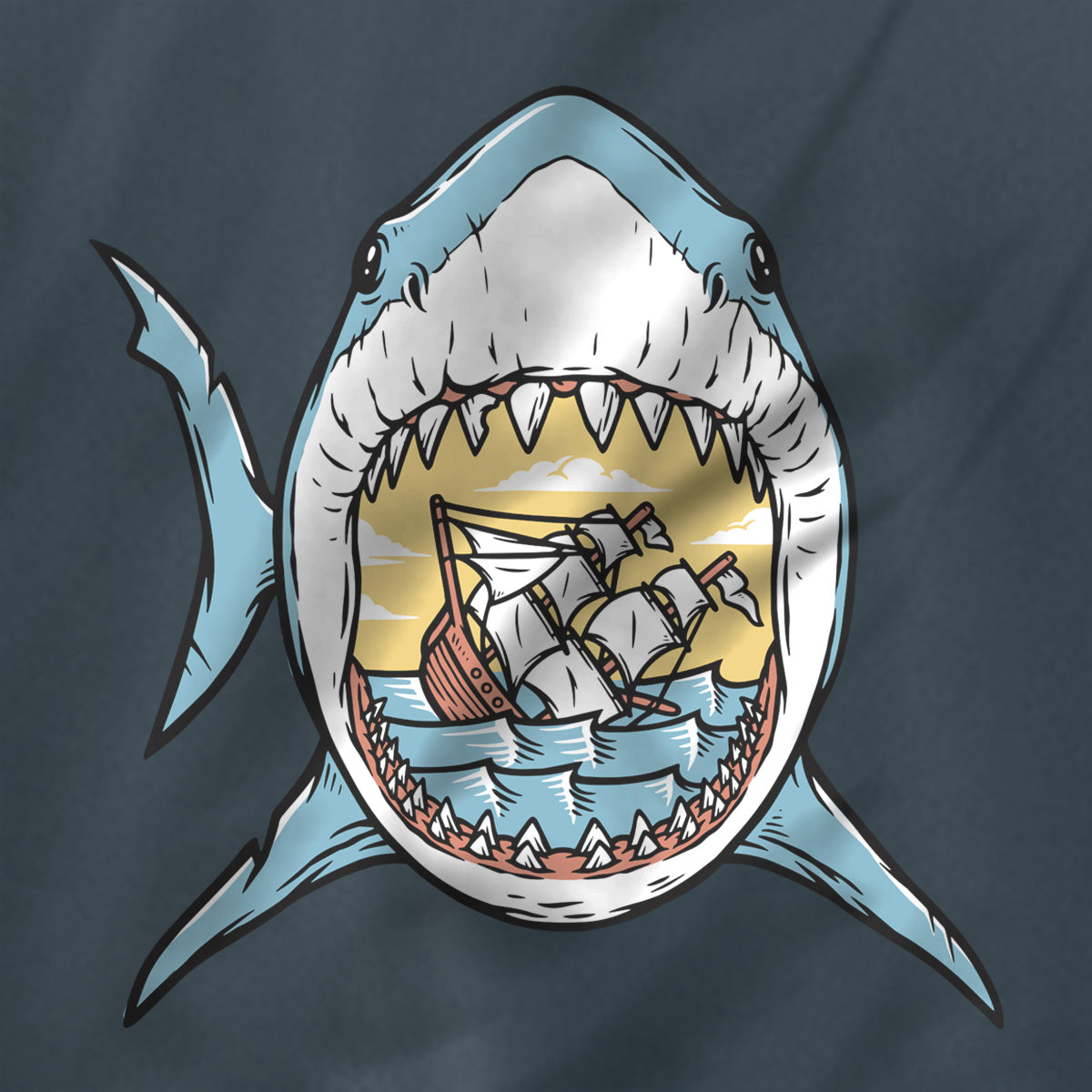 The Sailing adventure with sharks nearby Sun Protection UV Performance Shirt UPF 50+ ensures you sail through danger in style. Featuring a ship sailing through danger, shark attack on ship, ship inside shark jaw, deep sea adventure, and trapped in shark’s bite, this shirt is perfect for those seeking an adrenaline rush.