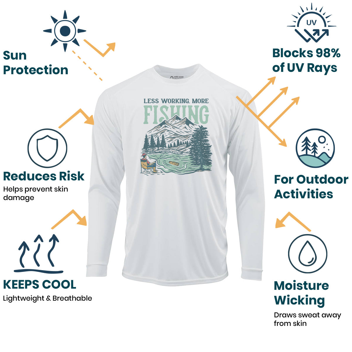 Work Less Fish More Adventure Working Fun Sun Protection UV Performance Shirt UPF 50+