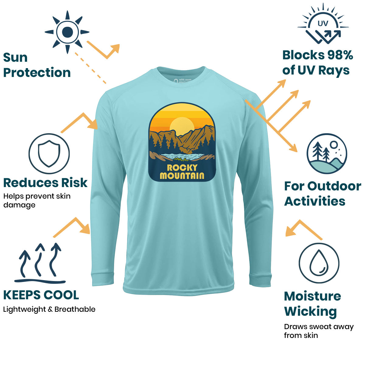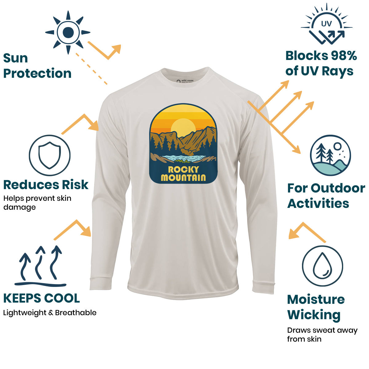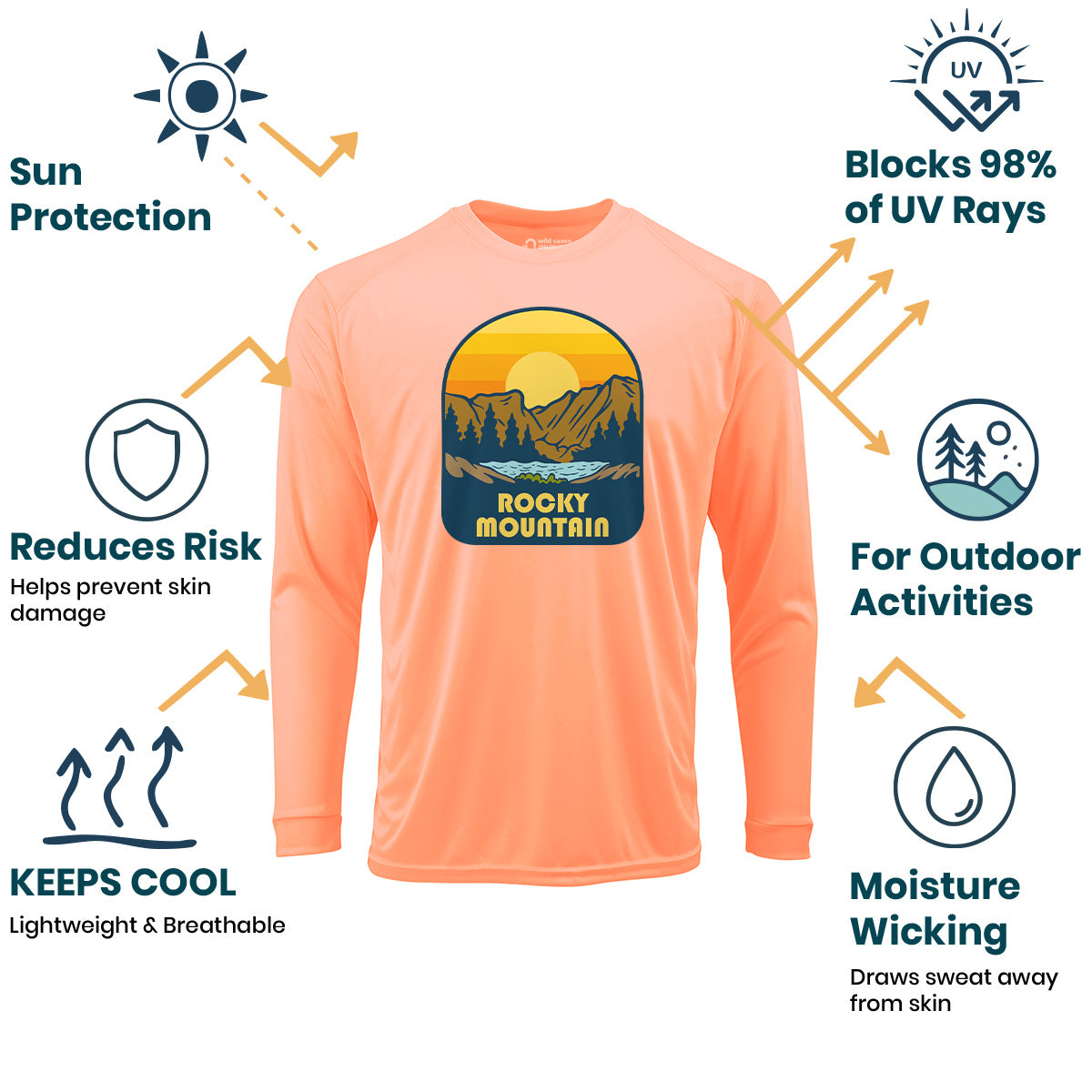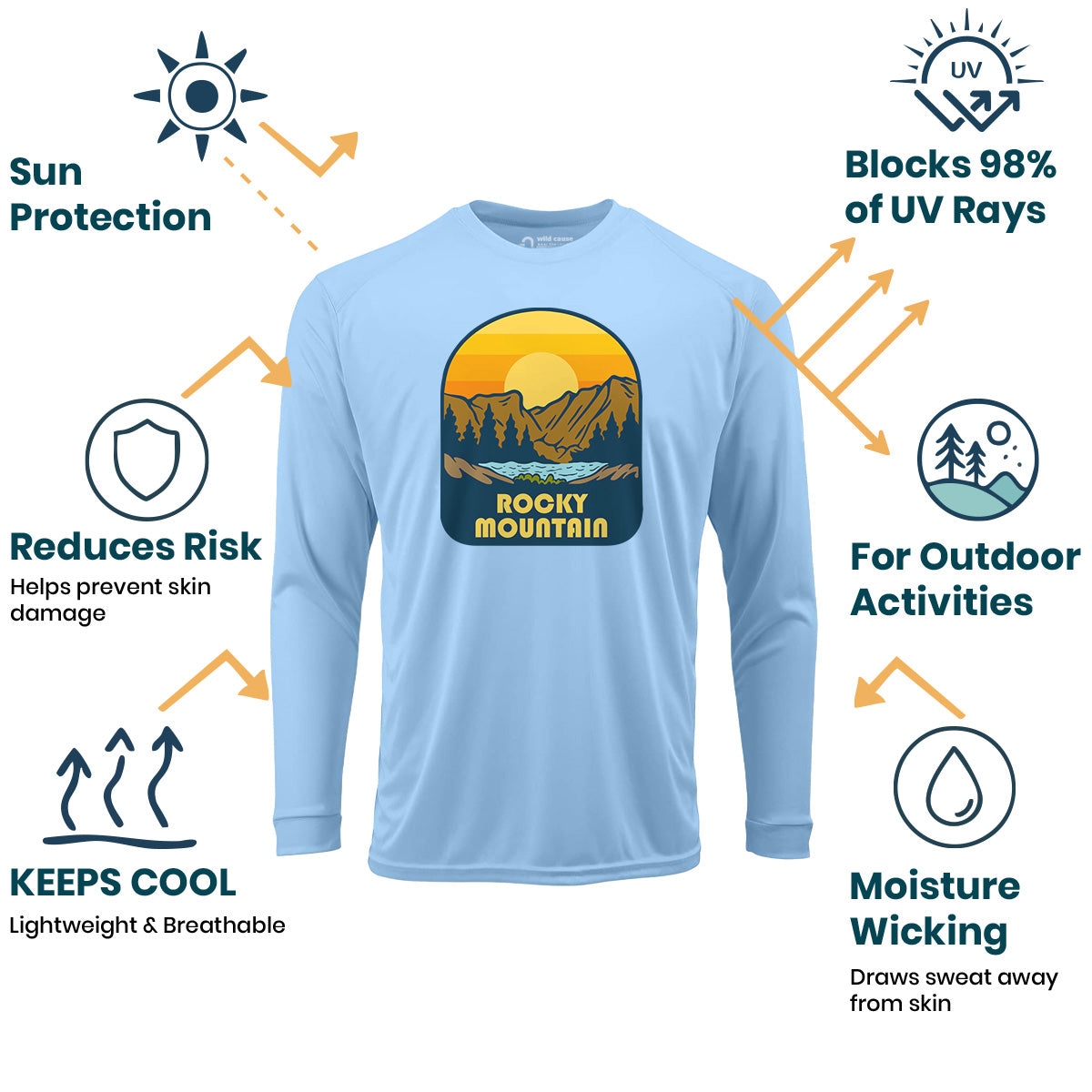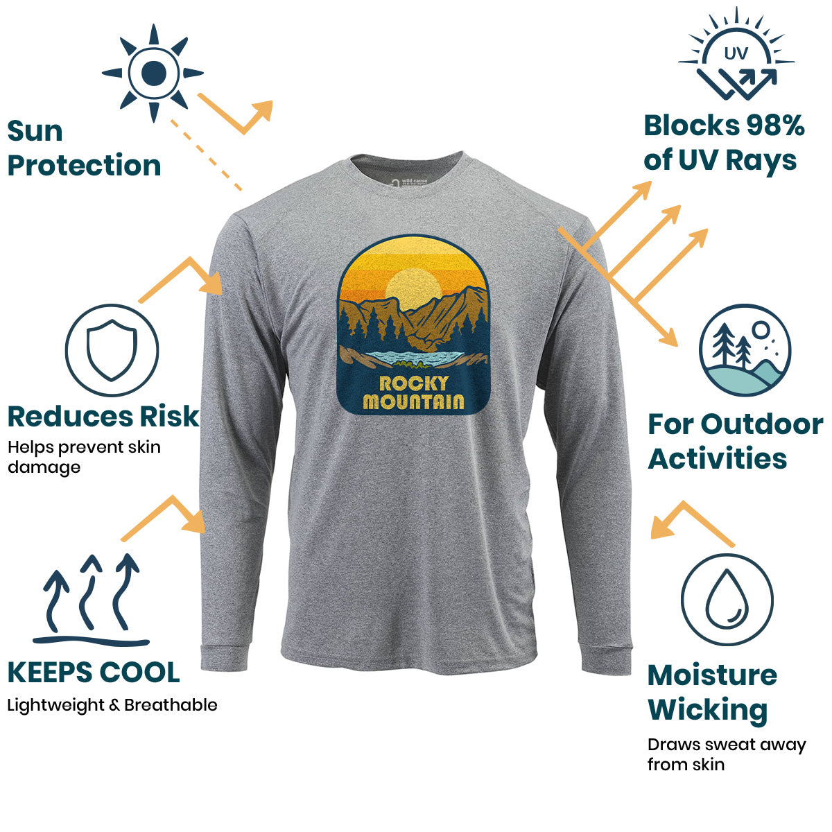 The Rocky Mountain Park Expedition Sun Protection UV Performance Shirt UPF 50+ is a must-have for Rocky Mountain hiking enthusiasts. Explore Rocky Mountains with confidence while trekking on outdoor Rocky adventures. Stay protected on Rocky National Park trails.