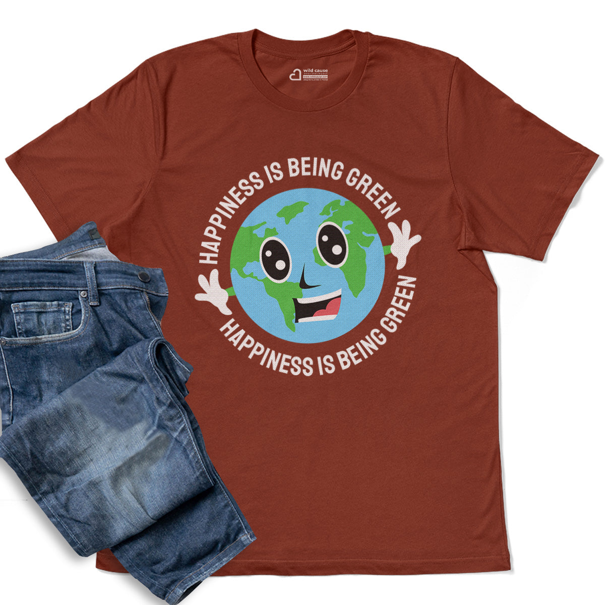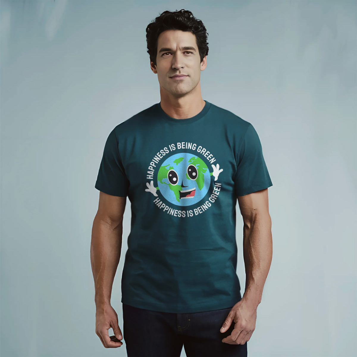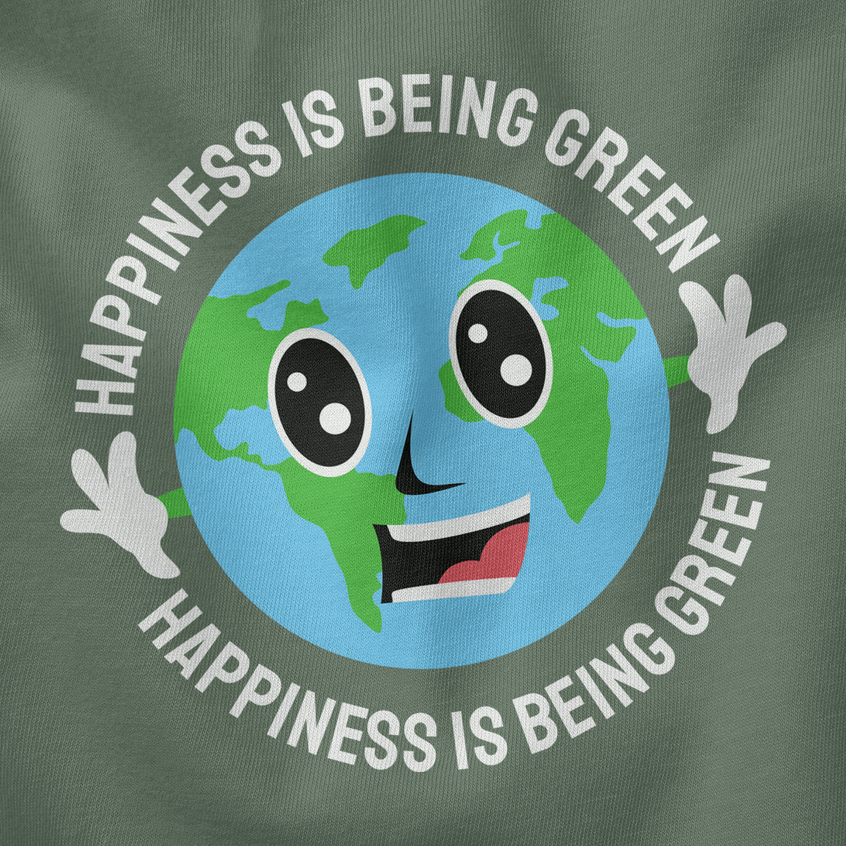 Happiness Is Being Green Smiling Earth Adult Cotton Tee T-Shirt