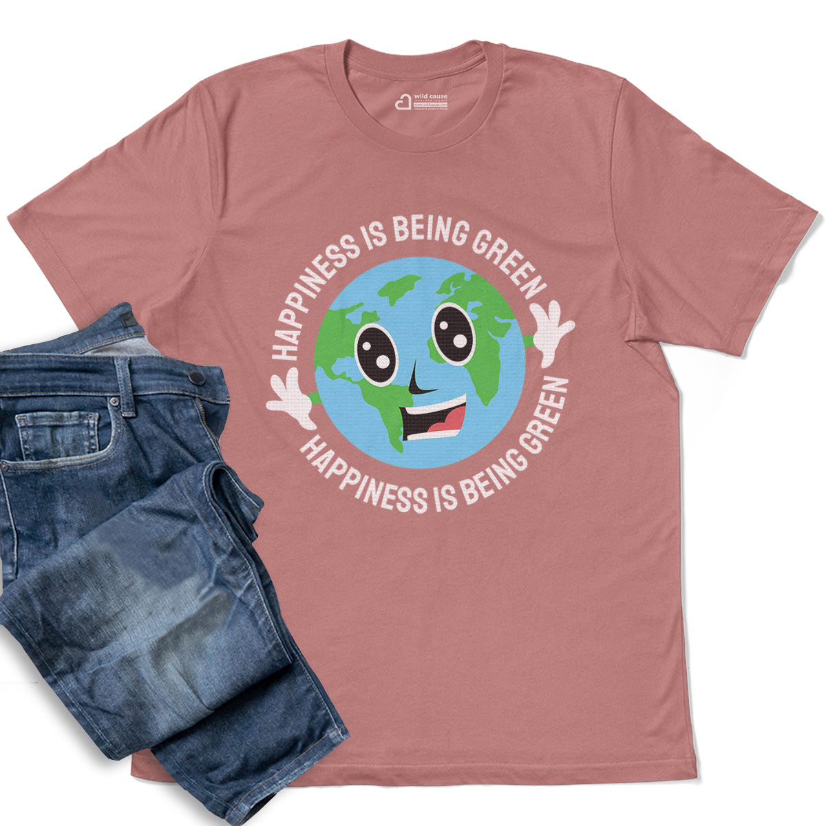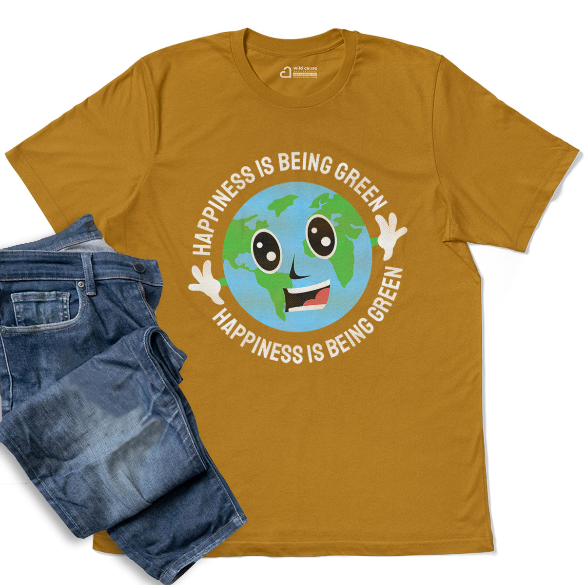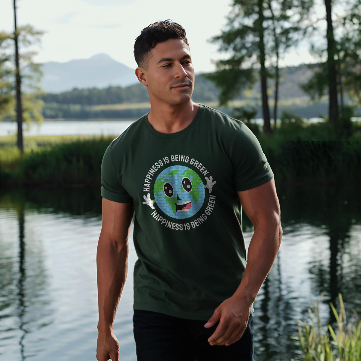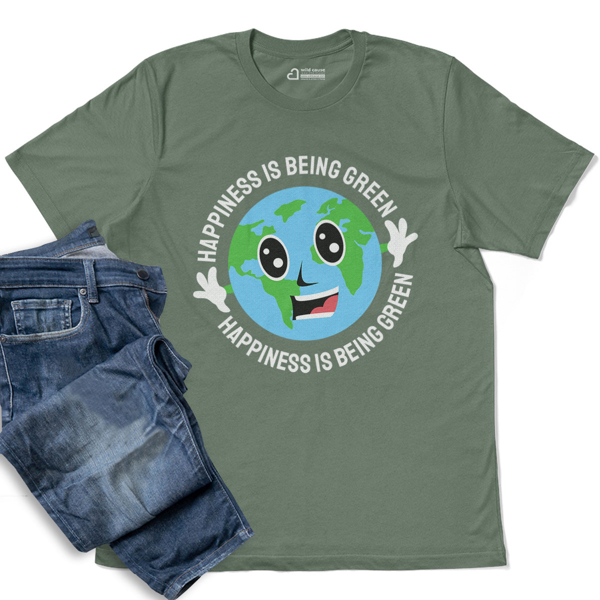 Happiness Is Being Green Smiling Earth Adult Cotton Tee T-Shirt