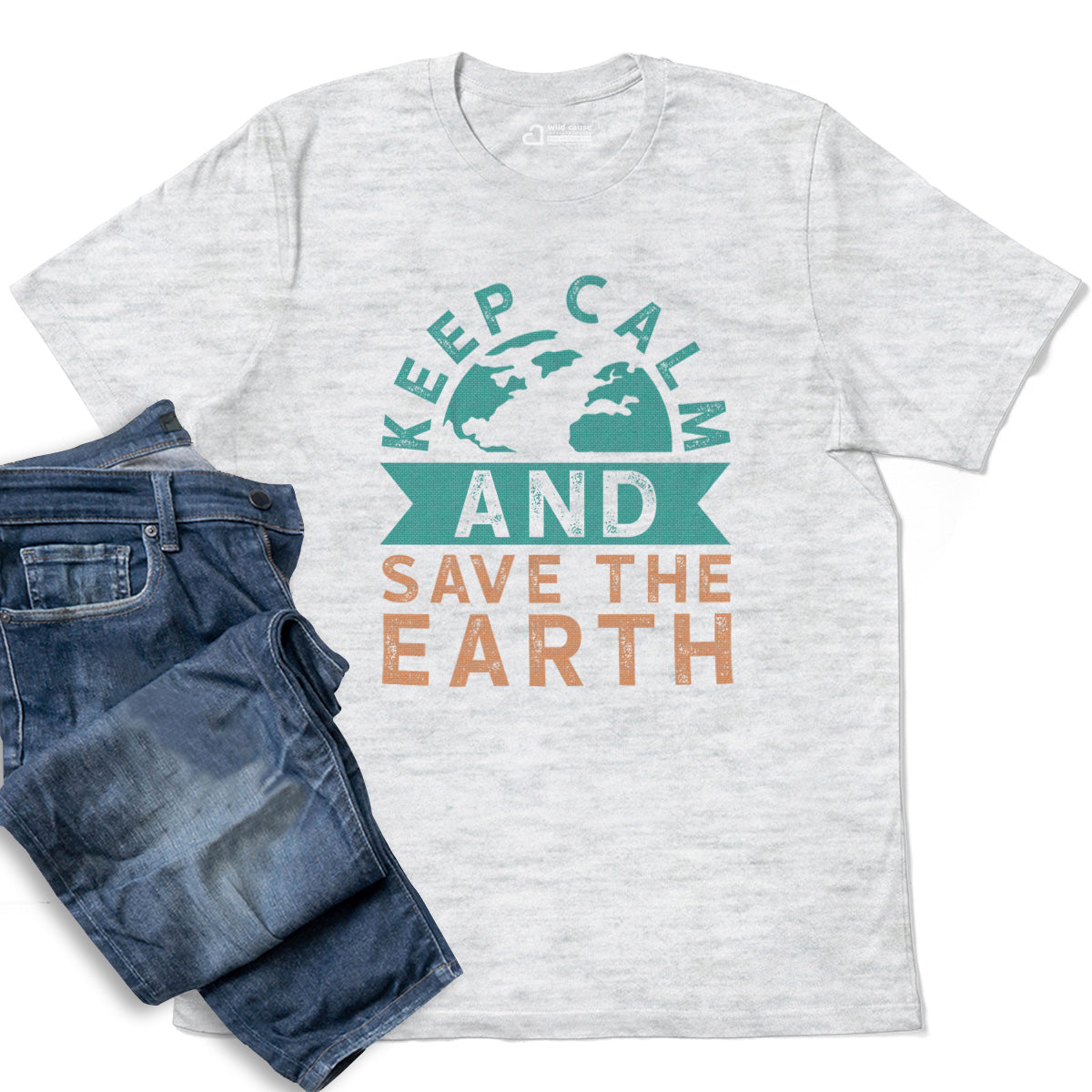 Keep Calm Save Earth Conservation Theme Adult Cotton Tee T-Shirt