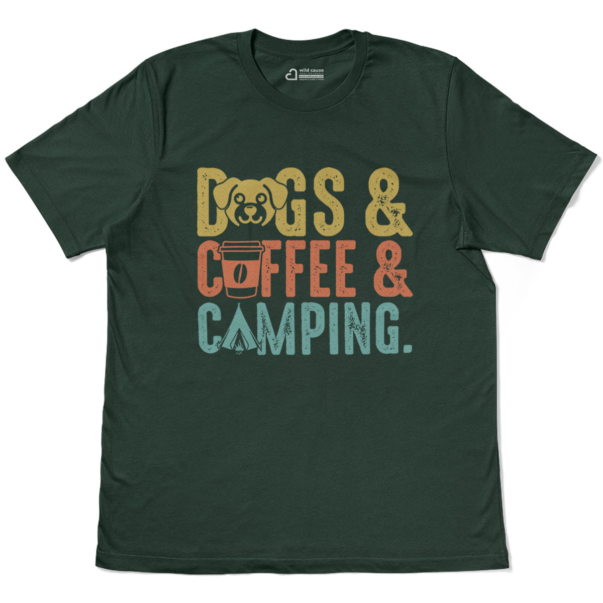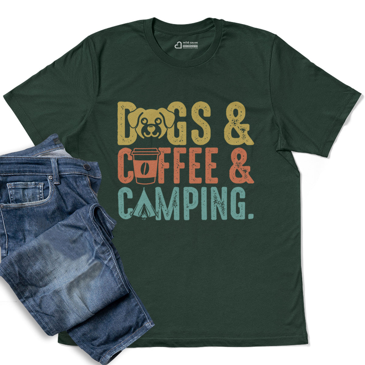 Dogs Coffee Camping Pets Outdoor Adult Cotton Tee T-Shirt