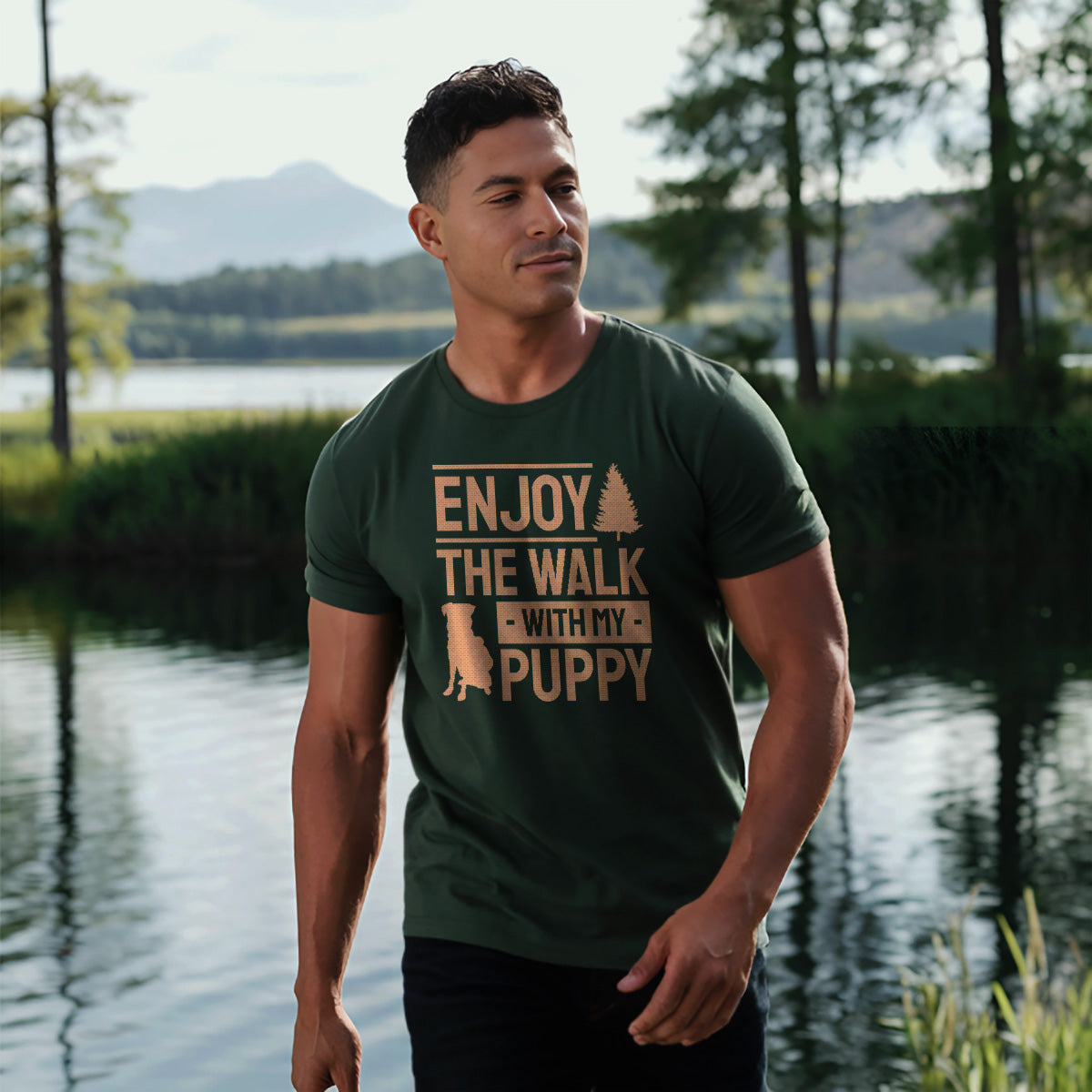 Enjoy The Walk With Puppy Fun Pet Vibes Adult Cotton Tee T-Shirt