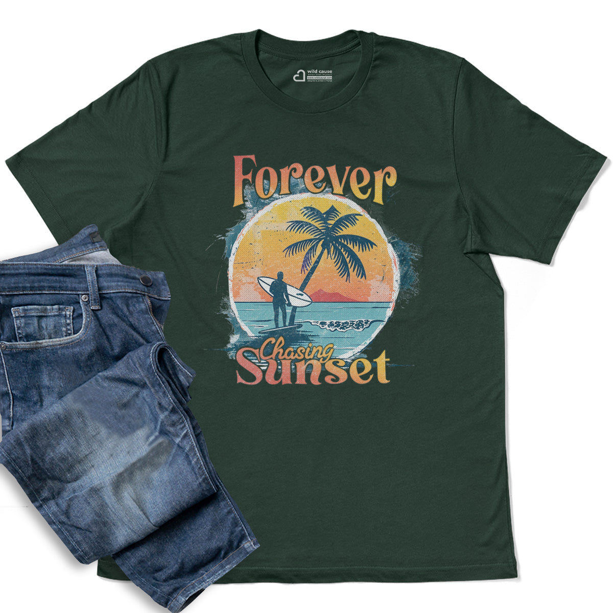 Forever Chasing Sunsets Beach Wave Fun Adult Cotton Tee T-Shirt