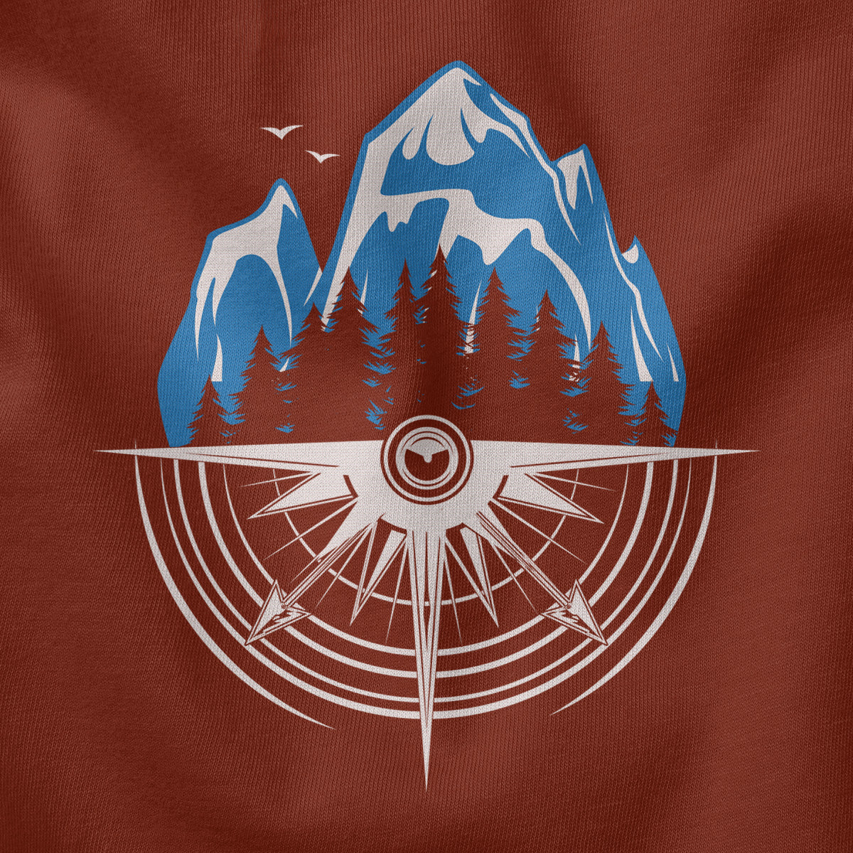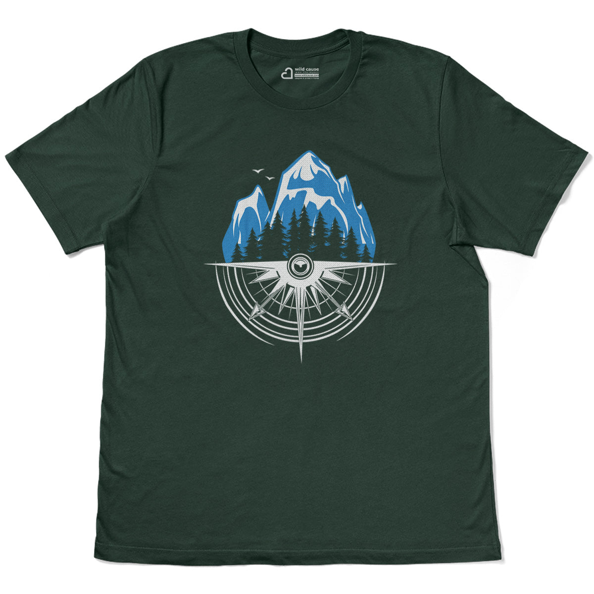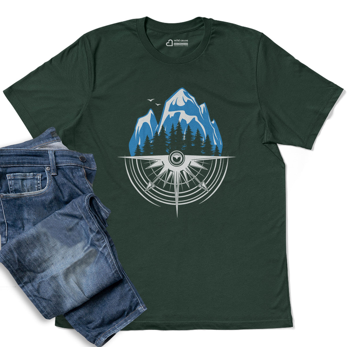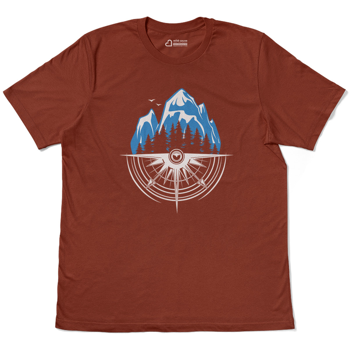 Hiking Mountains Travel Compass Adult Cotton Tee T-Shirt