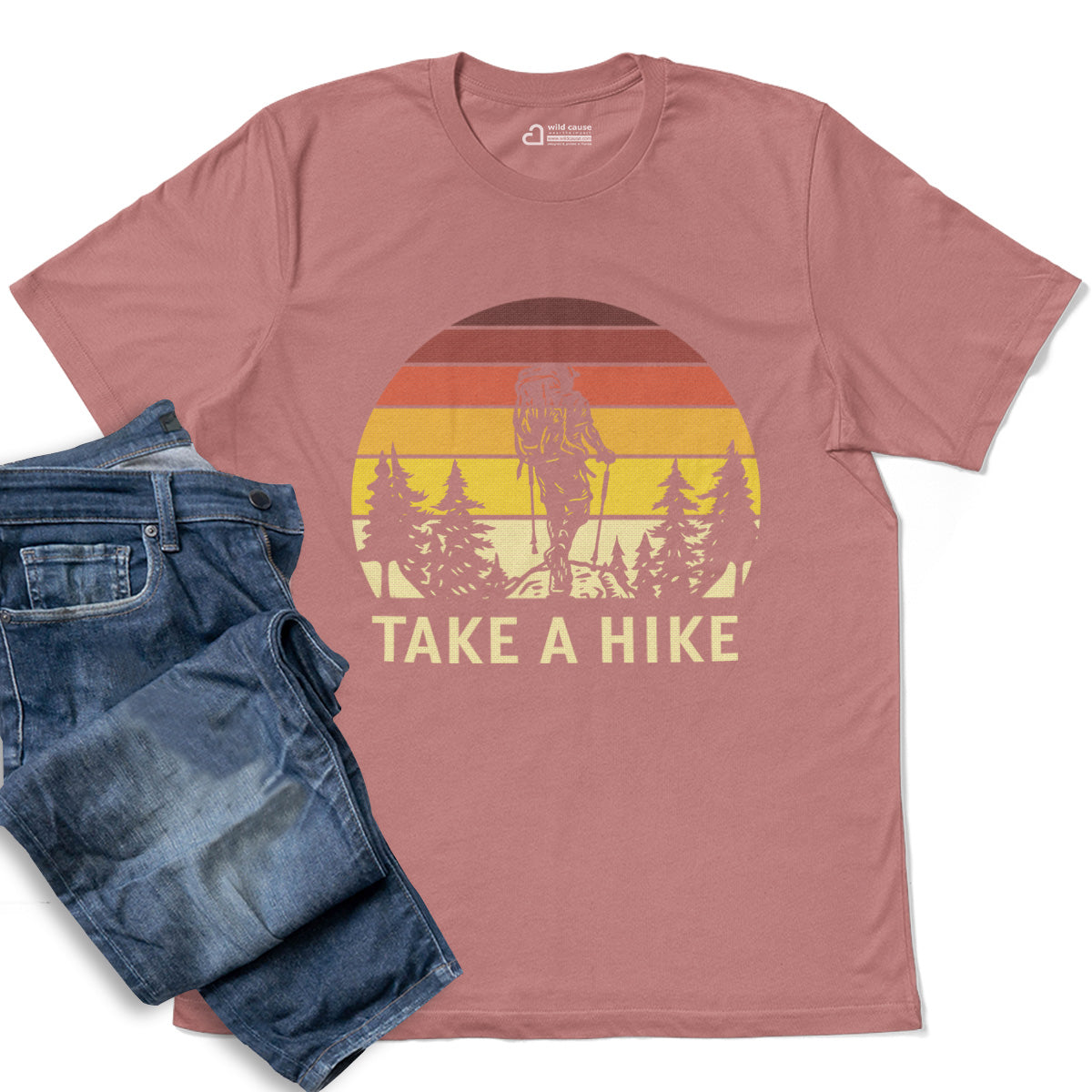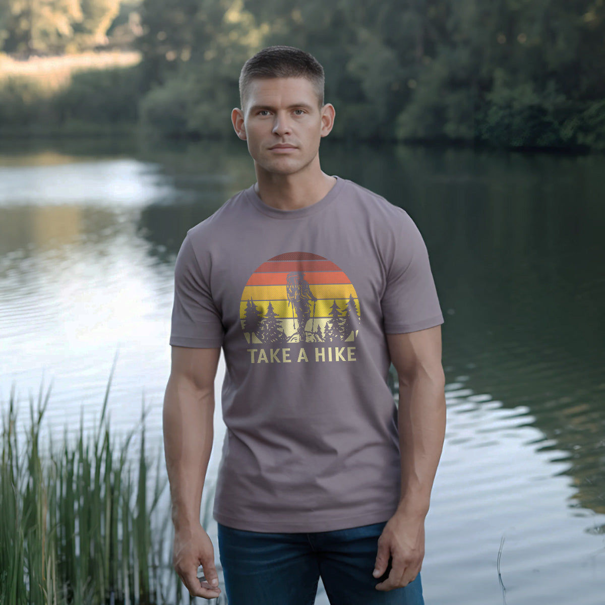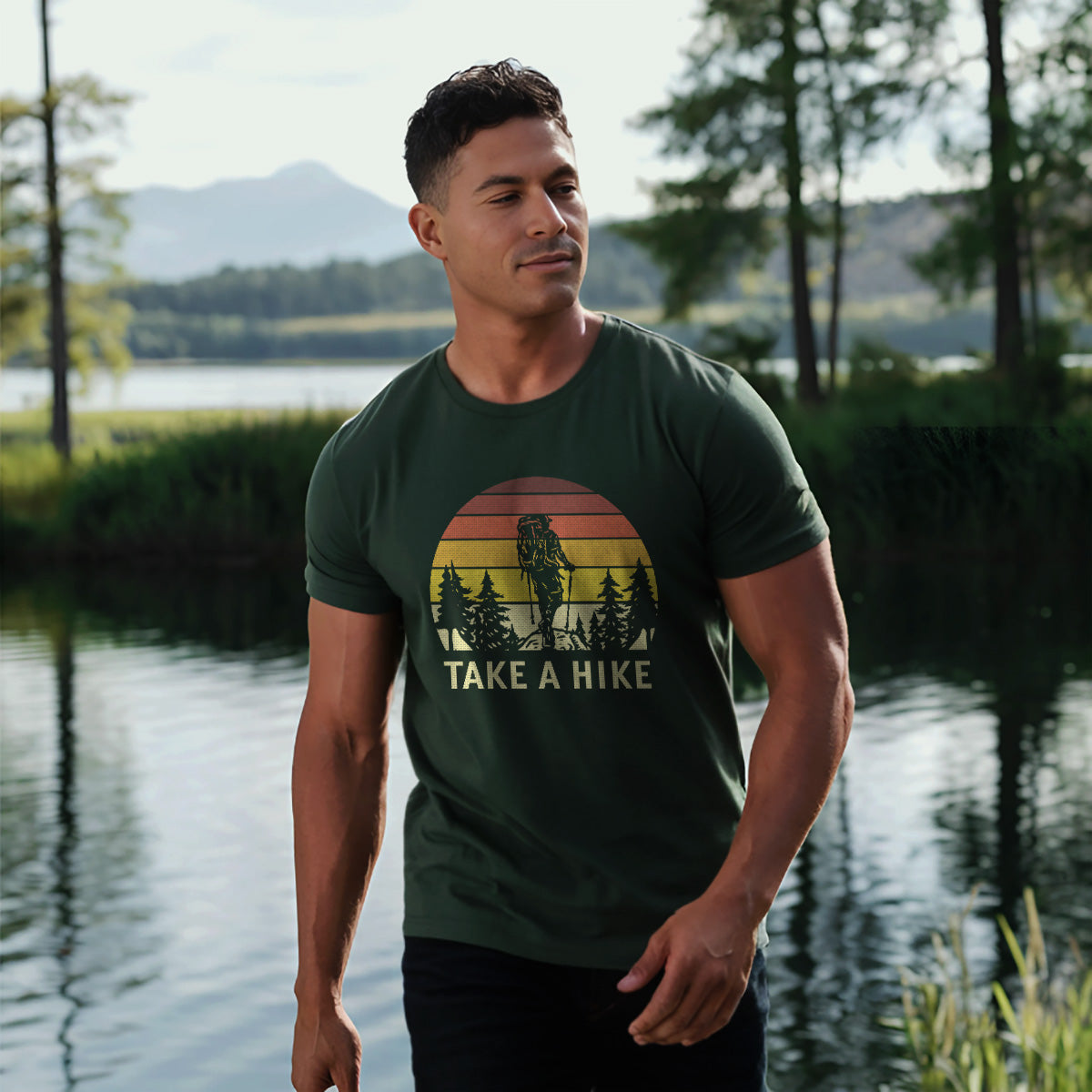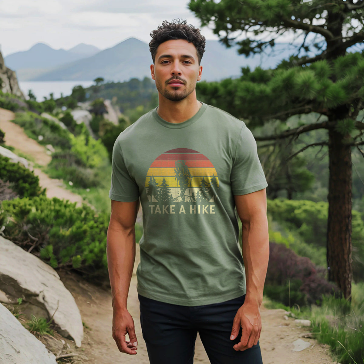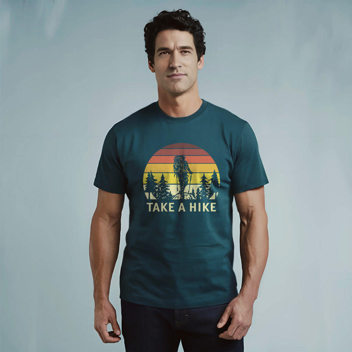Retro Take Hike Wilderness Mountain Scene Adult Cotton Tee T-Shirt