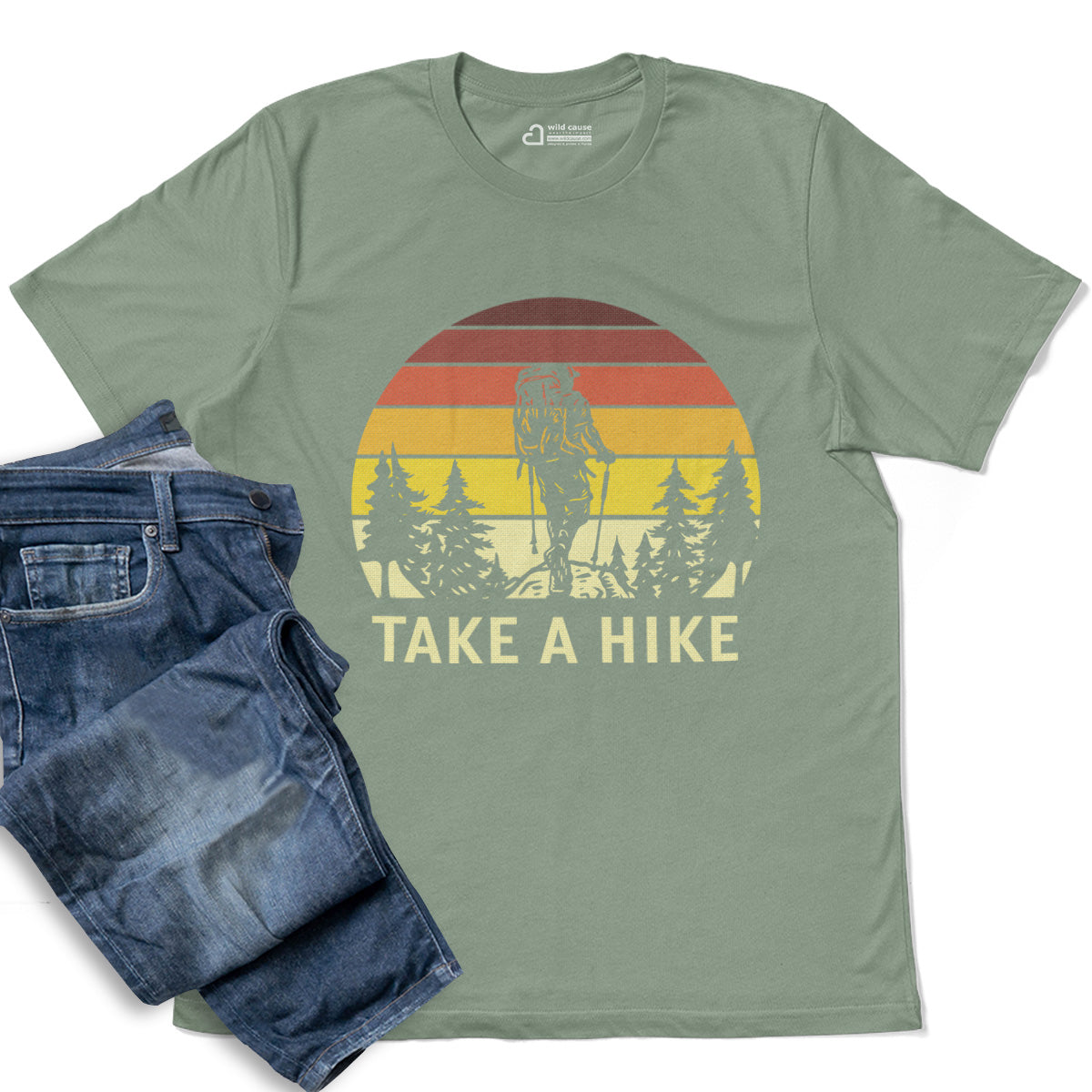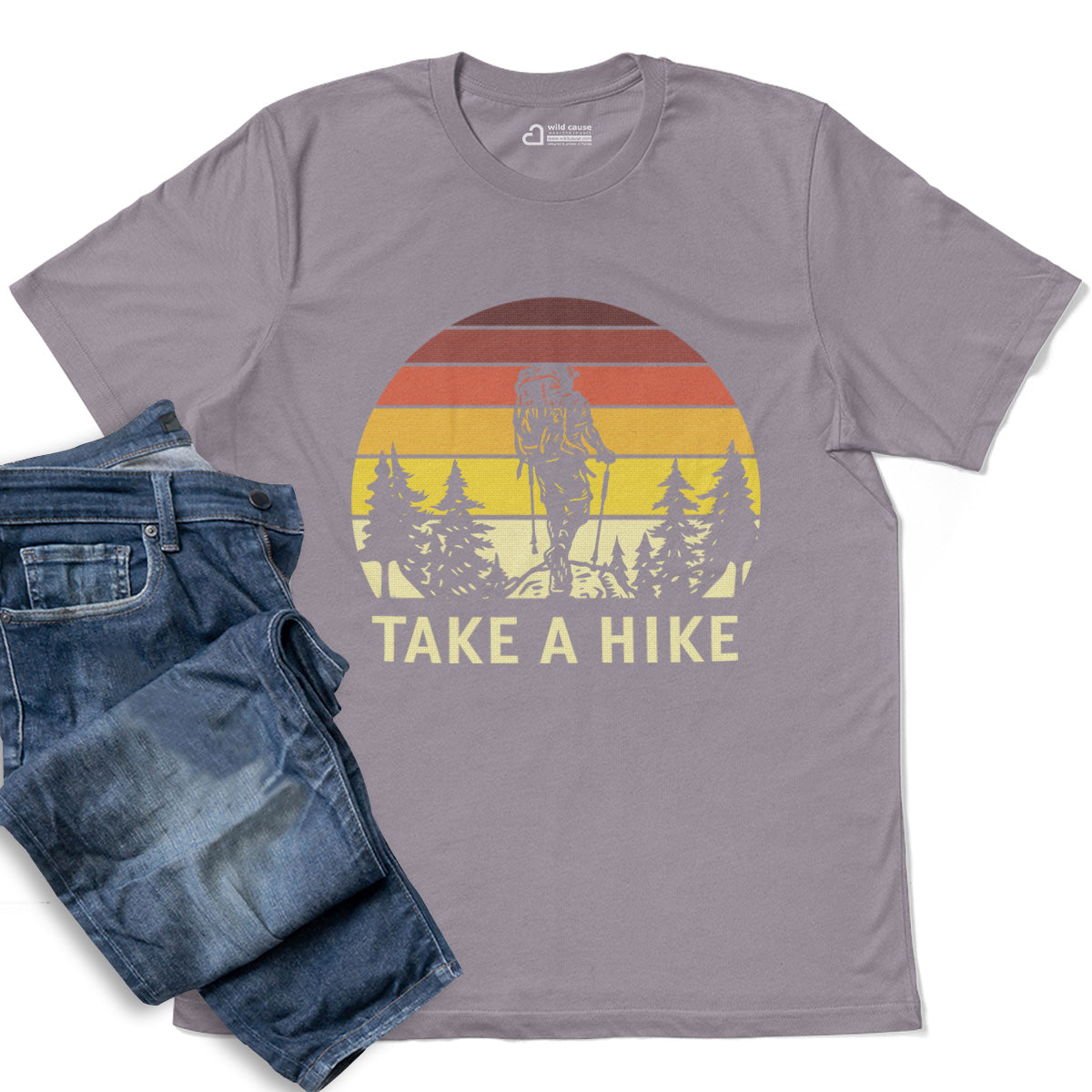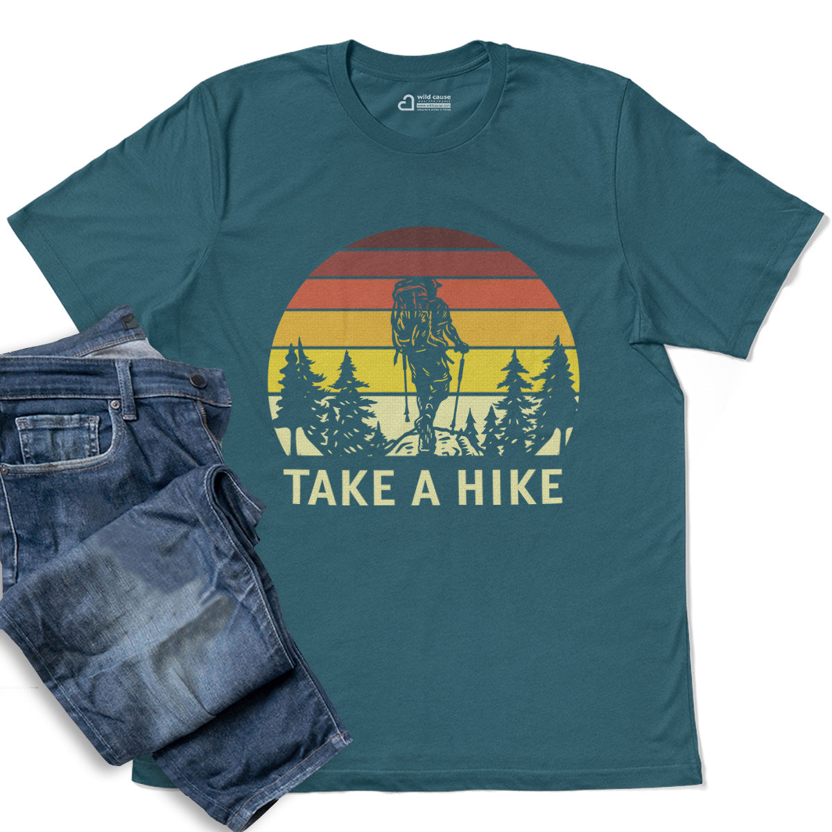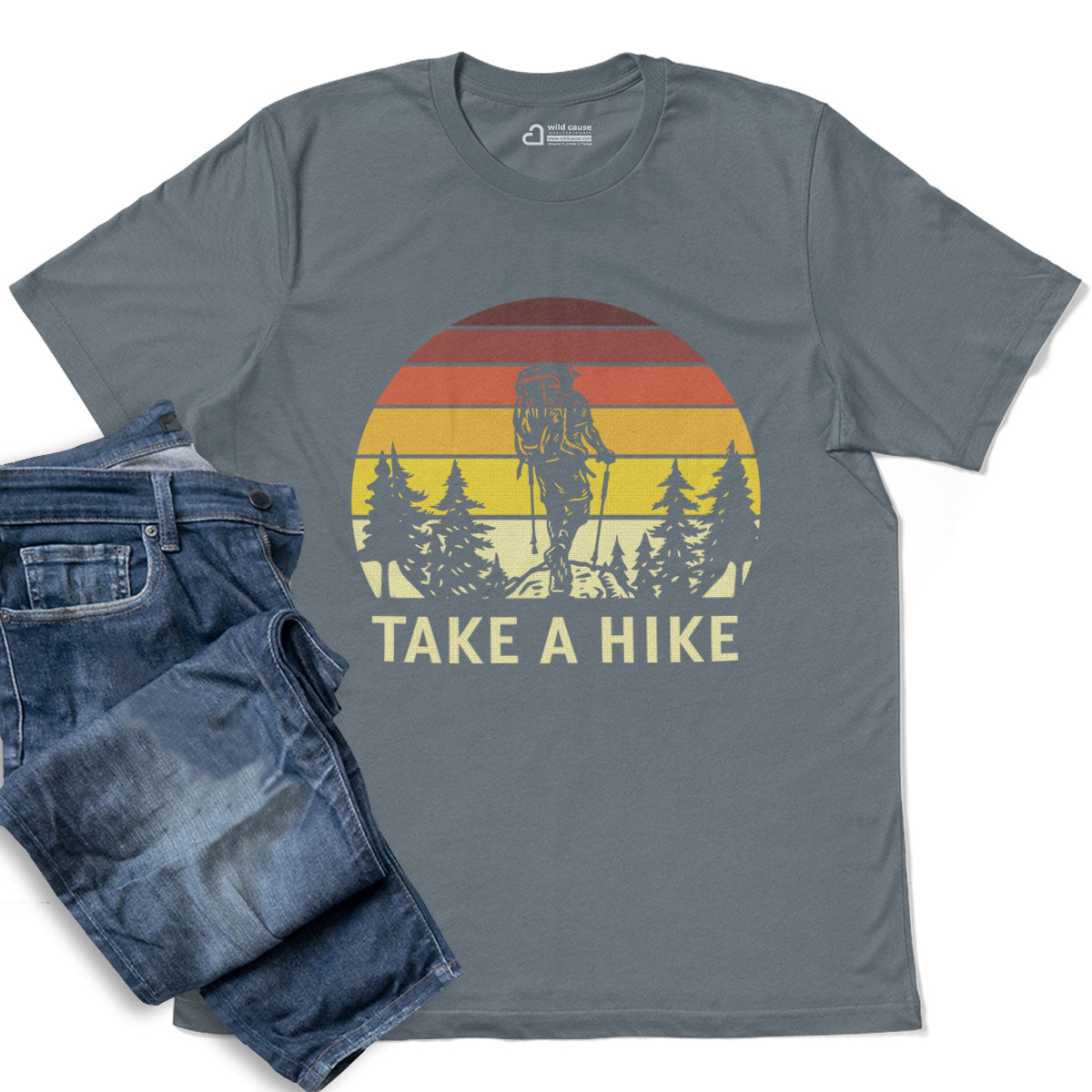 Retro Take Hike Wilderness Mountain Scene Adult Cotton Tee T-Shirt