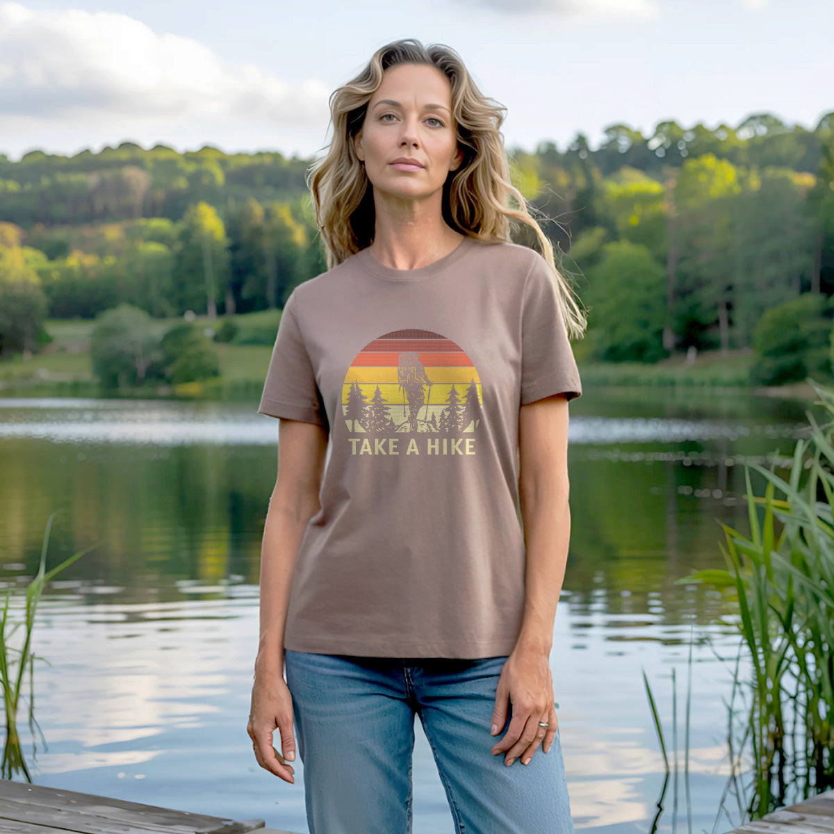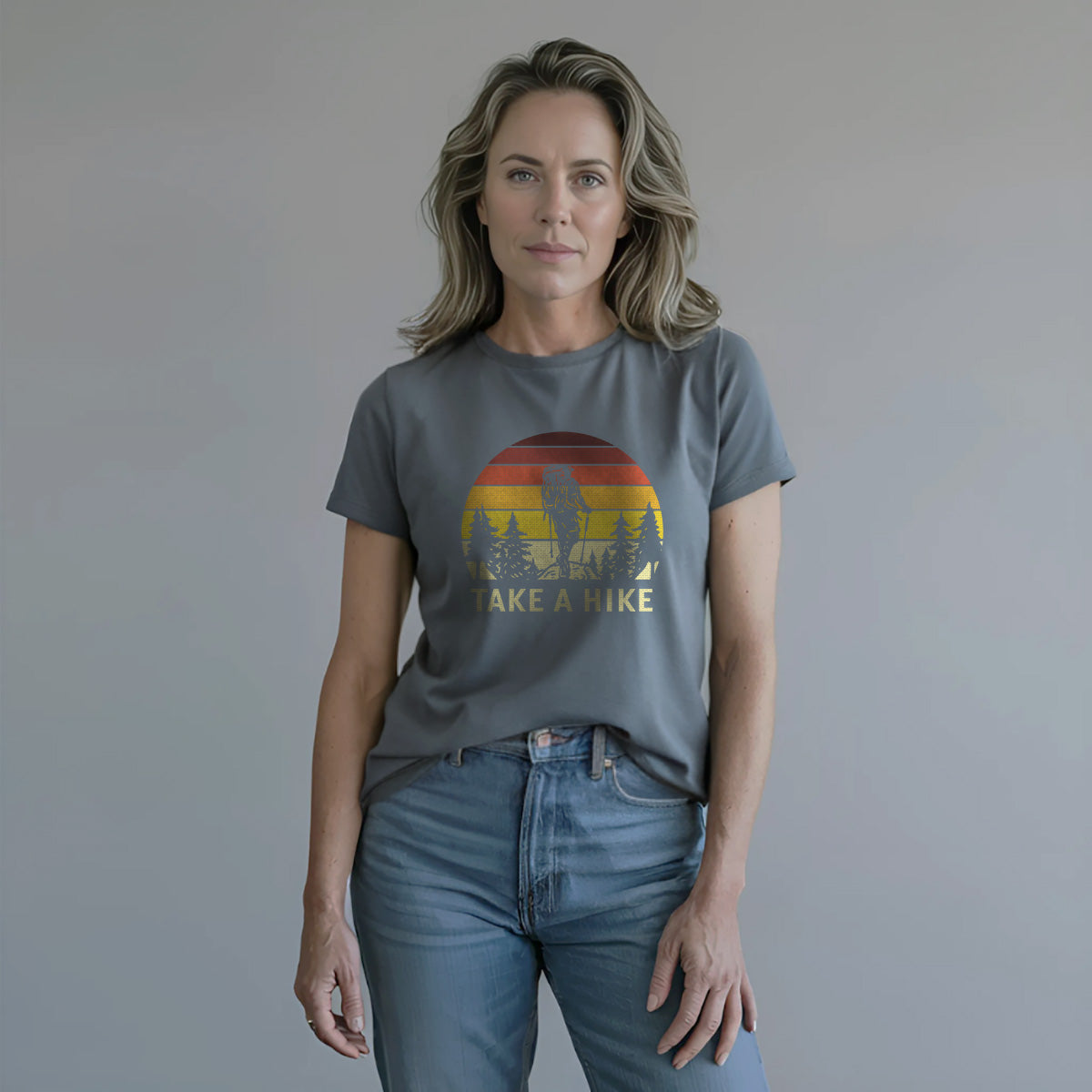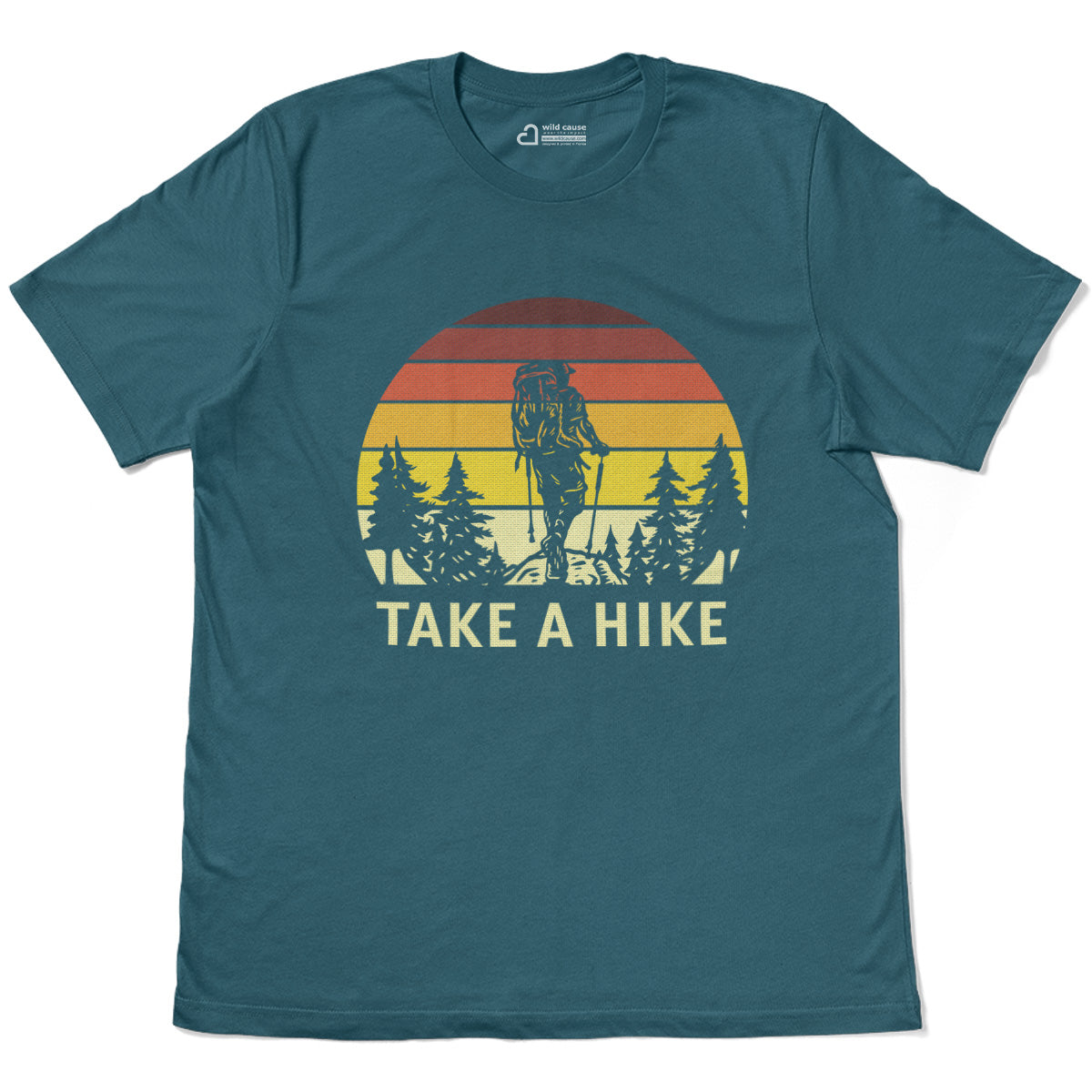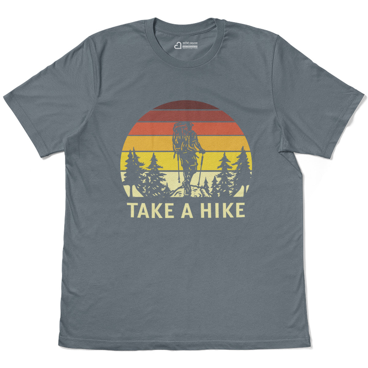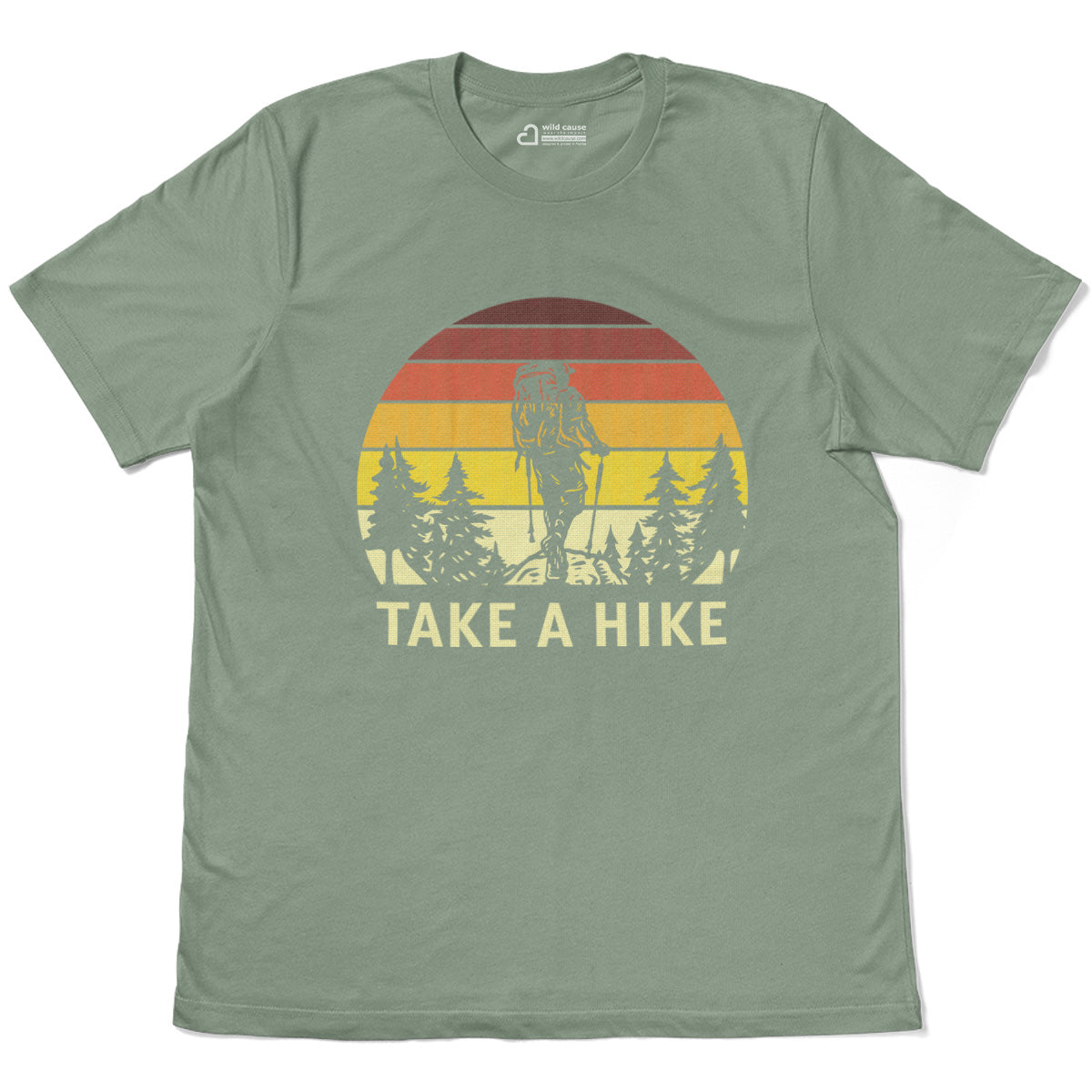 Retro Take Hike Wilderness Mountain Scene Adult Cotton Tee T-Shirt