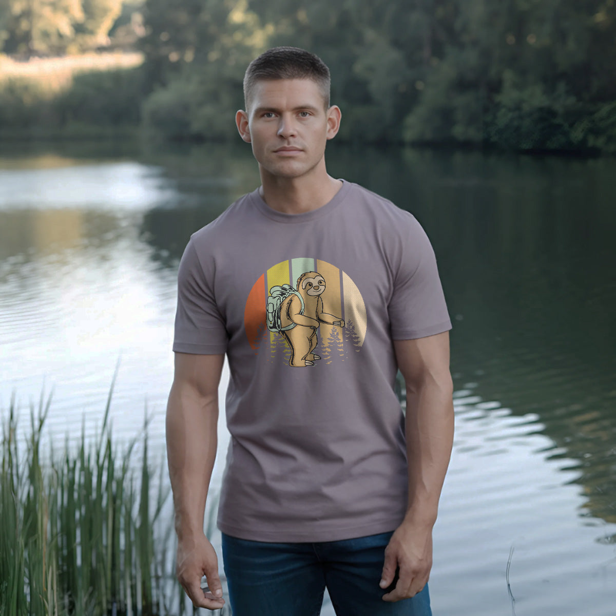 Sloth Hiking Relaxed Nature Lover Trail Adult Cotton Tee T-Shirt