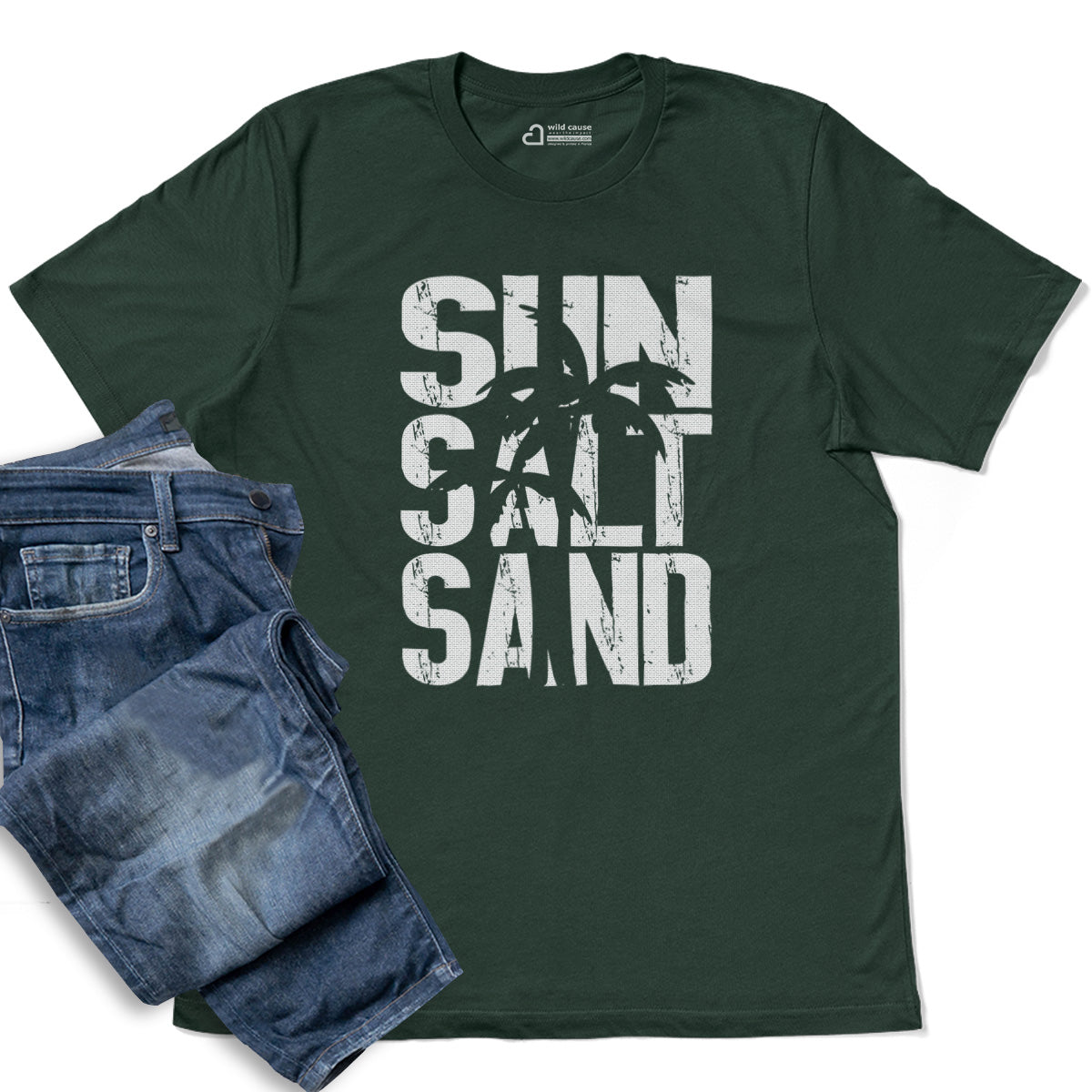 Embrace beach vibes with the sun, salt, and sand Adult Cotton Tee T-Shirt. Basking in sun, salt, and sand has never been more stylish! Enjoy warm days and cool waves with this comfy tee. Salty air, sun, and soft sand make this a must-have for sunny skies and warm waves lovers. Smiling under the sunshine has never been easier!