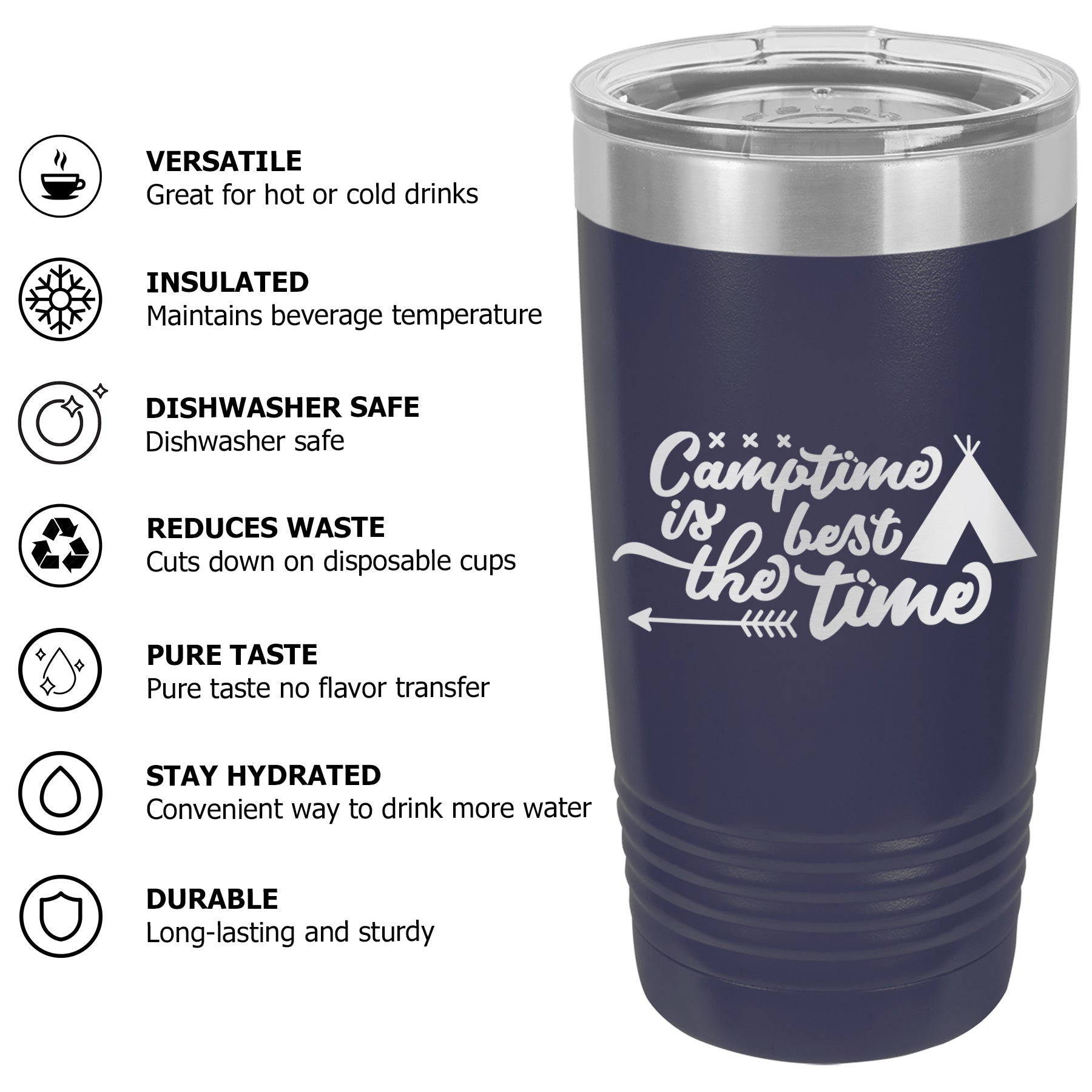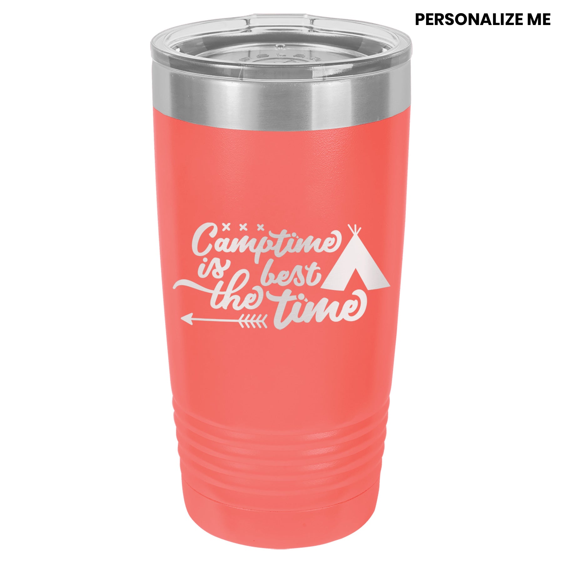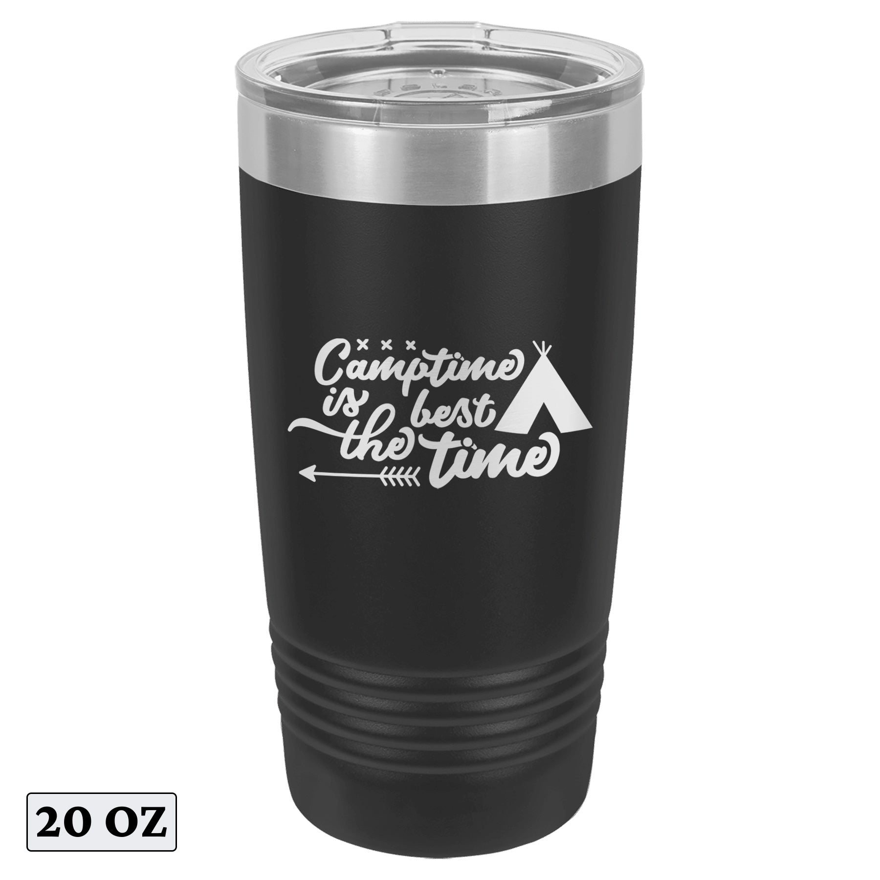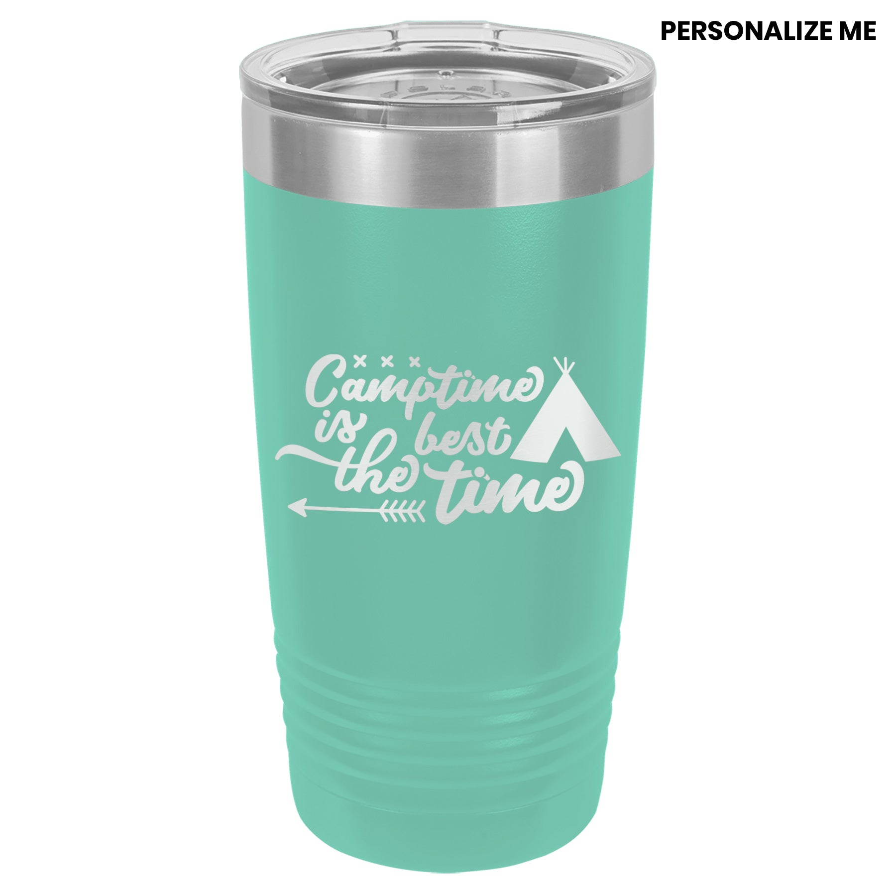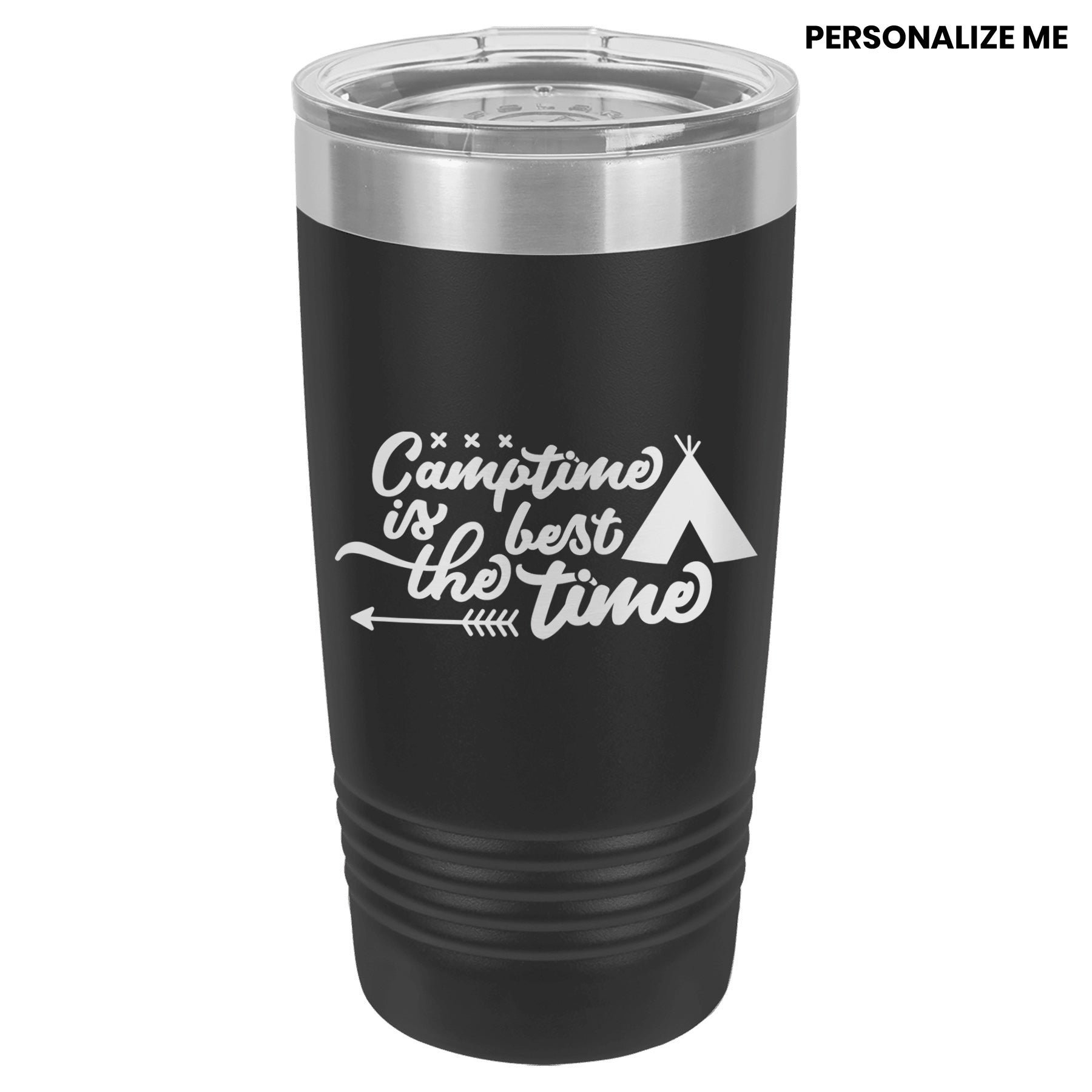 The Camptime always means outdoor fun Tumbler Cup Mug is perfect for outdoor enthusiasts. Made from durable materials, it is ideal for the best moments camping outdoors. This tumbler cup mug is designed for campers who know that CampTime Adventure Awaits. Enjoy the best CampTime with this versatile and stylish mug.