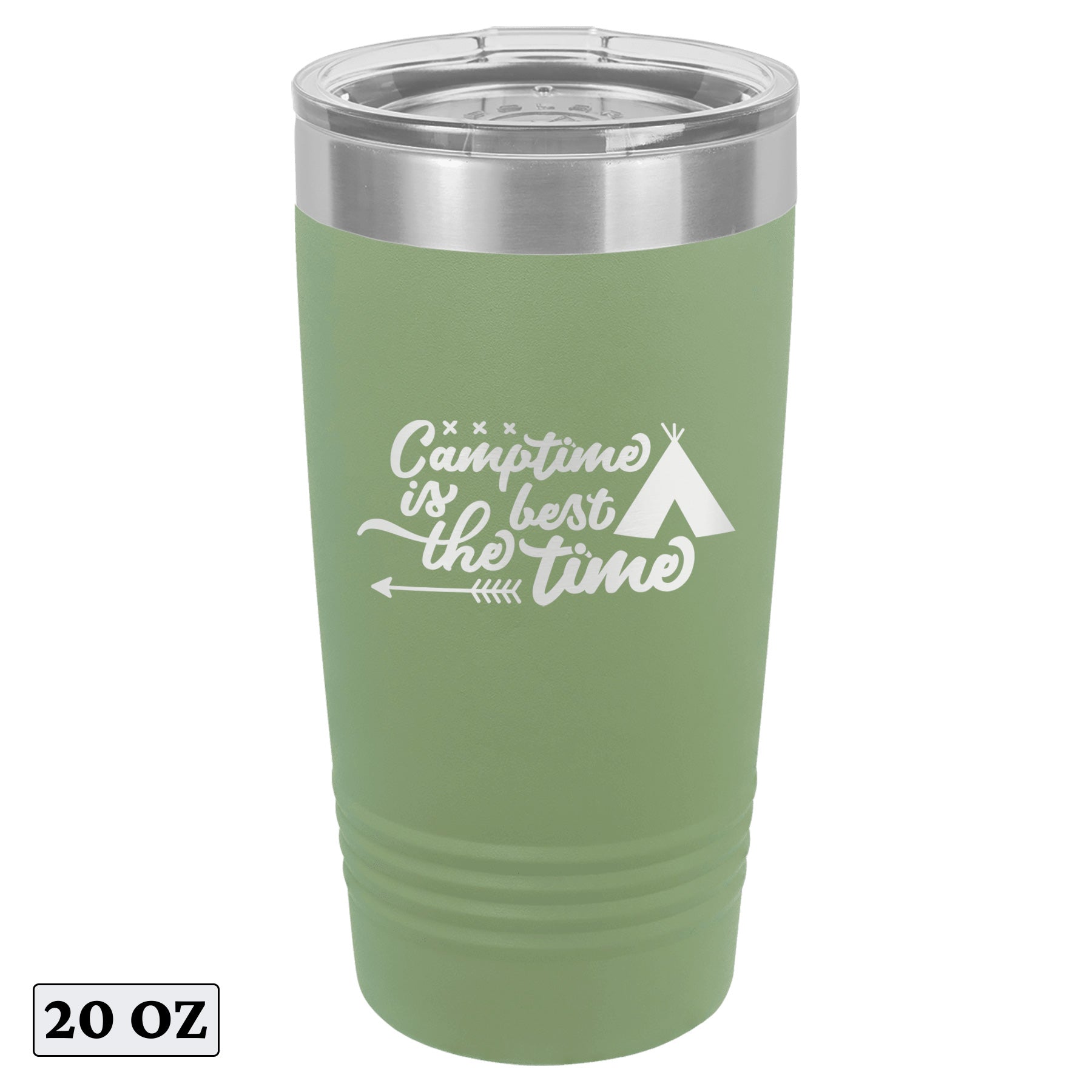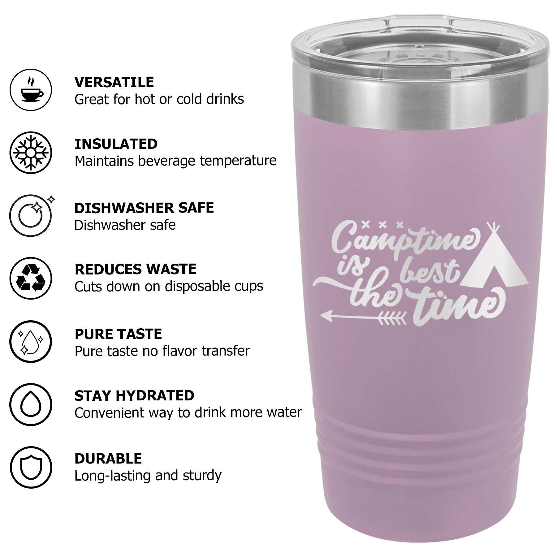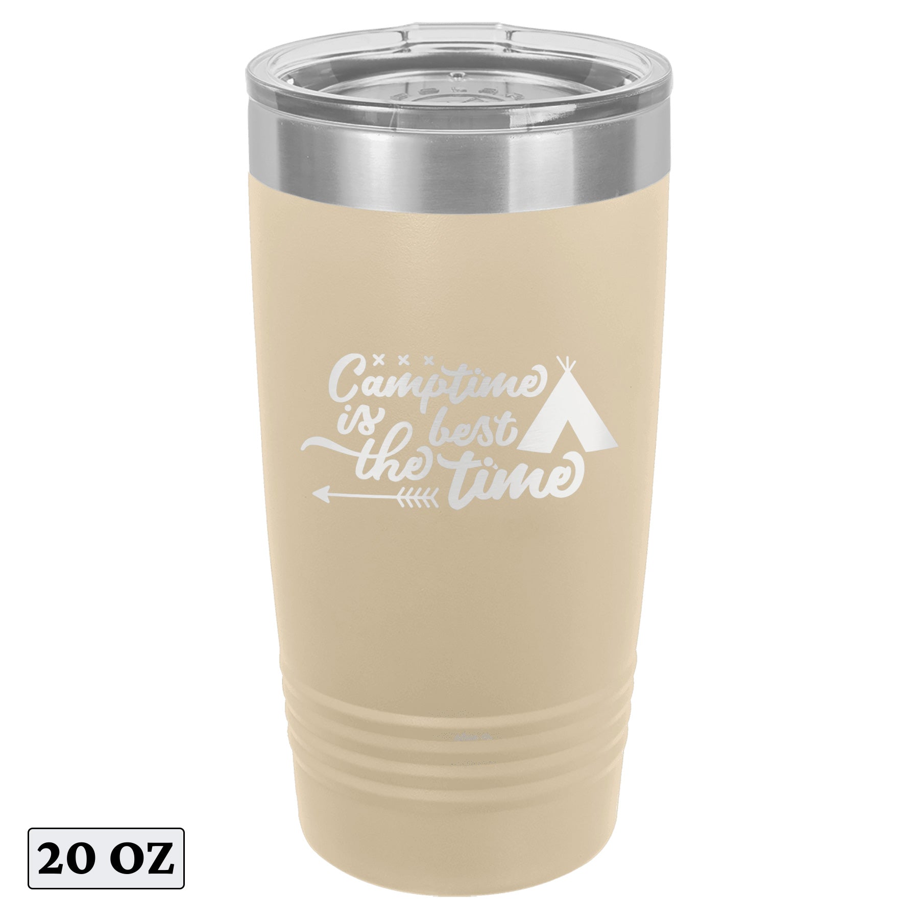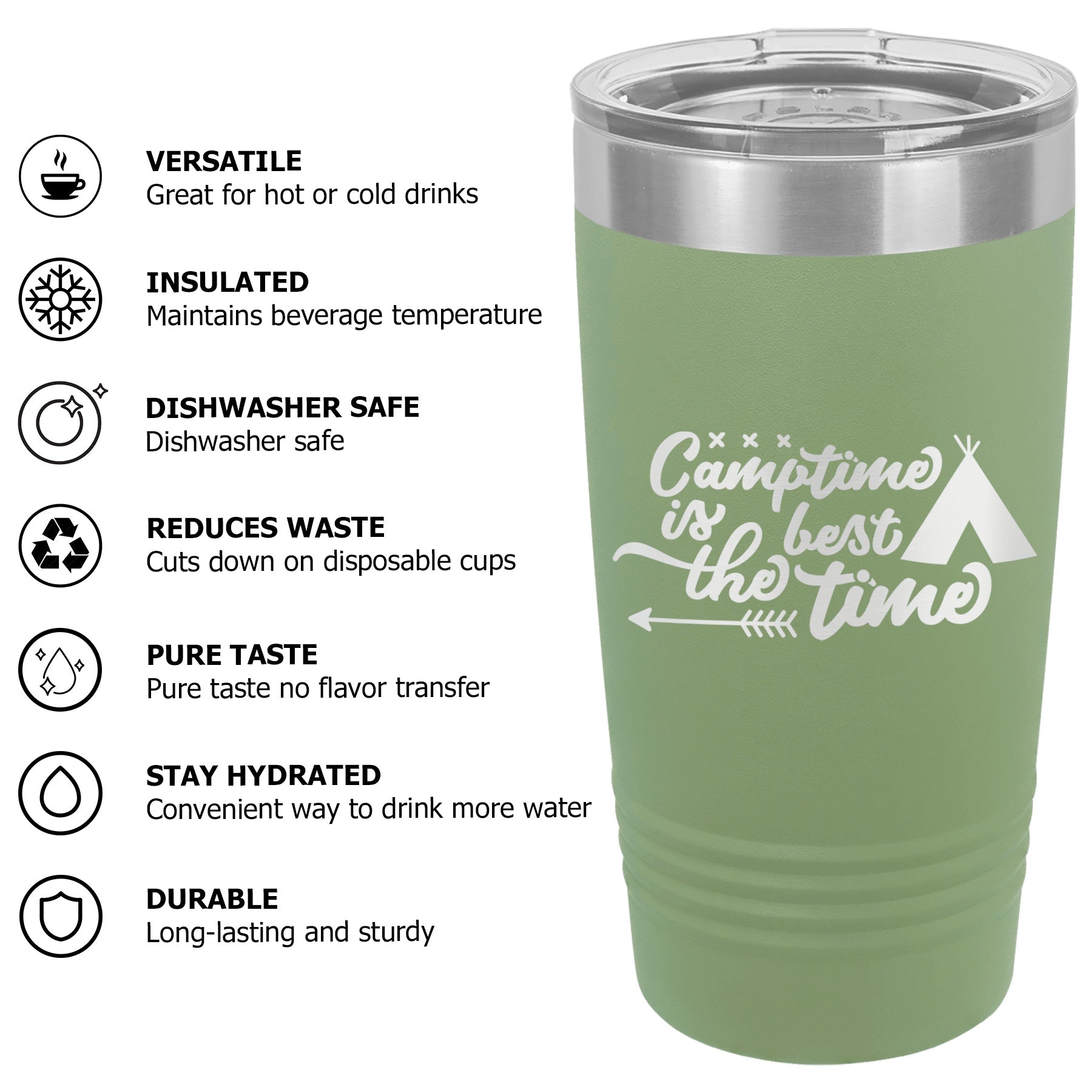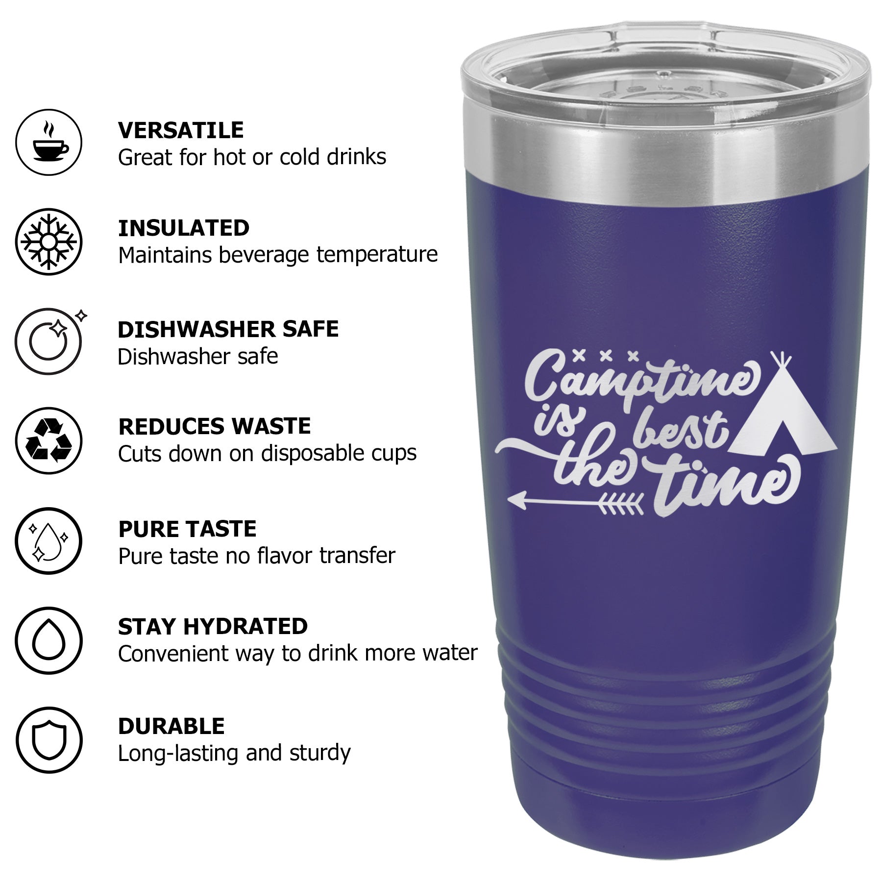 The Camptime always means outdoor fun Tumbler Cup Mug is perfect for outdoor enthusiasts. Made from durable materials, it is ideal for the best moments camping outdoors. This tumbler cup mug is designed for campers who know that CampTime Adventure Awaits. Enjoy the best CampTime with this versatile and stylish mug.