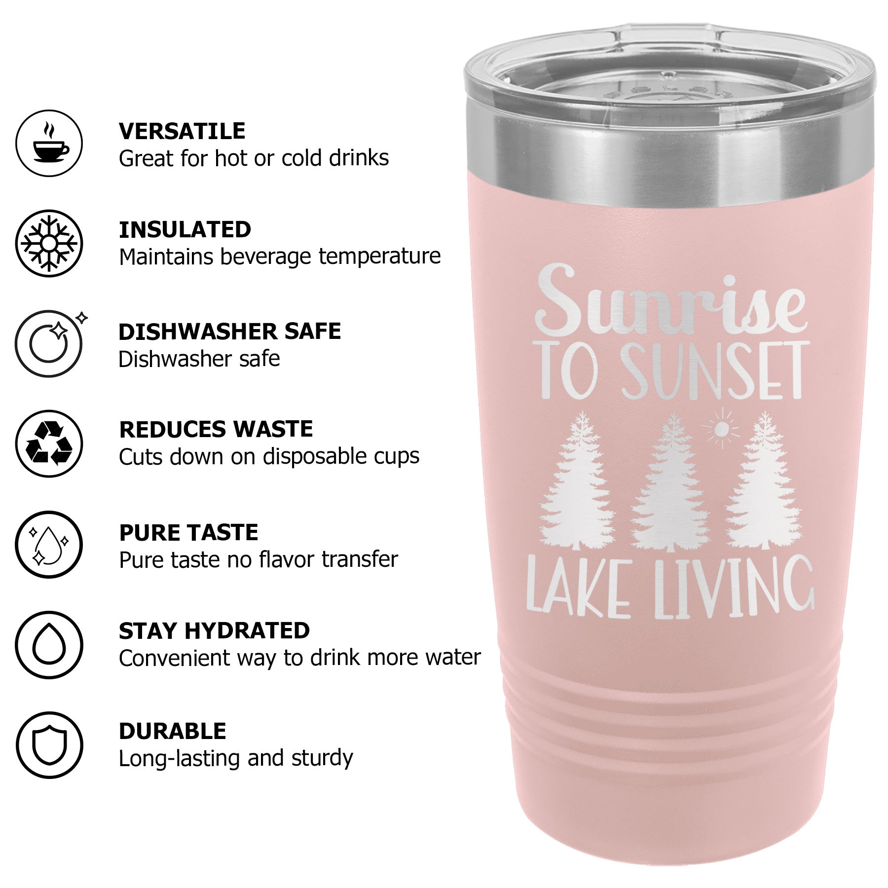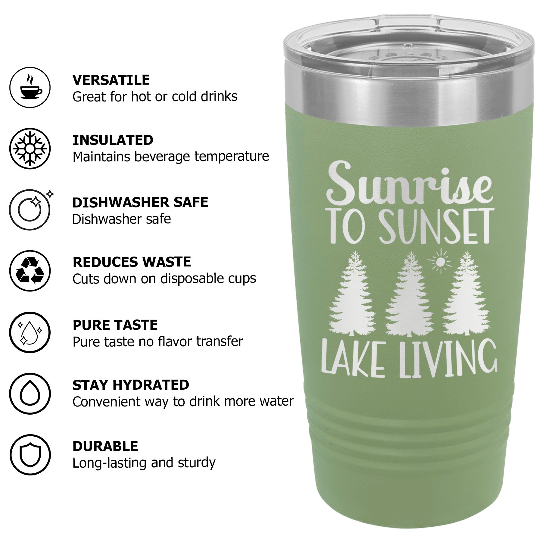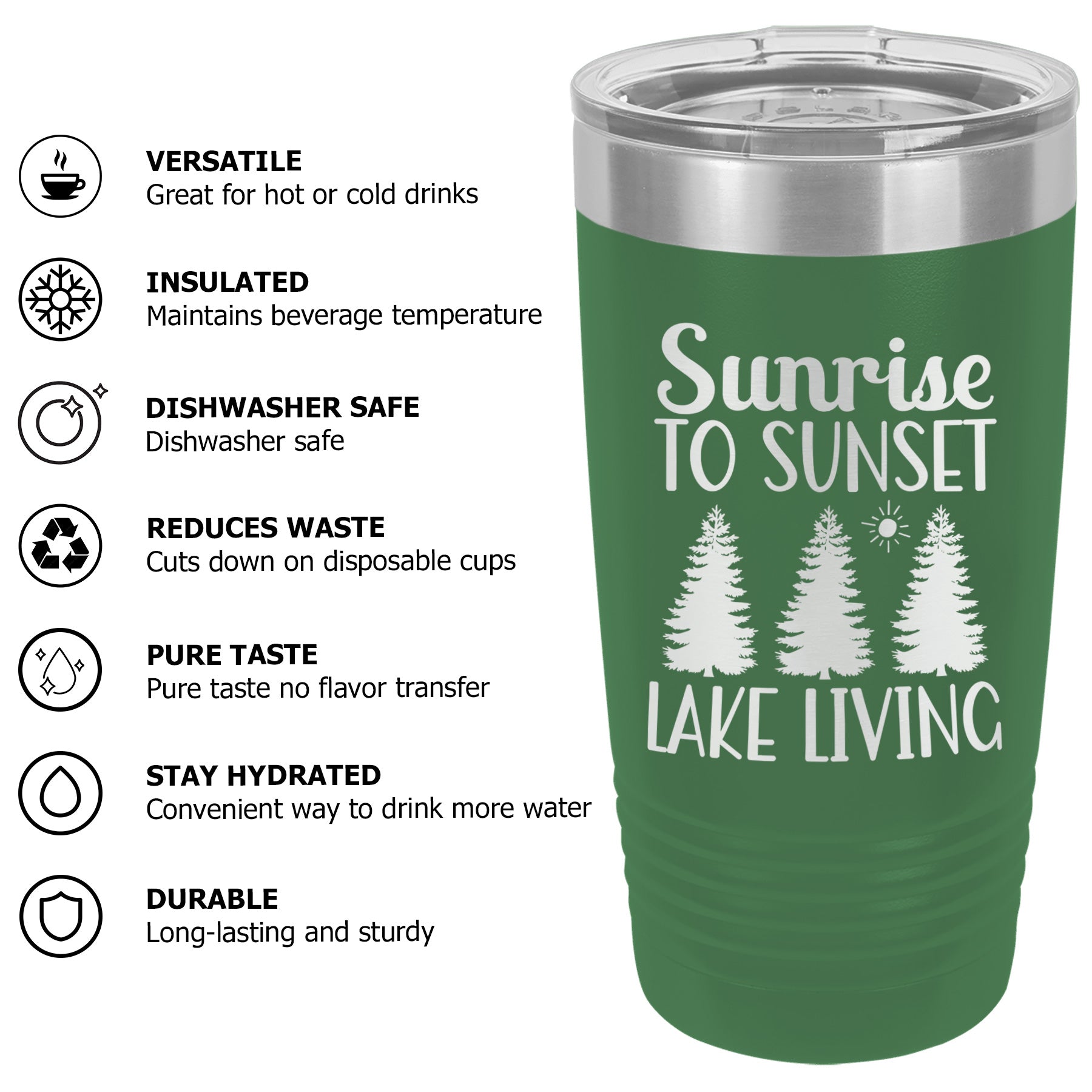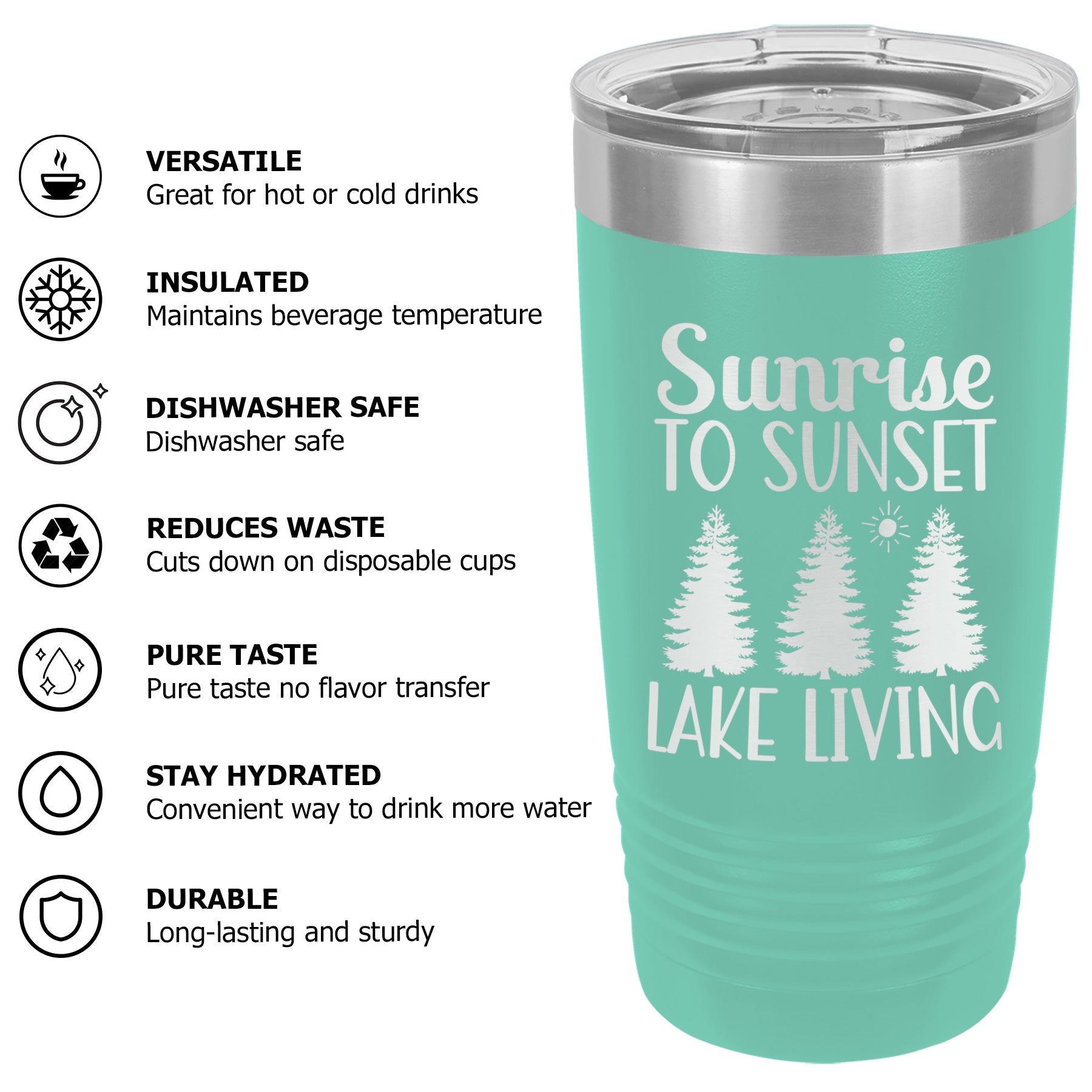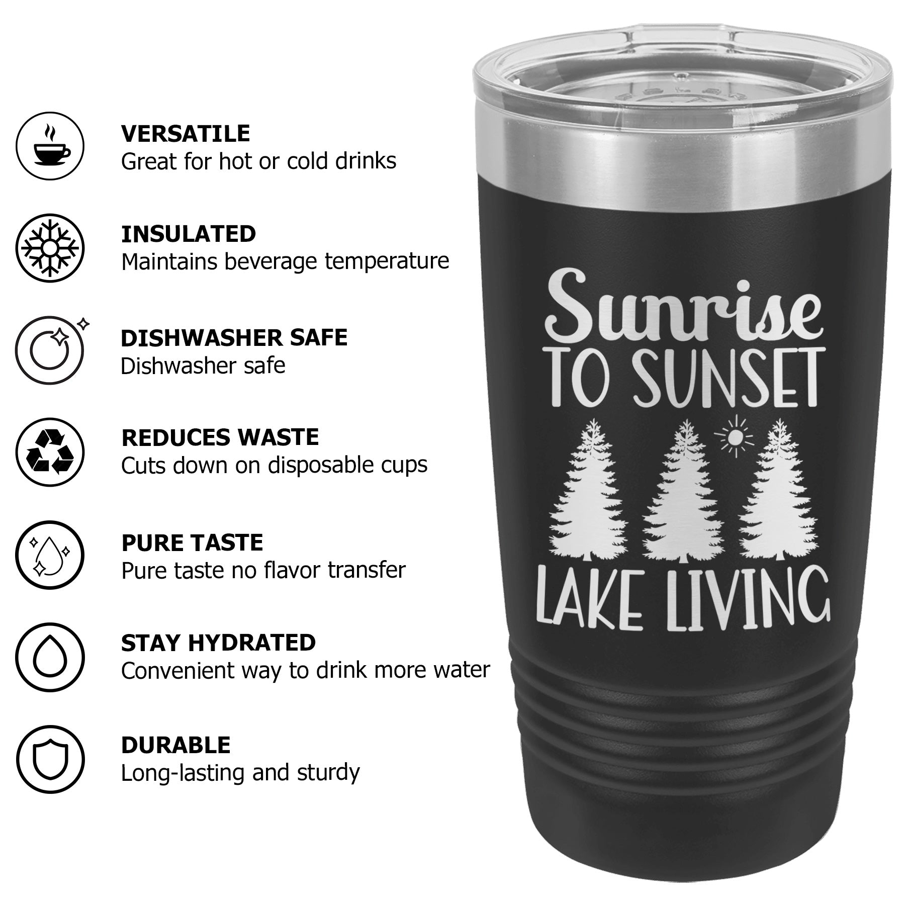 Enjoy every moment by the lake with our Tumbler Cup Mug. Embrace golden lake mornings and sunrise to sunset vibes with this durable and stylish drinkware. Perfect for all-day lake adventures and full-day lake vibes.