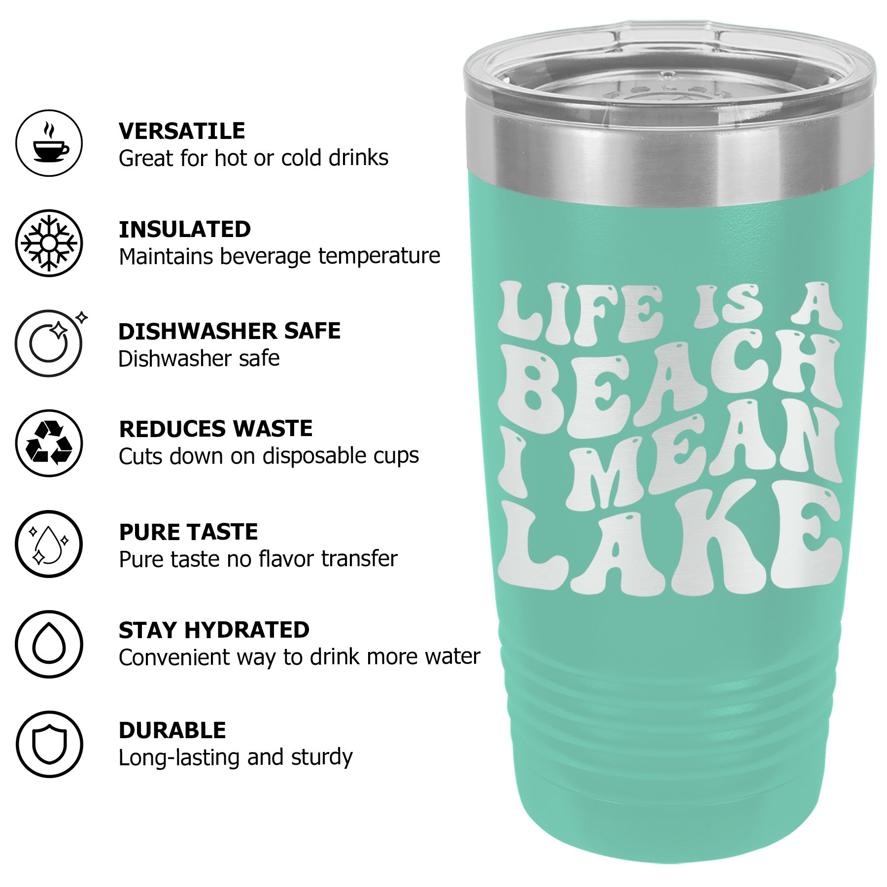 Sandy shores and water adventures! Tumbler Cup Mug is a lake lover's paradise. Enjoying life by the water with beach to lake fun. No waves just ripples, this mug exudes lake & water vibes, making it a must-have for those who love the water.