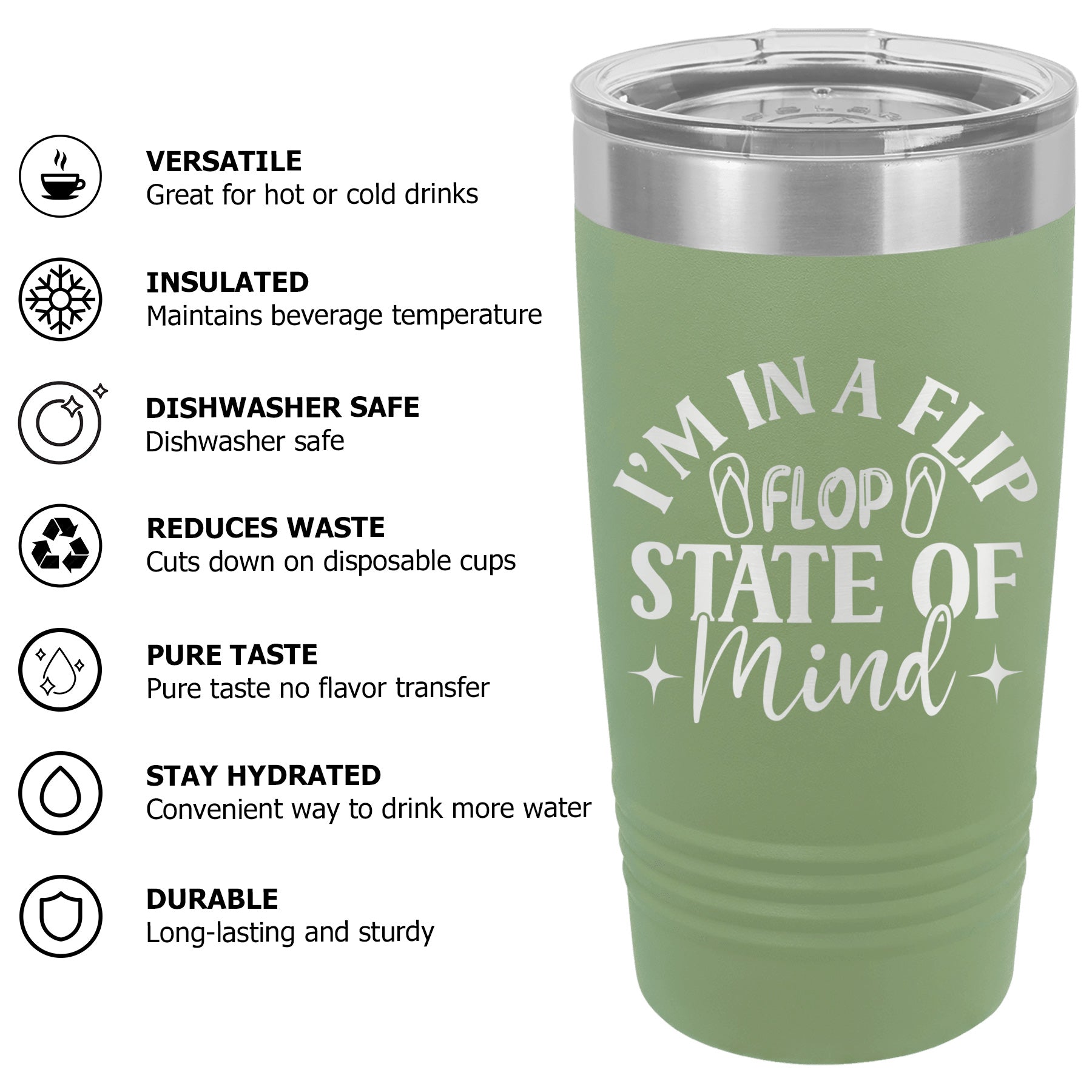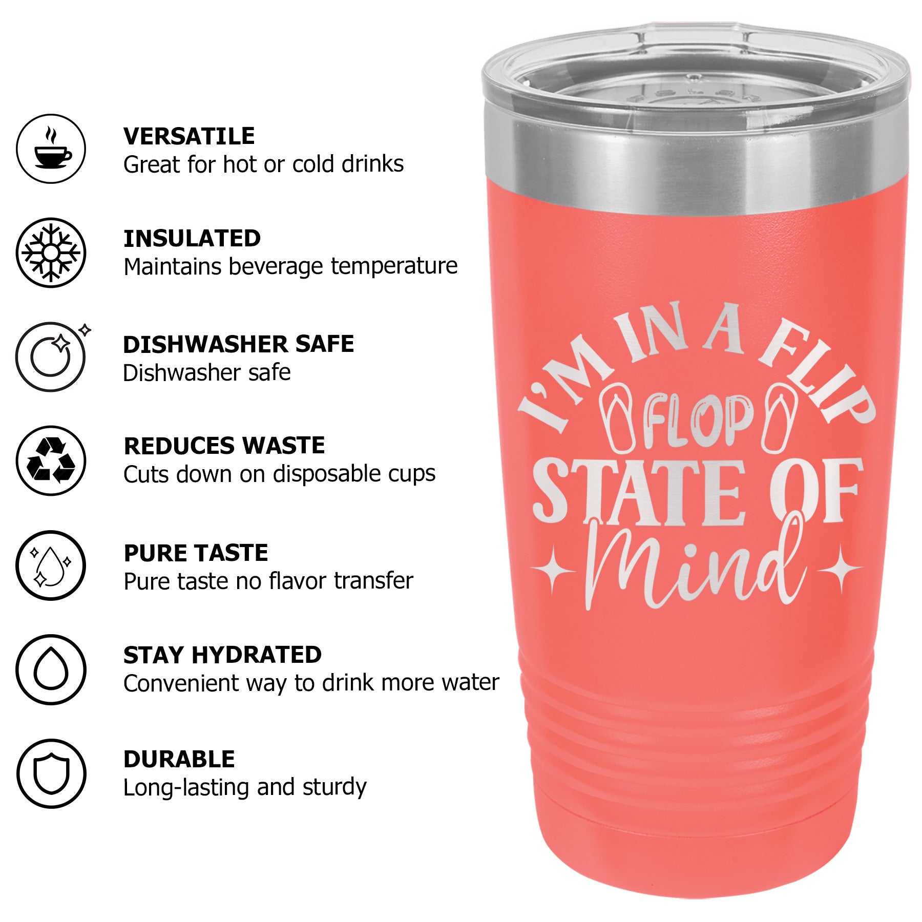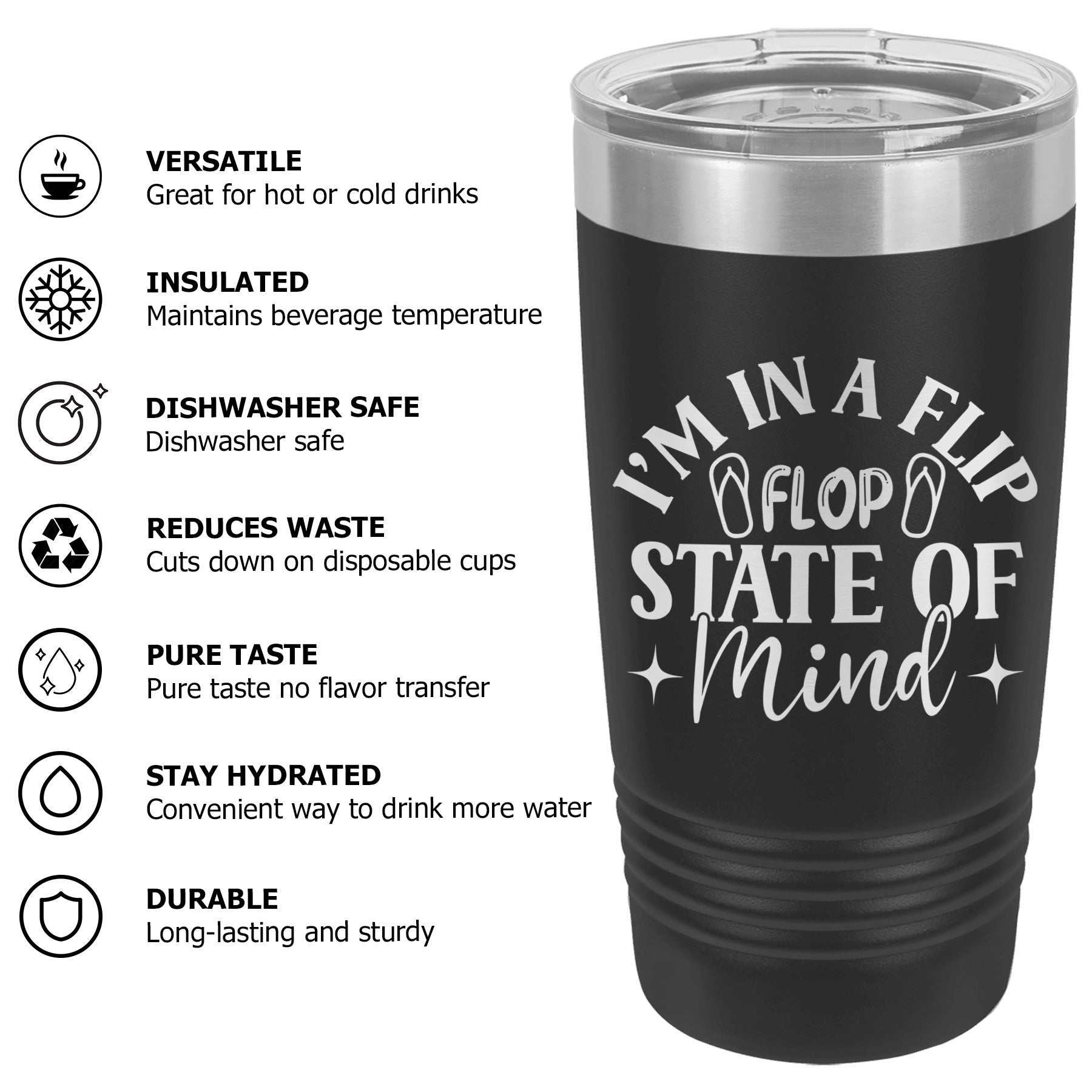 The Flip-flop state of mind, always Tumbler Cup Mug embodies the beachy flip flop mindset. Perfect for relaxed summer beach days, this mug captures the essence of flip flop walks on sand. Embrace the flip flop life forever with this stylish and practical tumbler cup.