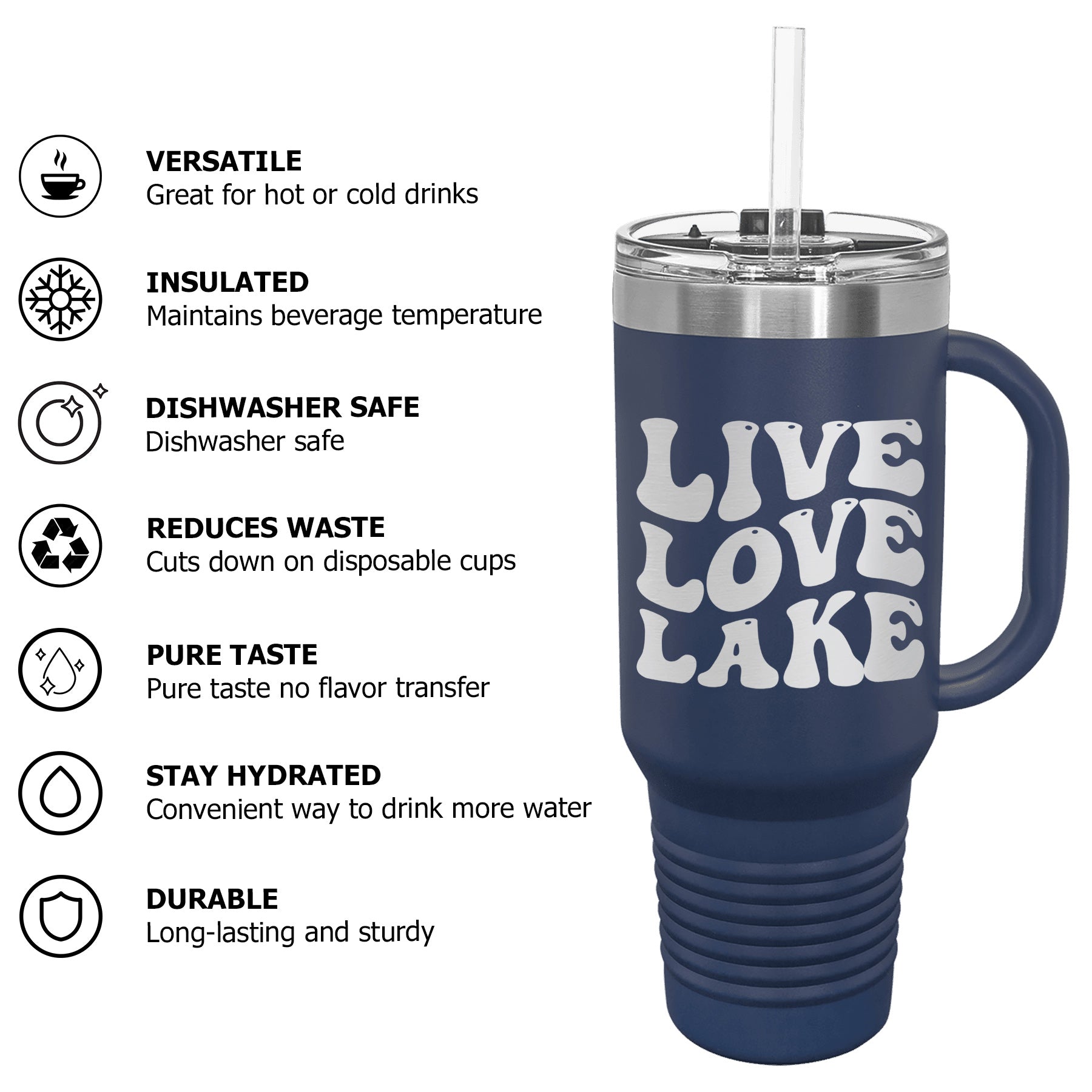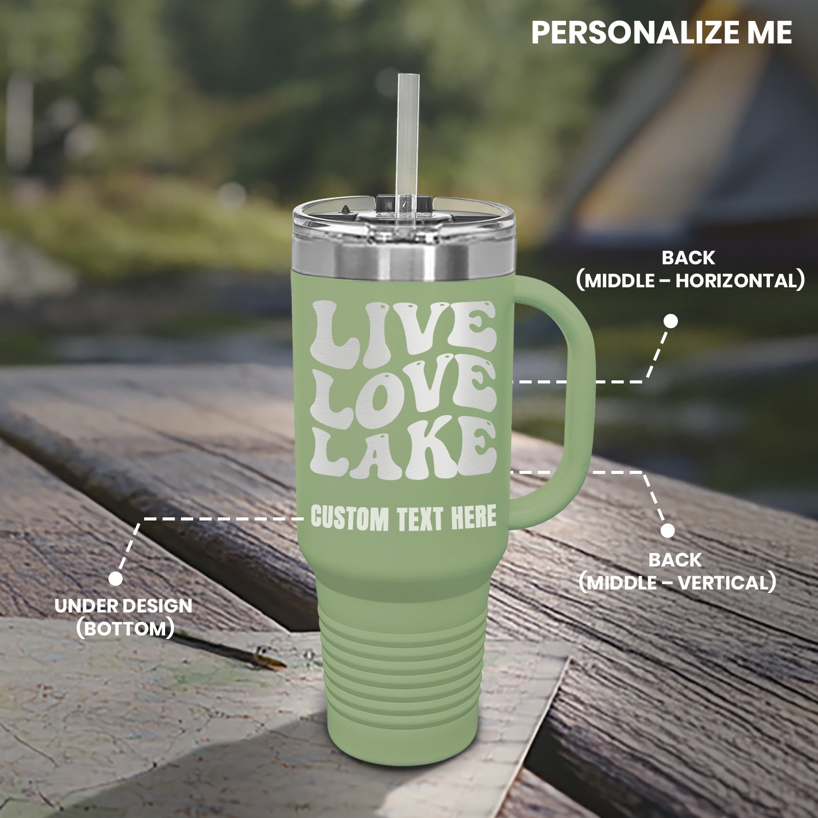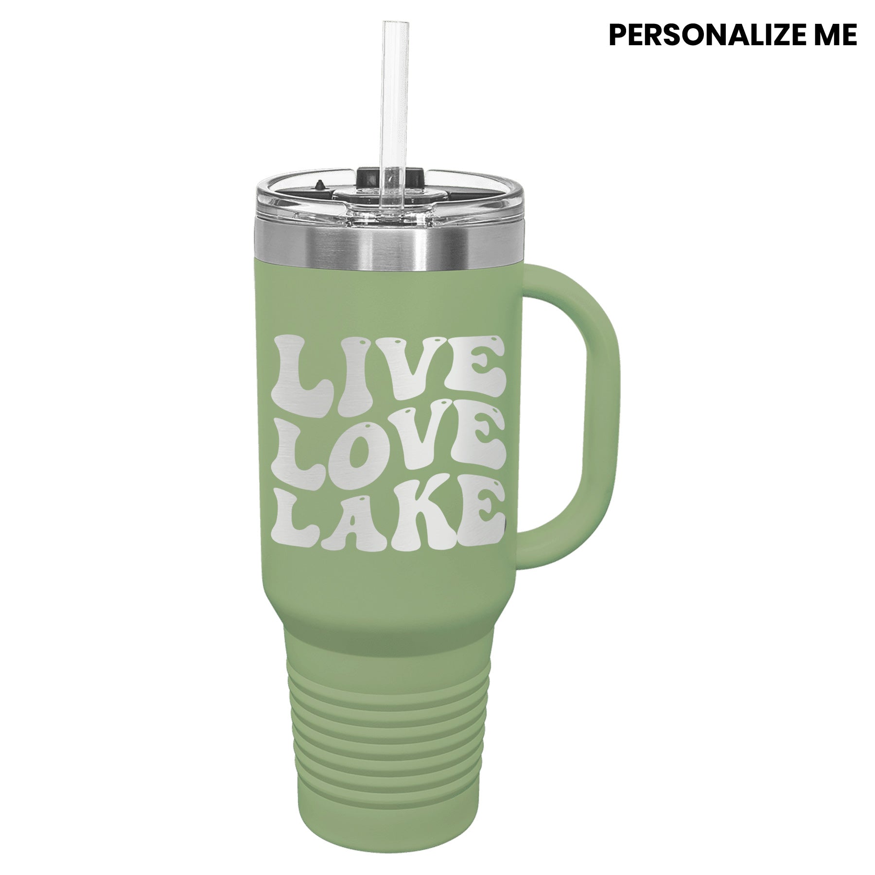 Live Love Lake Worded Bold Graphic Art Tumbler with Handle